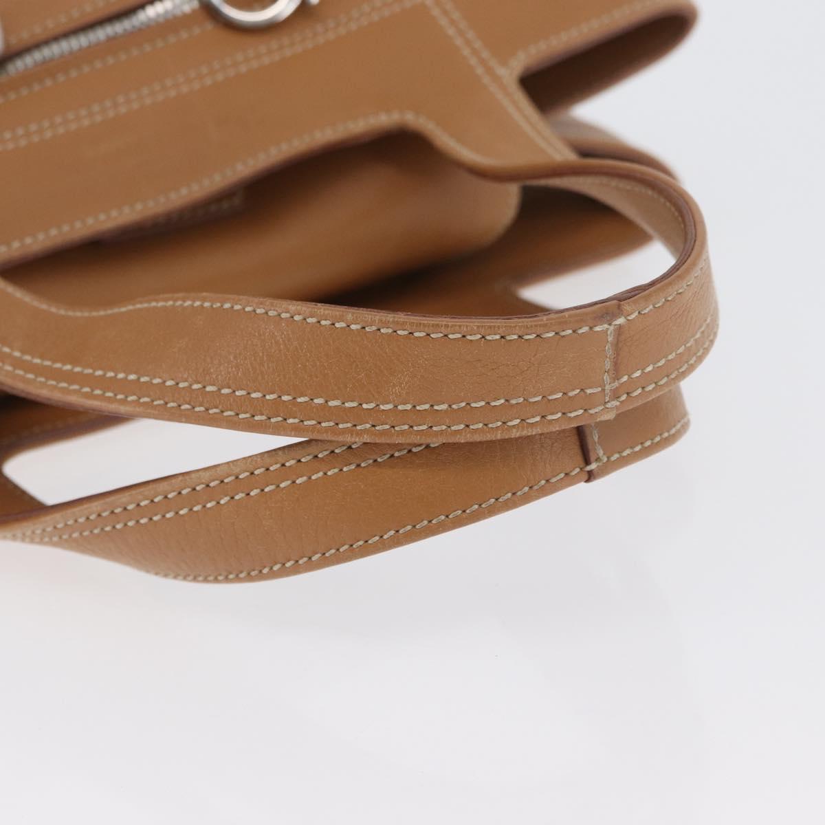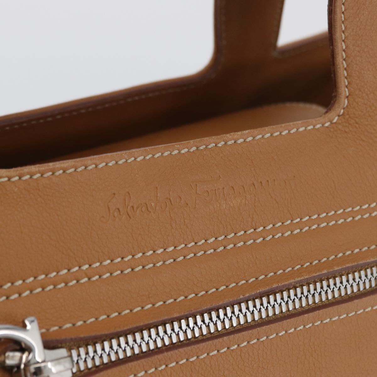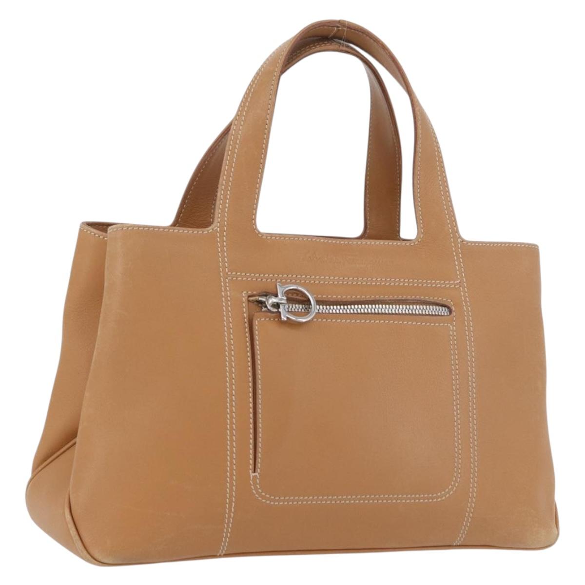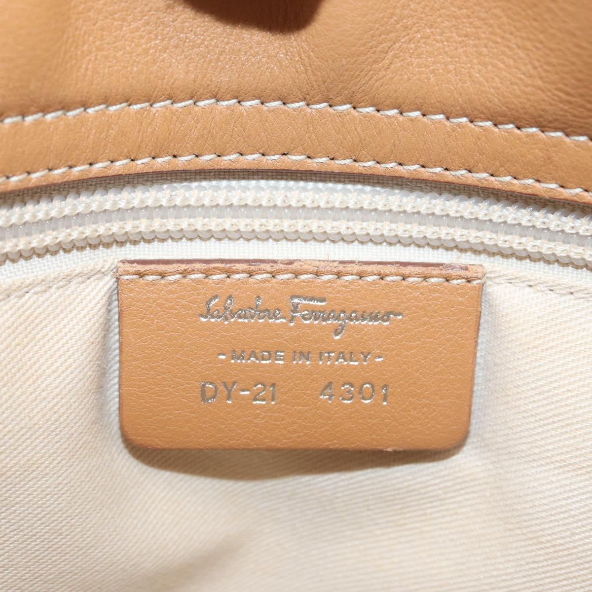 Salvatore Ferragamo Hand Bag Leather Beige Silver Auth BA11228