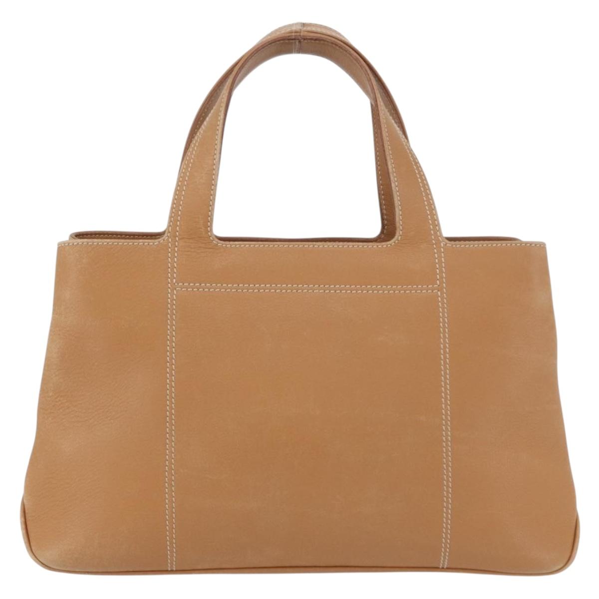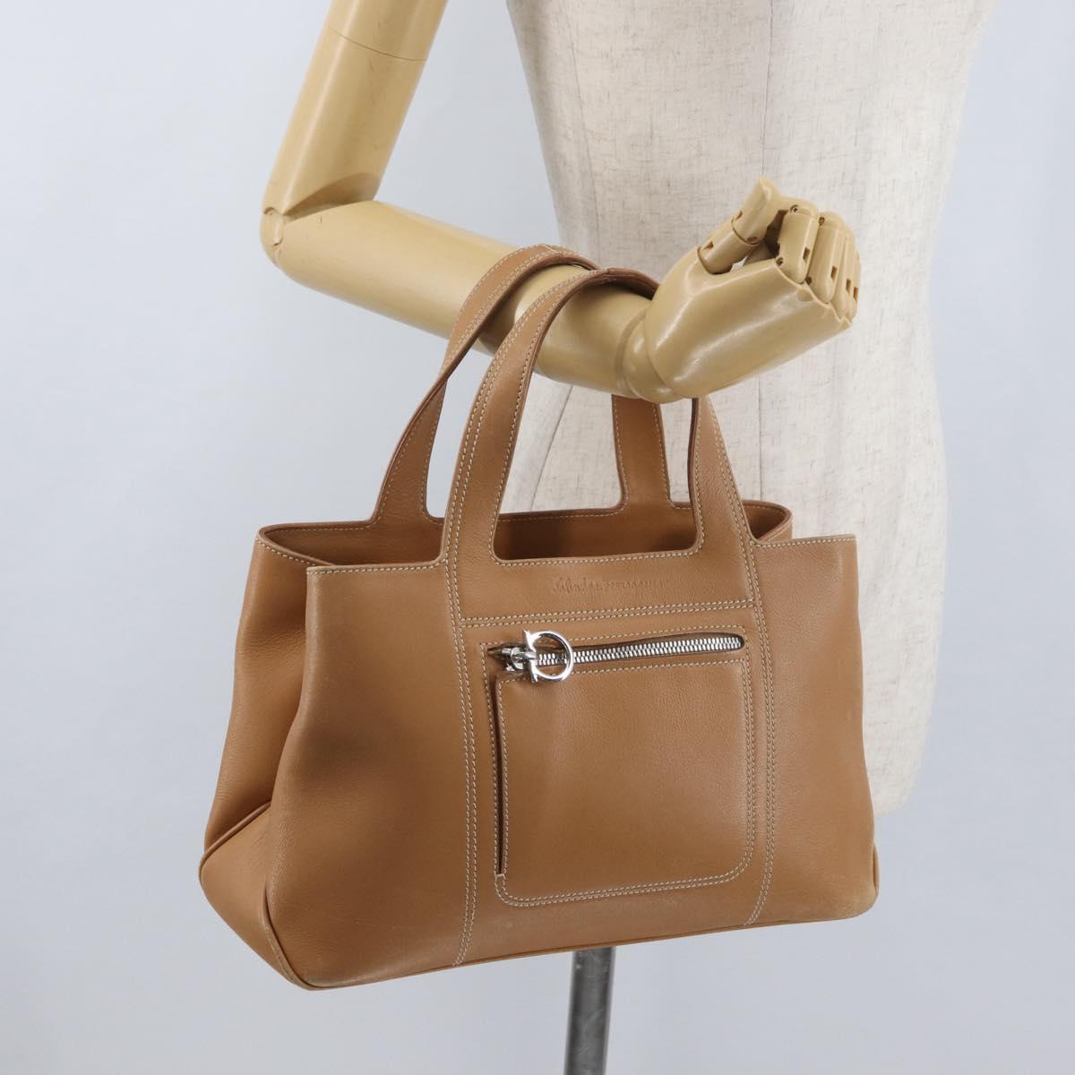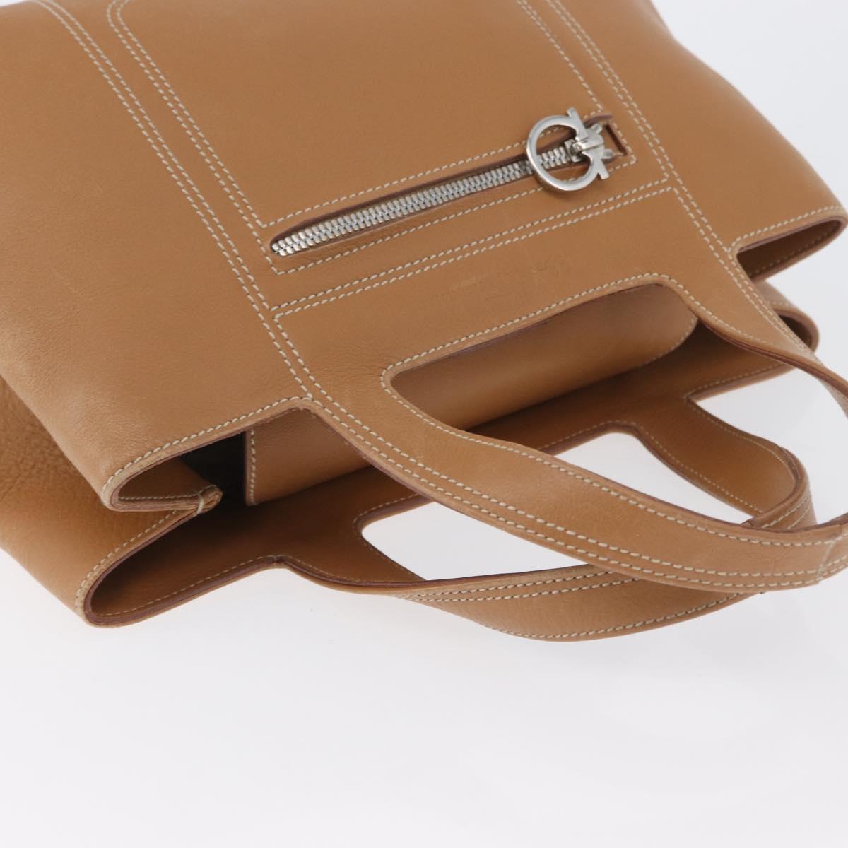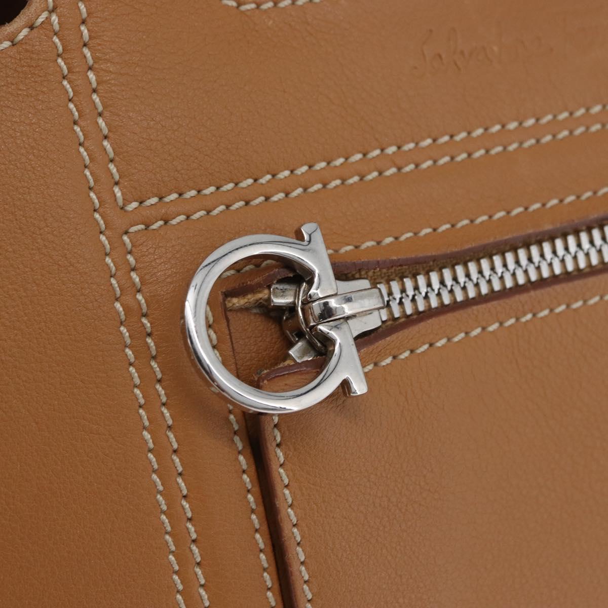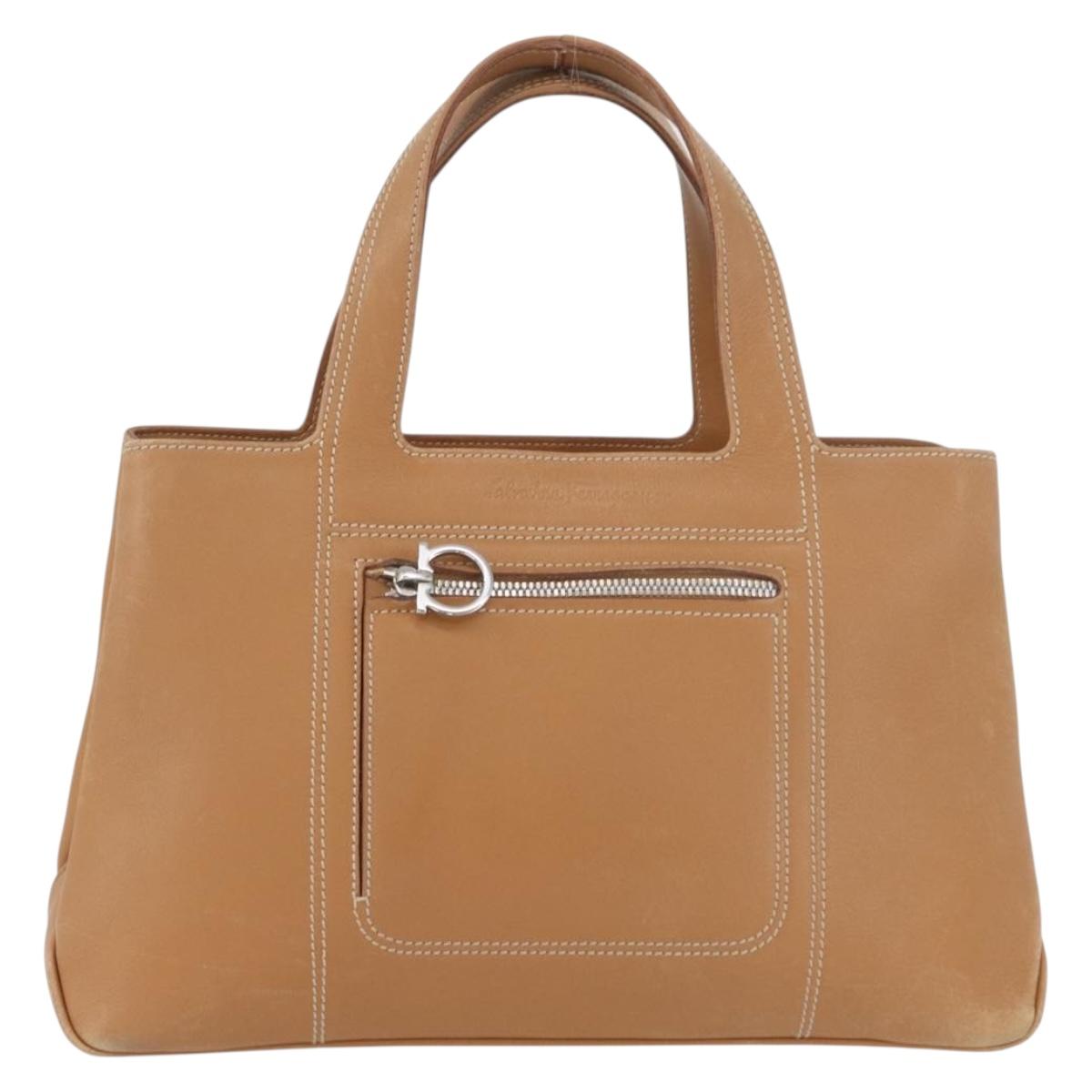Salvatore Ferragamo Hand Bag Leather Beige Silver Auth BA11228