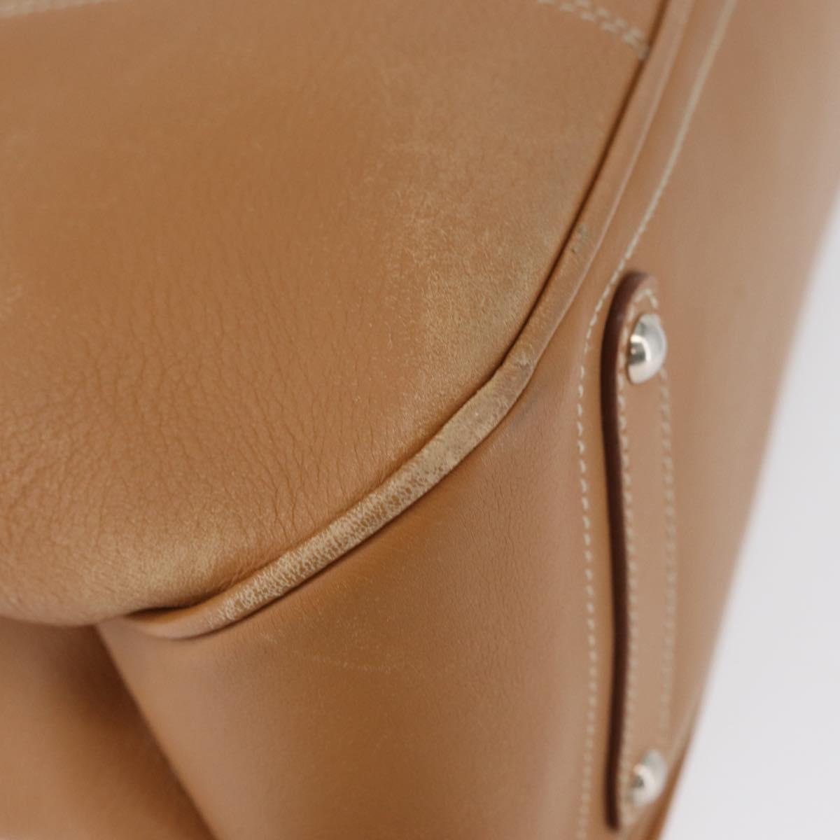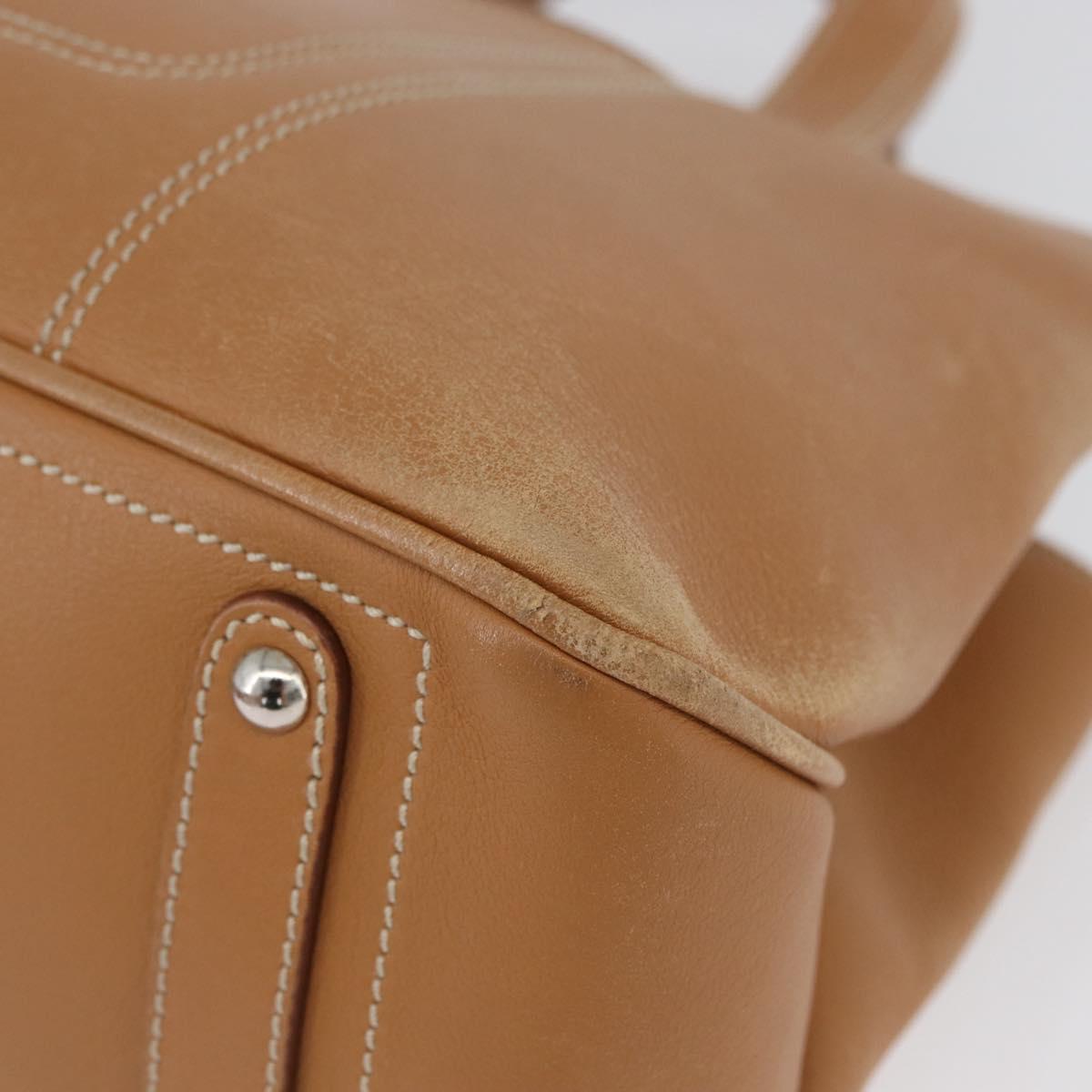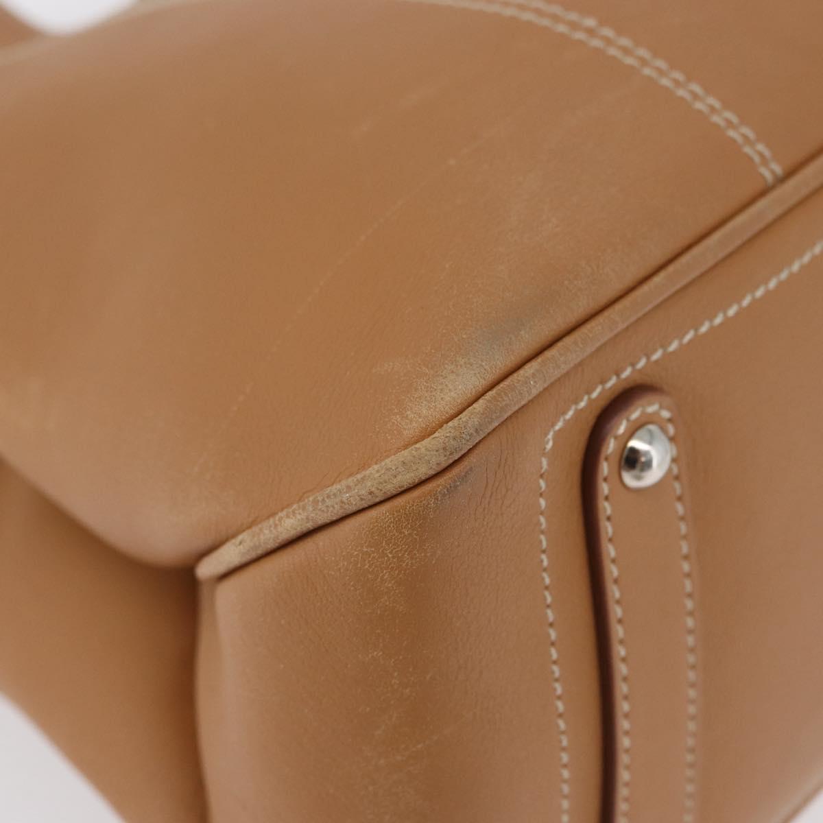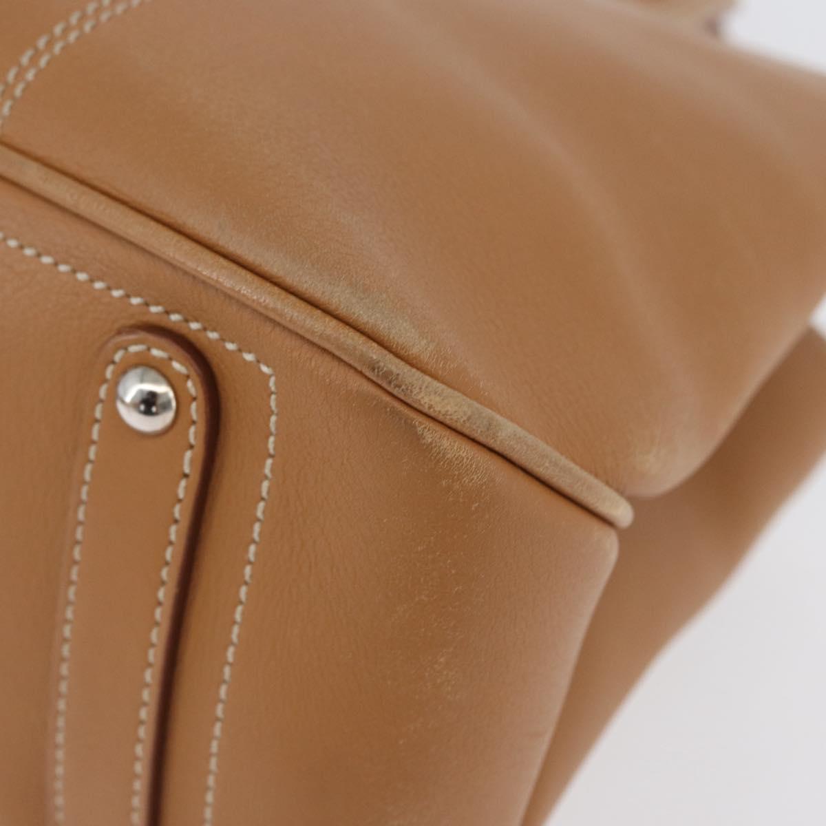 Salvatore Ferragamo Hand Bag Leather Beige Silver Auth BA11228