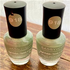 Lot of 2 Sassy + Chic Nail Polish ~ 918 Soft green with sparkle ~ .44 fl oz / 13 ml