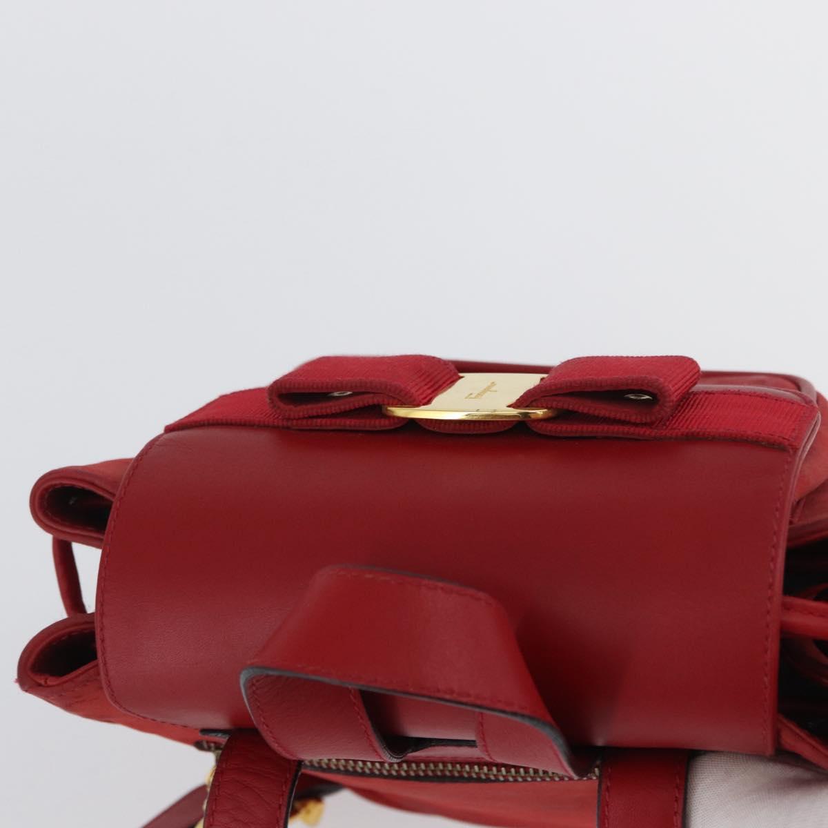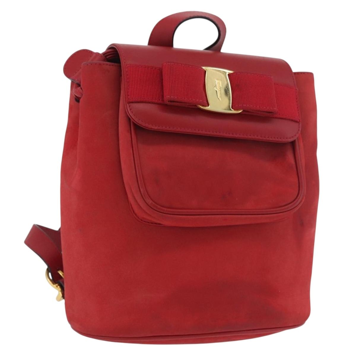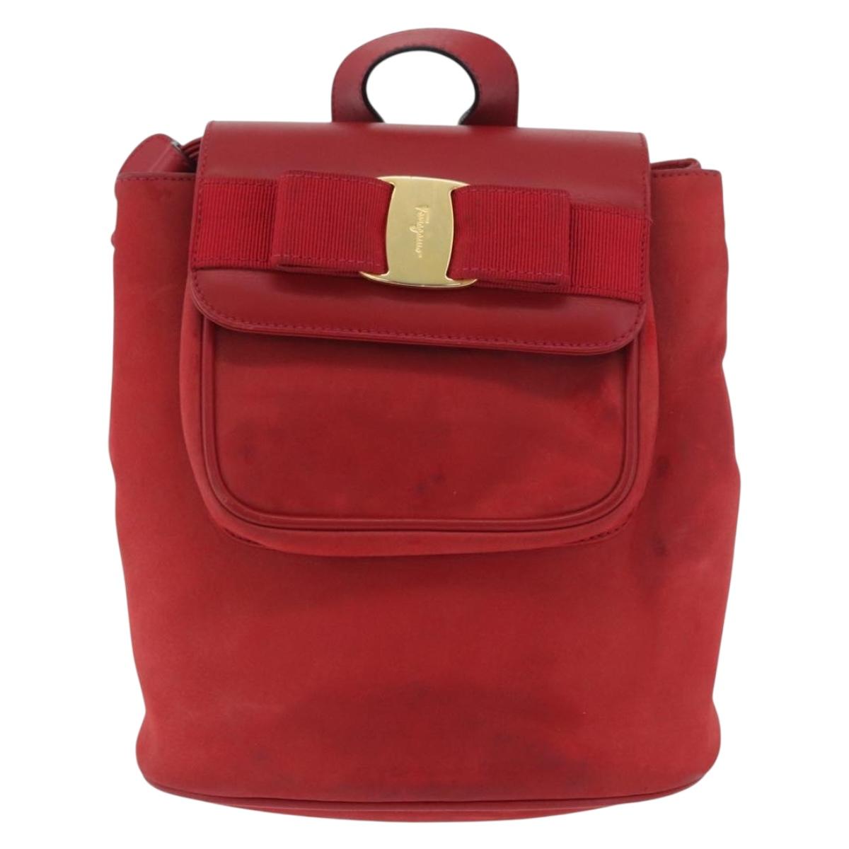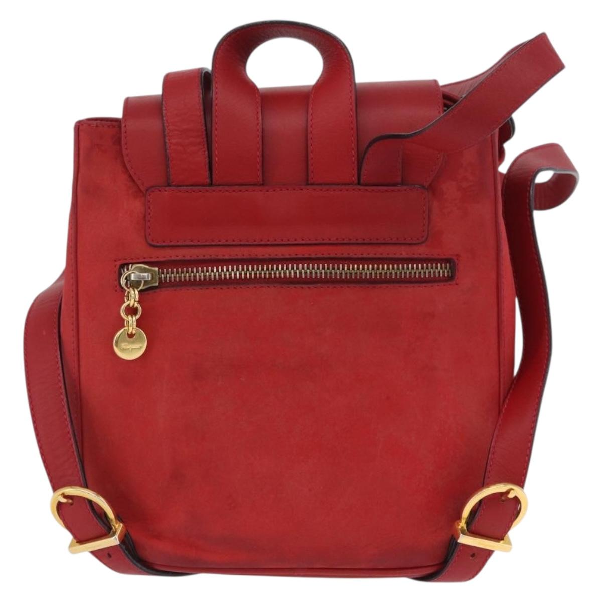 Salvatore Ferragamo Vala Backpack Suede Red Gold Auth BA11218