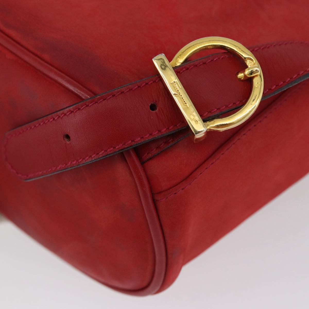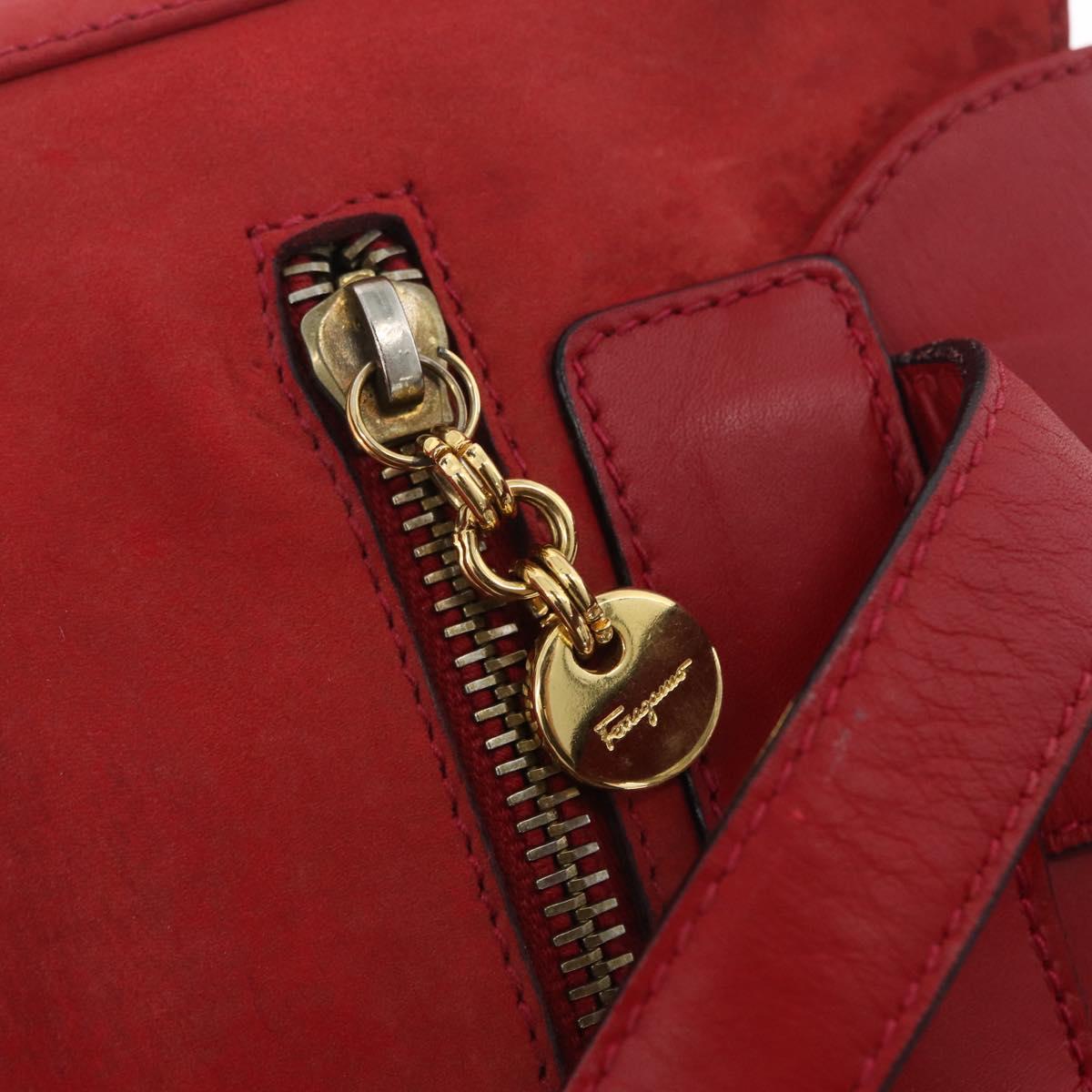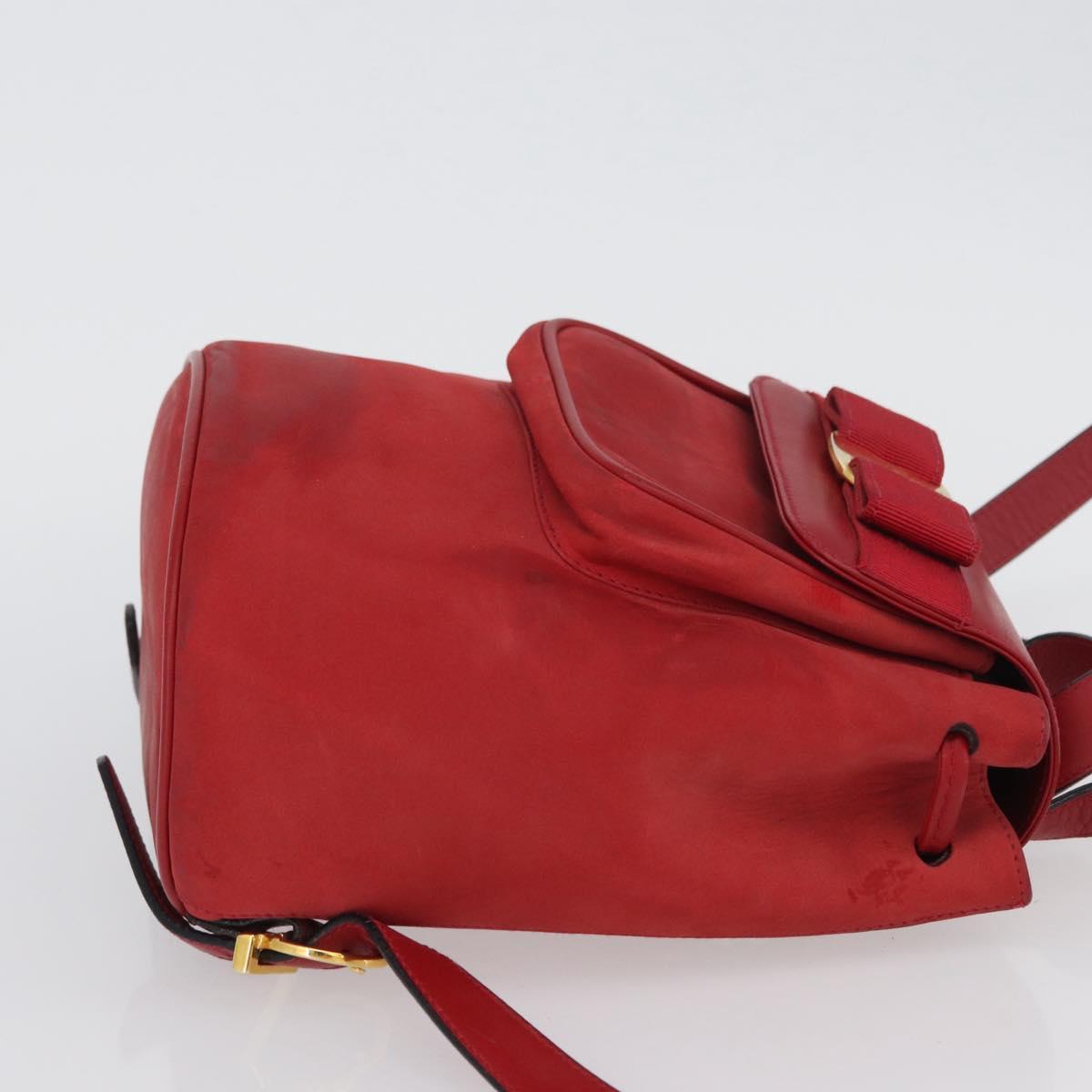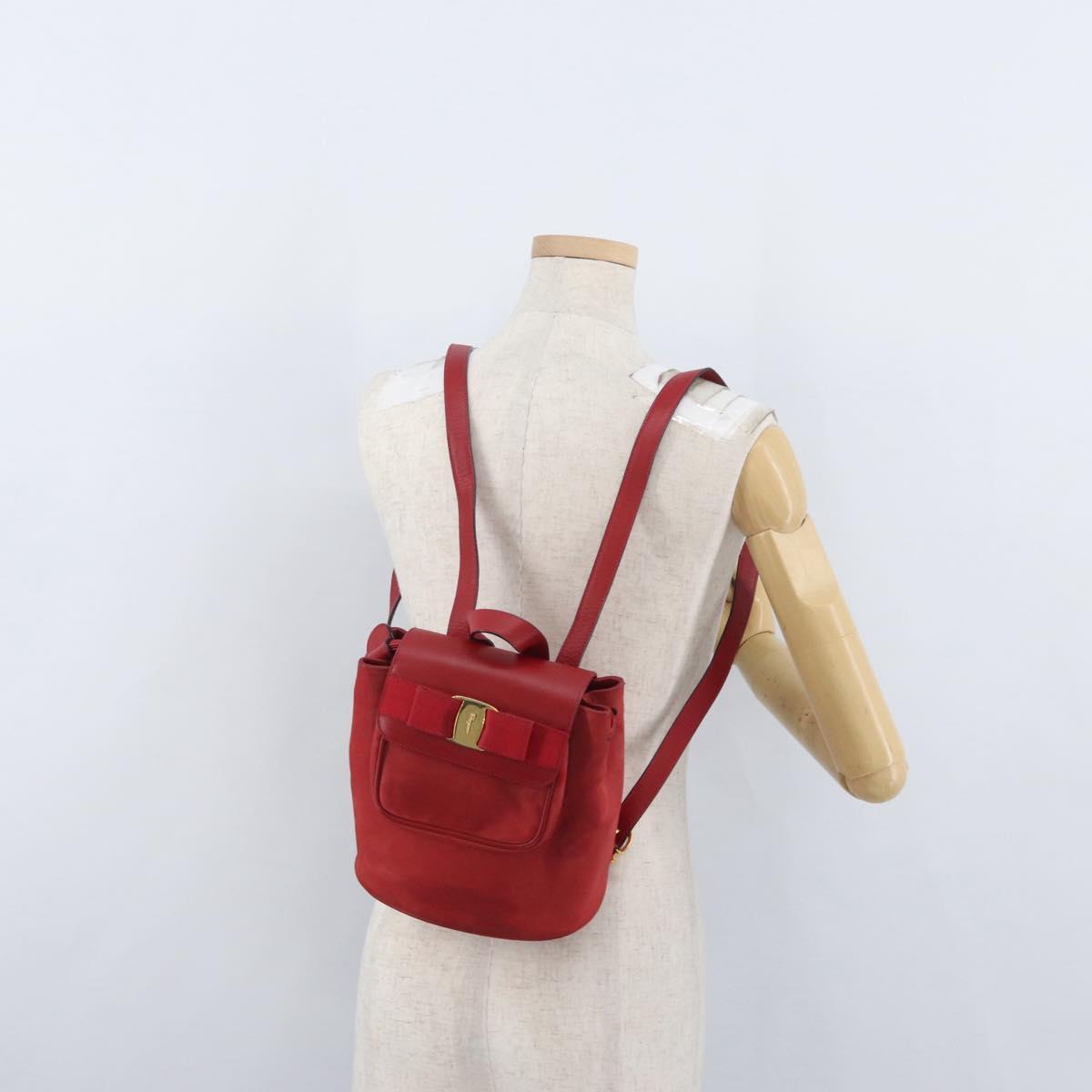 Salvatore Ferragamo Vala Backpack Suede Red Gold Auth BA11218