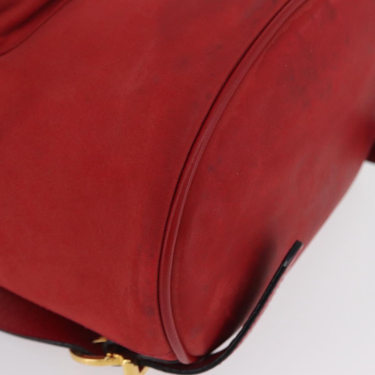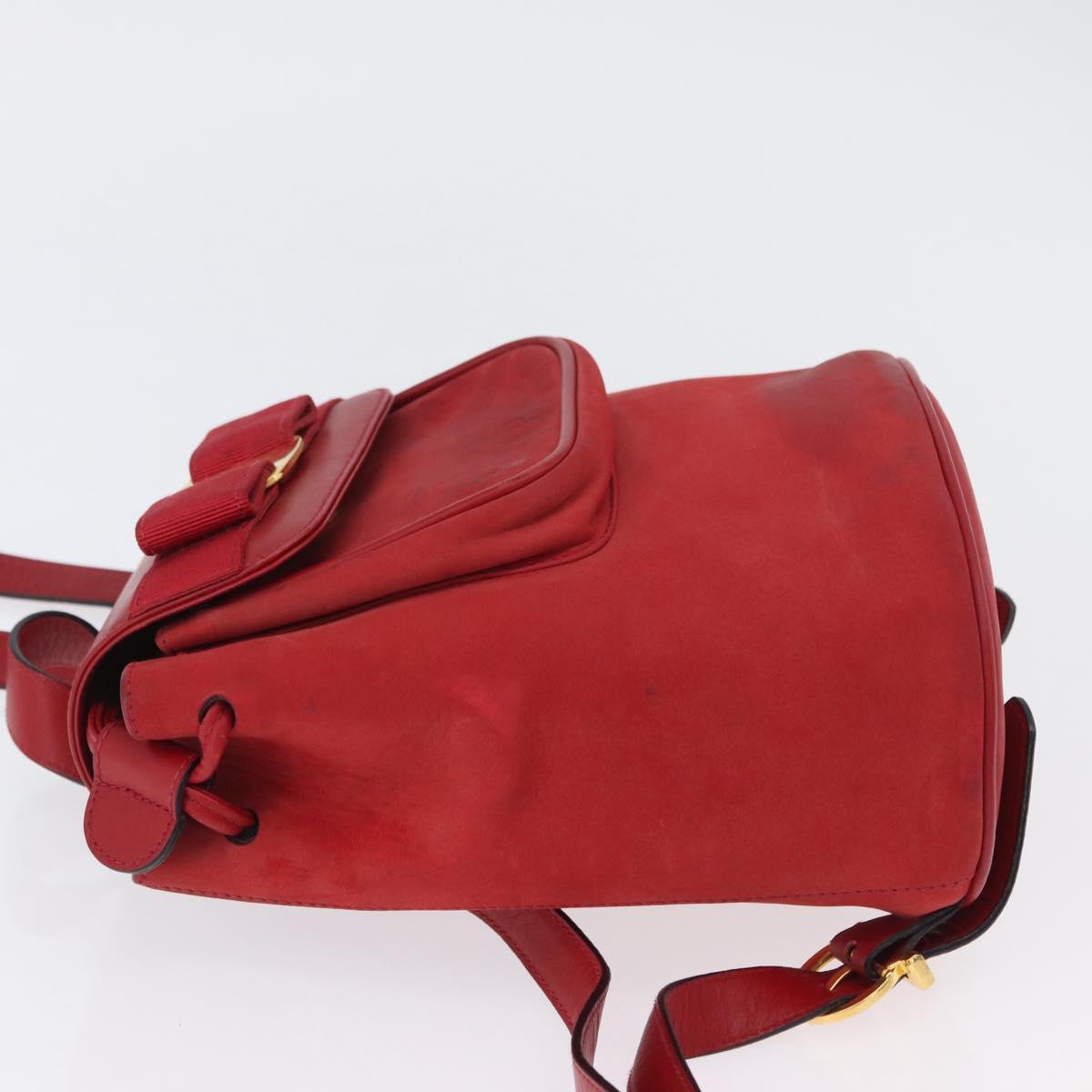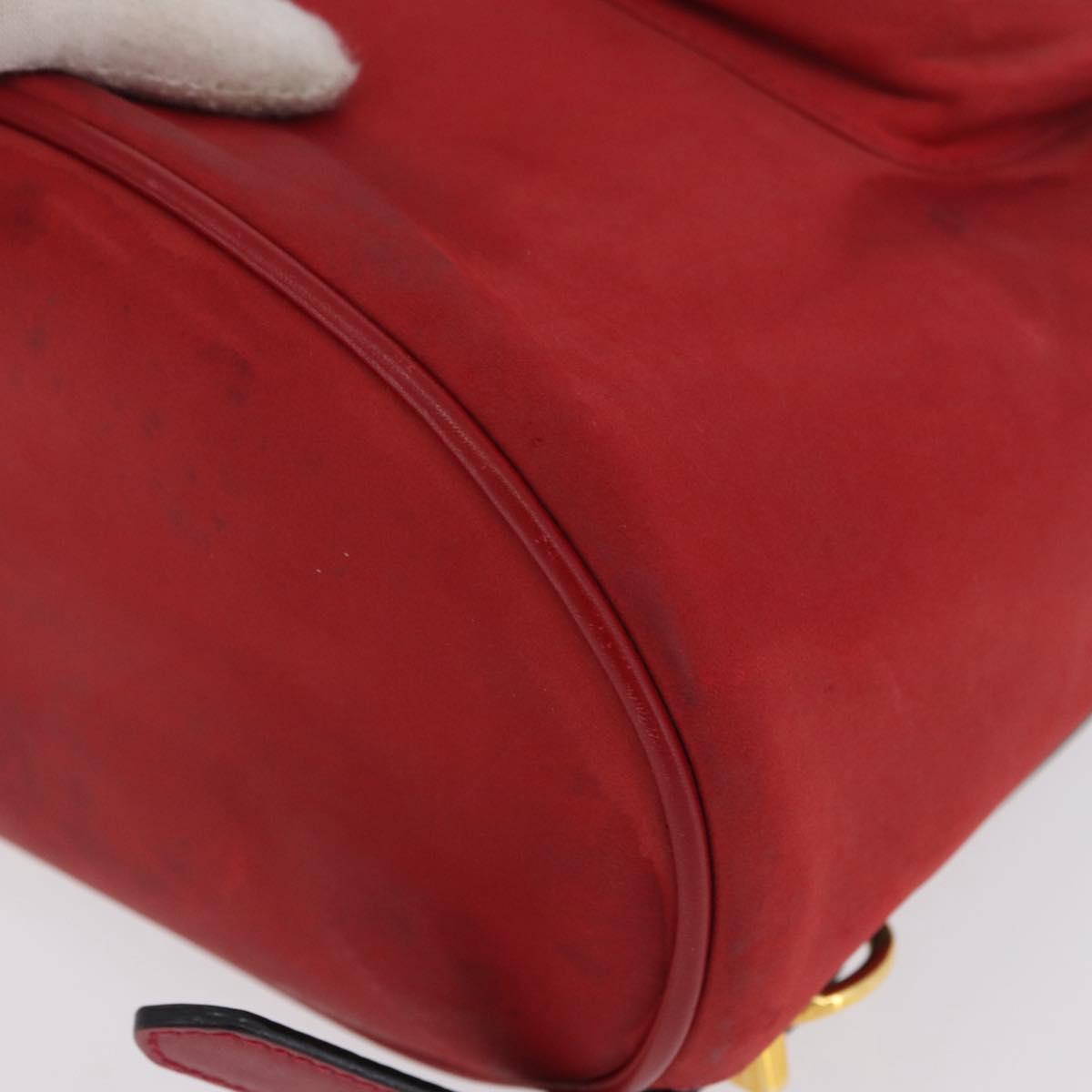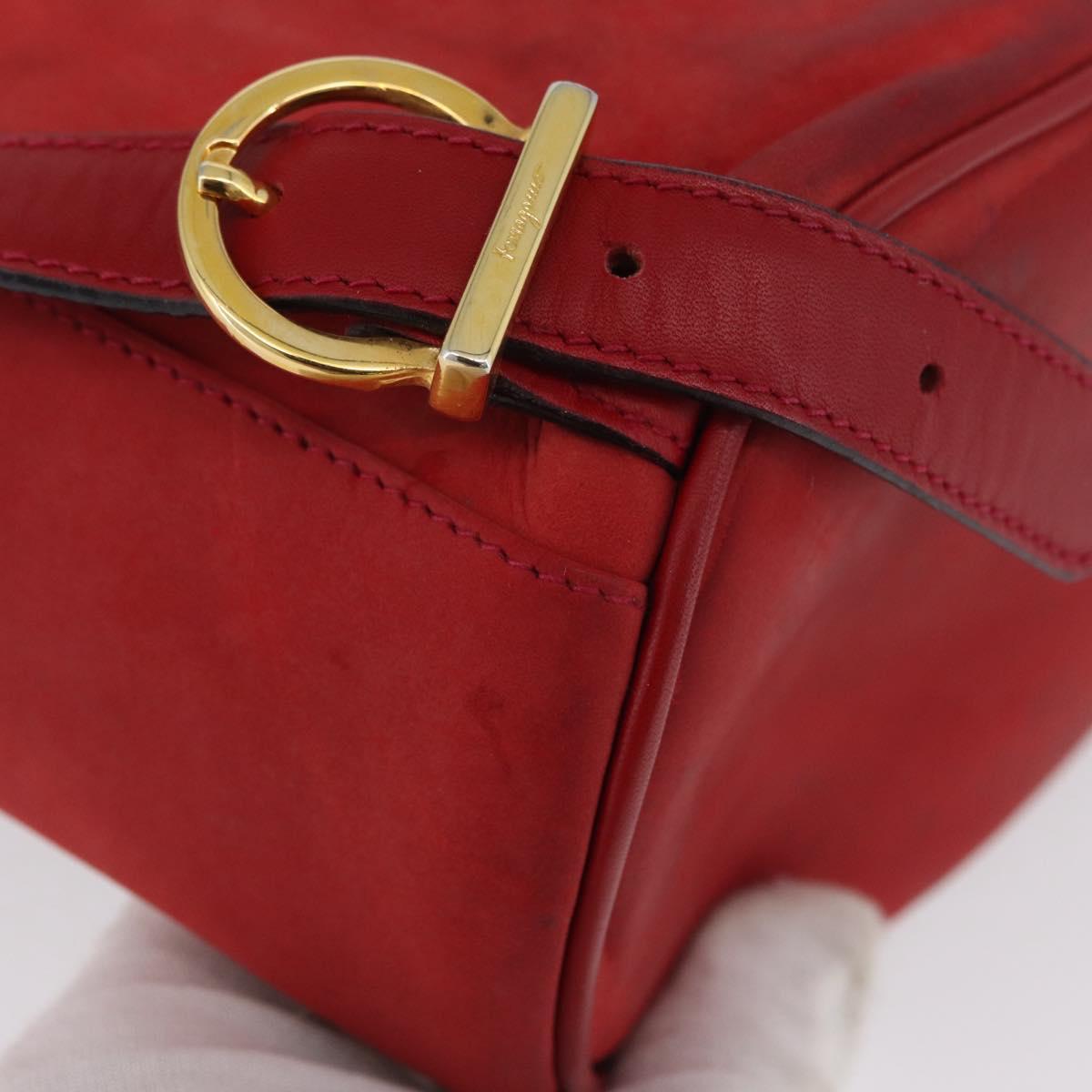 Salvatore Ferragamo Vala Backpack Suede Red Gold Auth BA11218