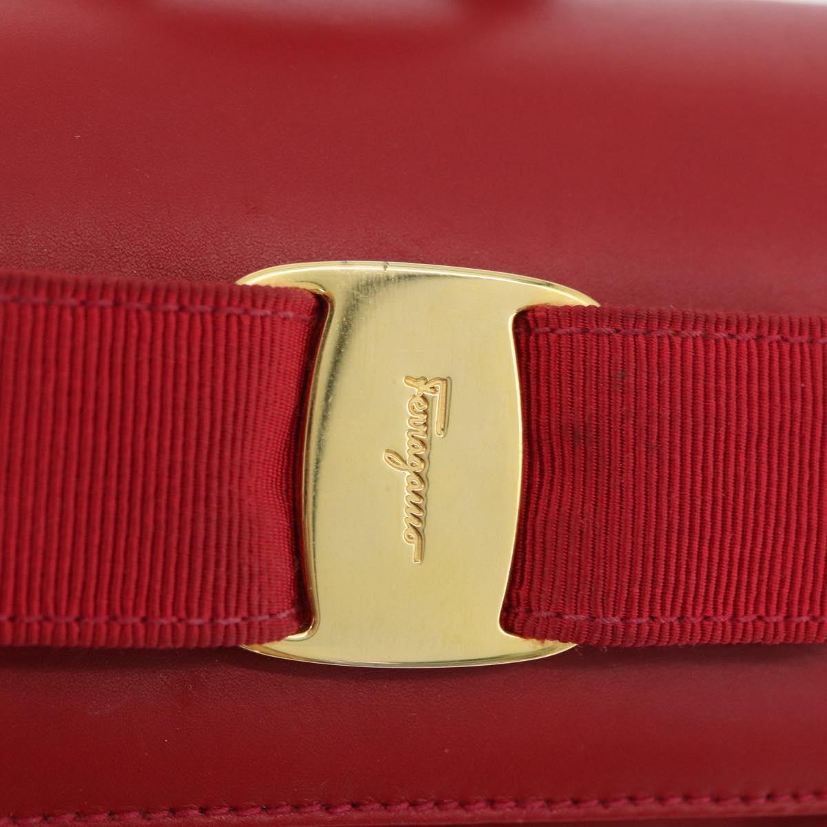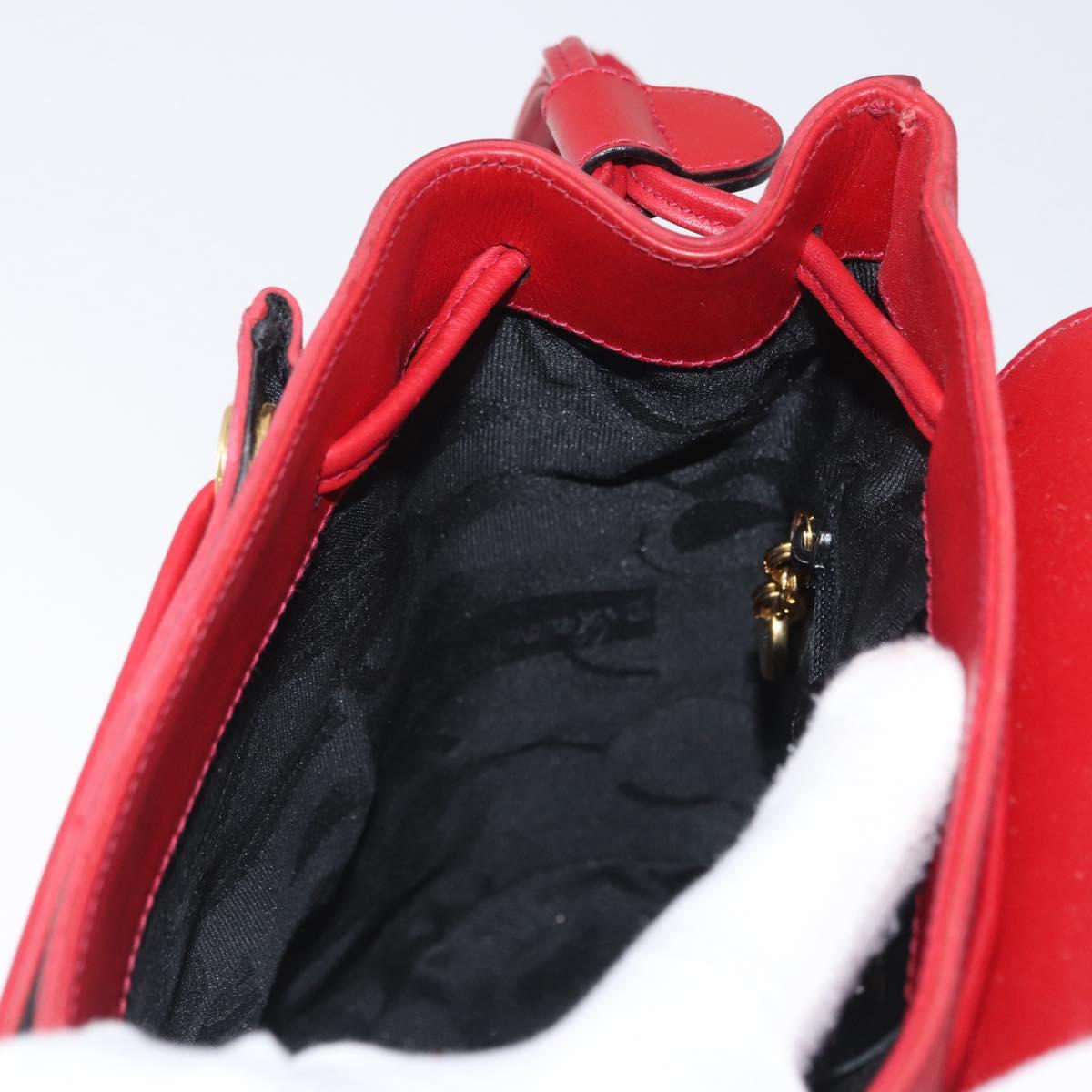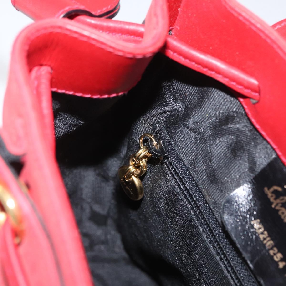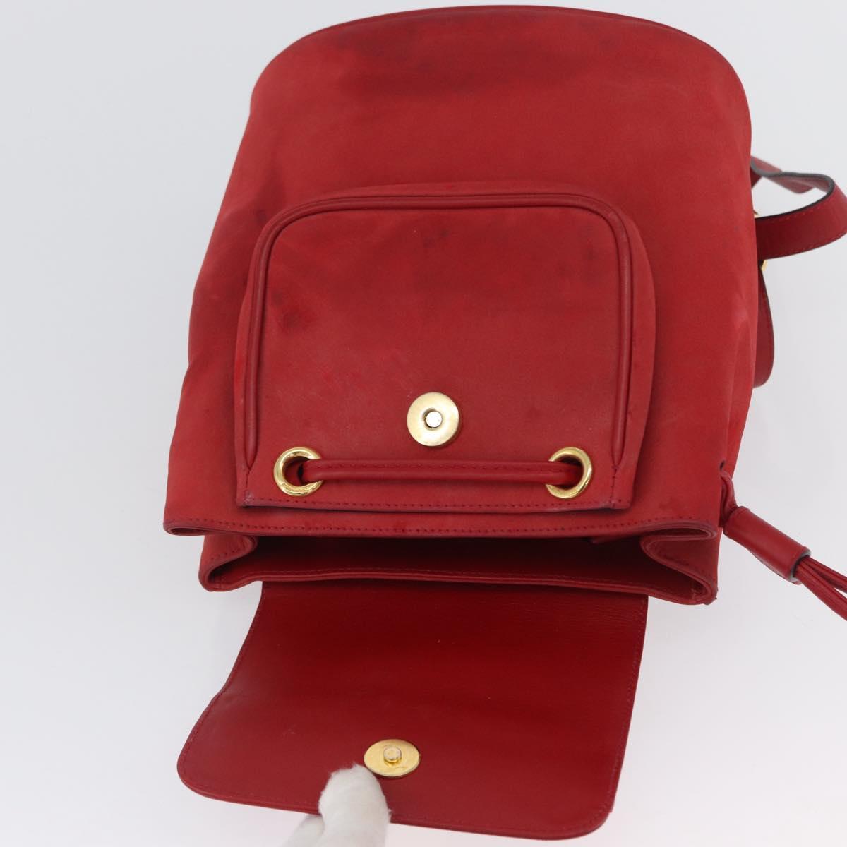 Salvatore Ferragamo Vala Backpack Suede Red Gold Auth BA11218