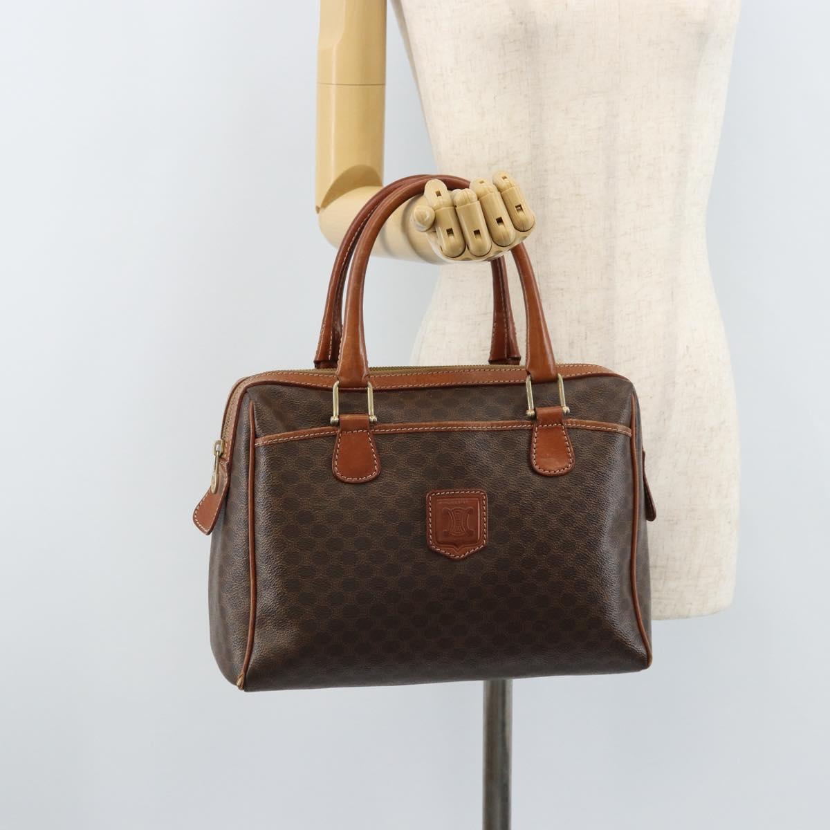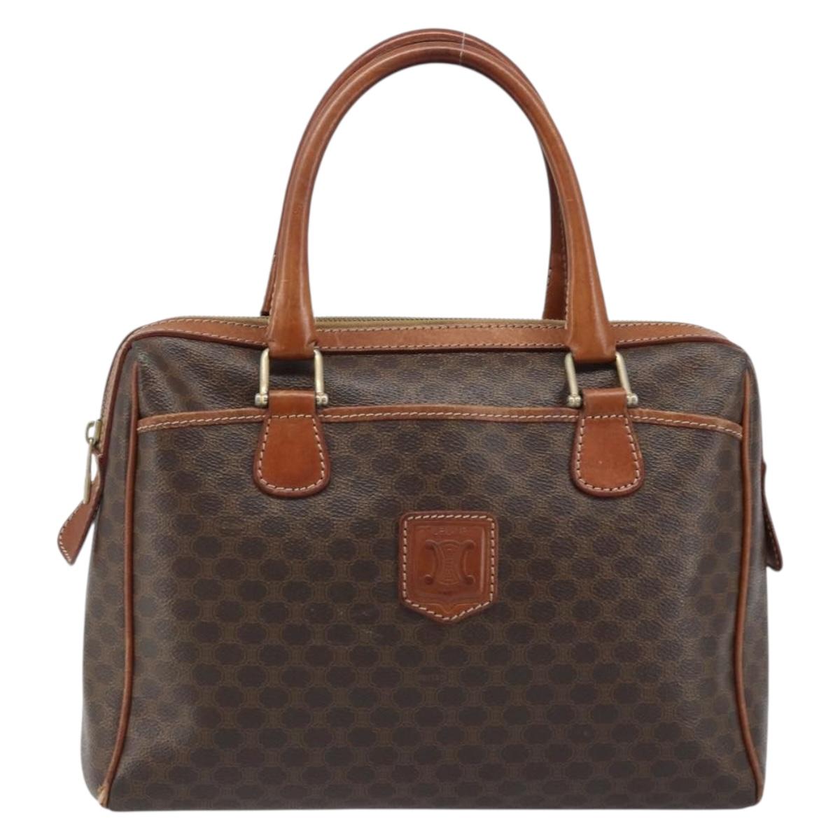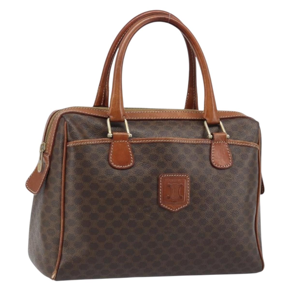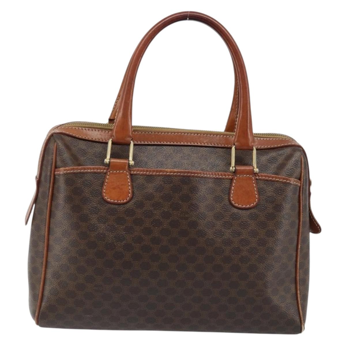 CELINE Macadam Canvas Hand Bag PVC Leather Brown Gold Auth bs34013