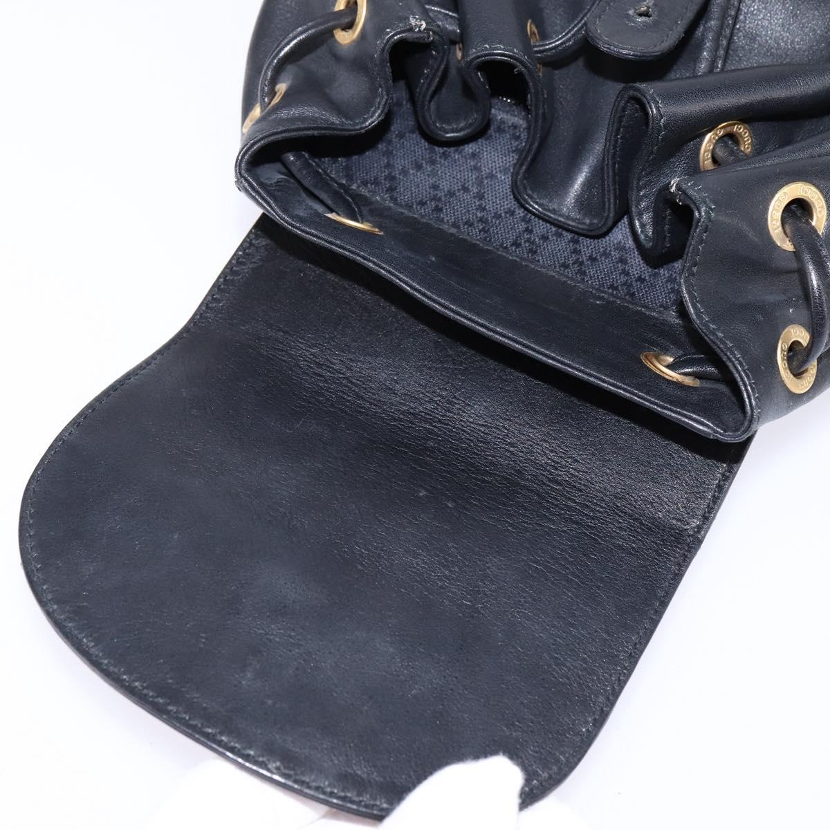 GUCCI Bamboo Backpack Leather Black Gold 003 1705 0030 Auth BA6050