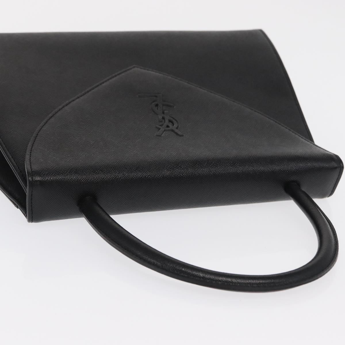 SAINT LAURENT Hand Bag Leather Black Gold Auth 171793V