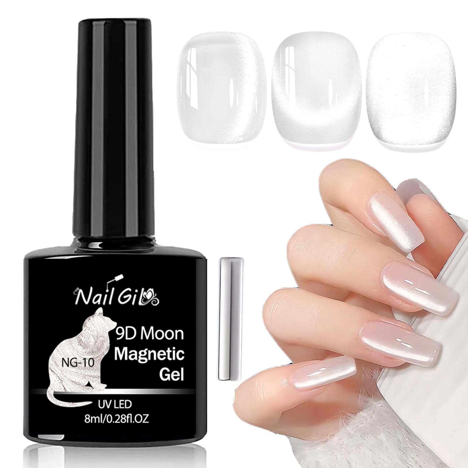 NAILGIL Silver Glass Cat Eye Gel Nail 0.28 Fl Oz (Pack of 1), 10-Moon Siliver