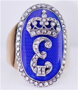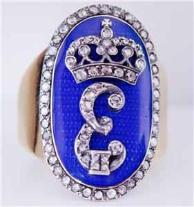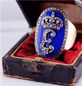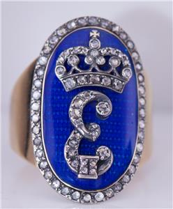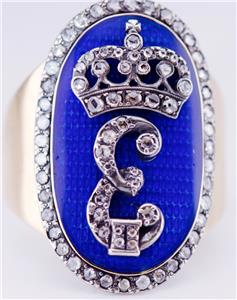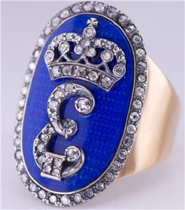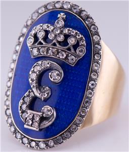 Je suis heureux d'offrir de ma collection privée cette étonnante présentation Royal Antique Empire 14k, Ring C1790 de l'officier pour hommes, émail et diamants.