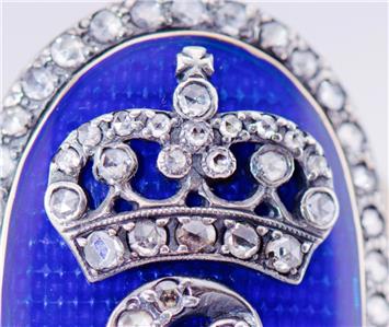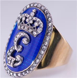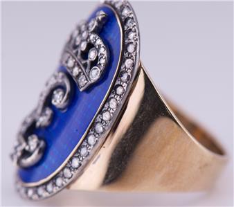 L'anneau est entièrement fabriqué à la main, recouvert d'émail transparent bleu royal et décoré d'environ 1 Cerm Old Rose Cut Diamonds. Maître inconnu.