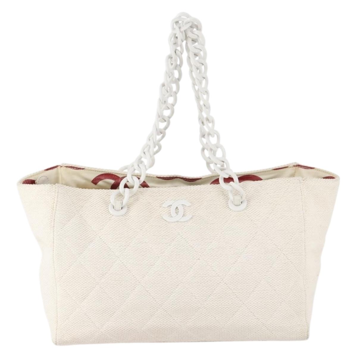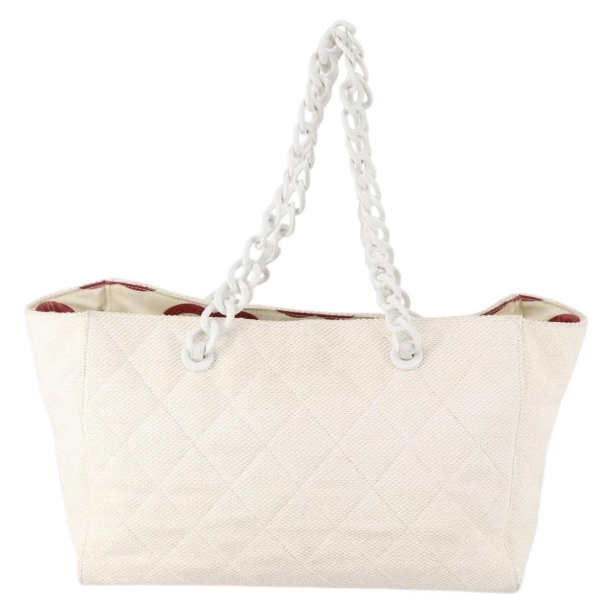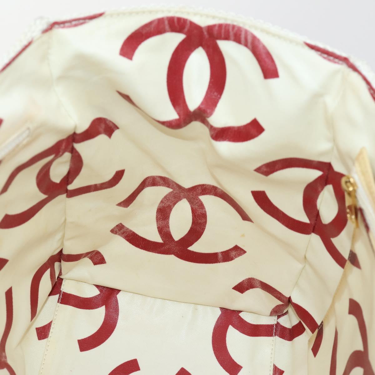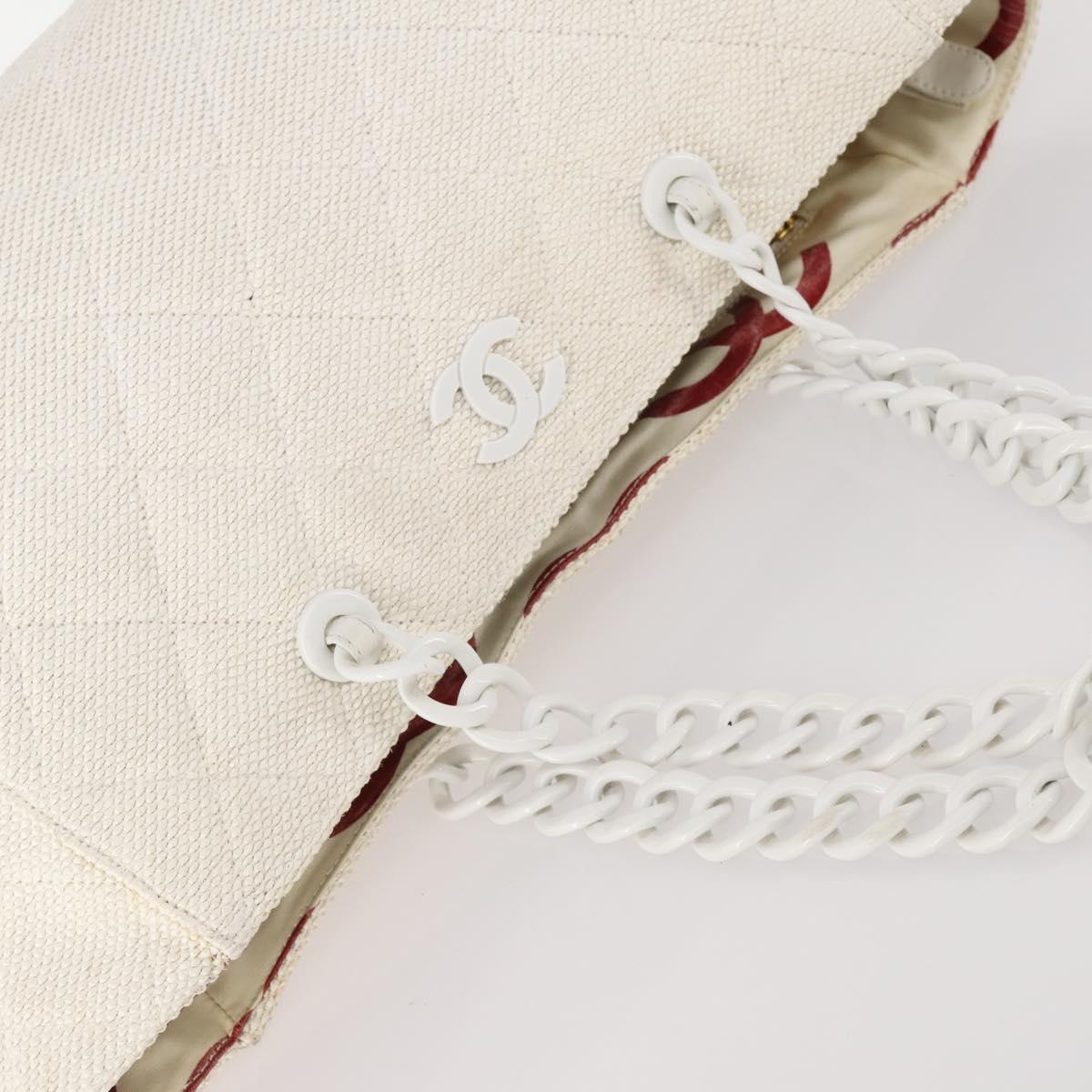 CHANEL Plastic Chain Tote Bag Straw White CC Auth 171126