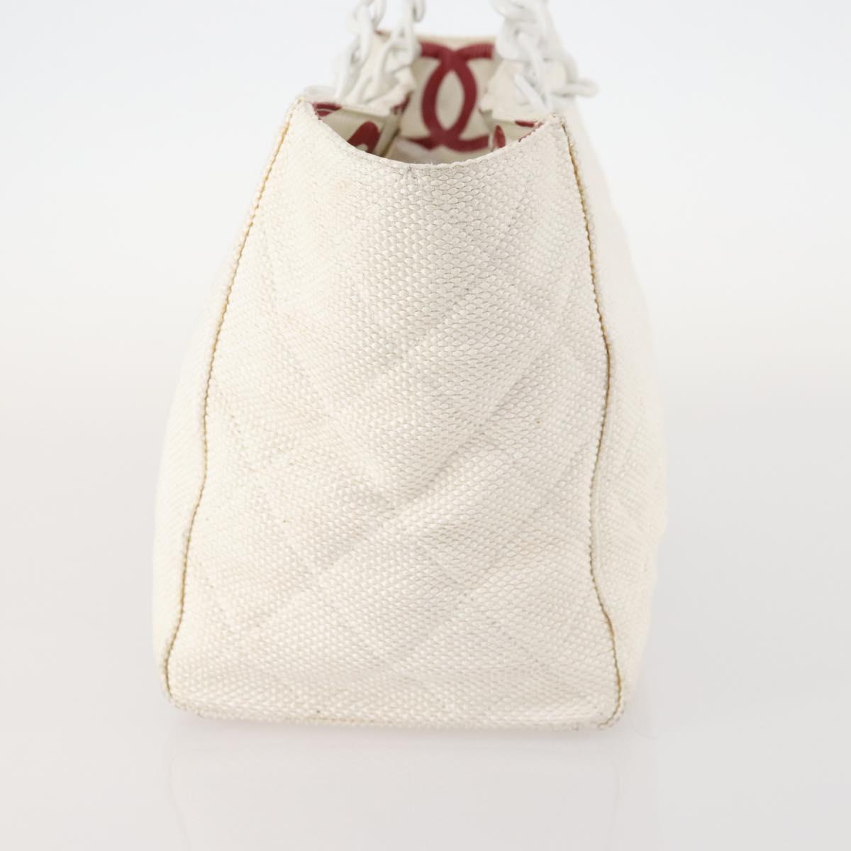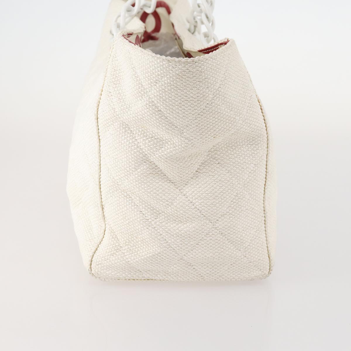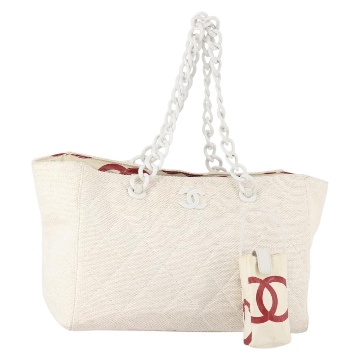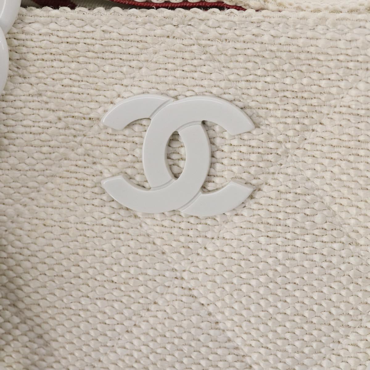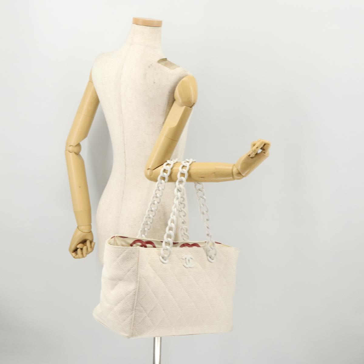 CHANEL Plastic Chain Tote Bag Straw White CC Auth 171126