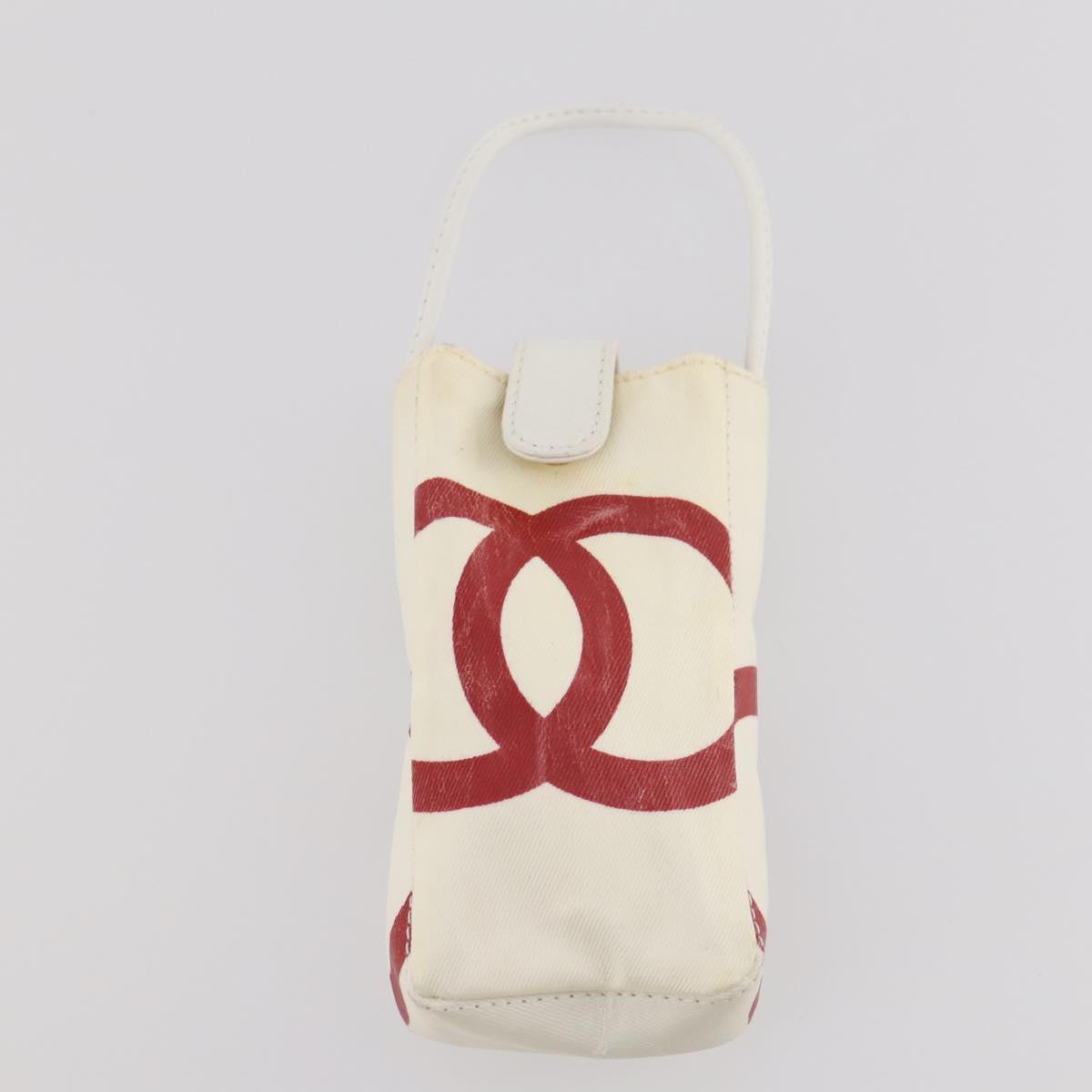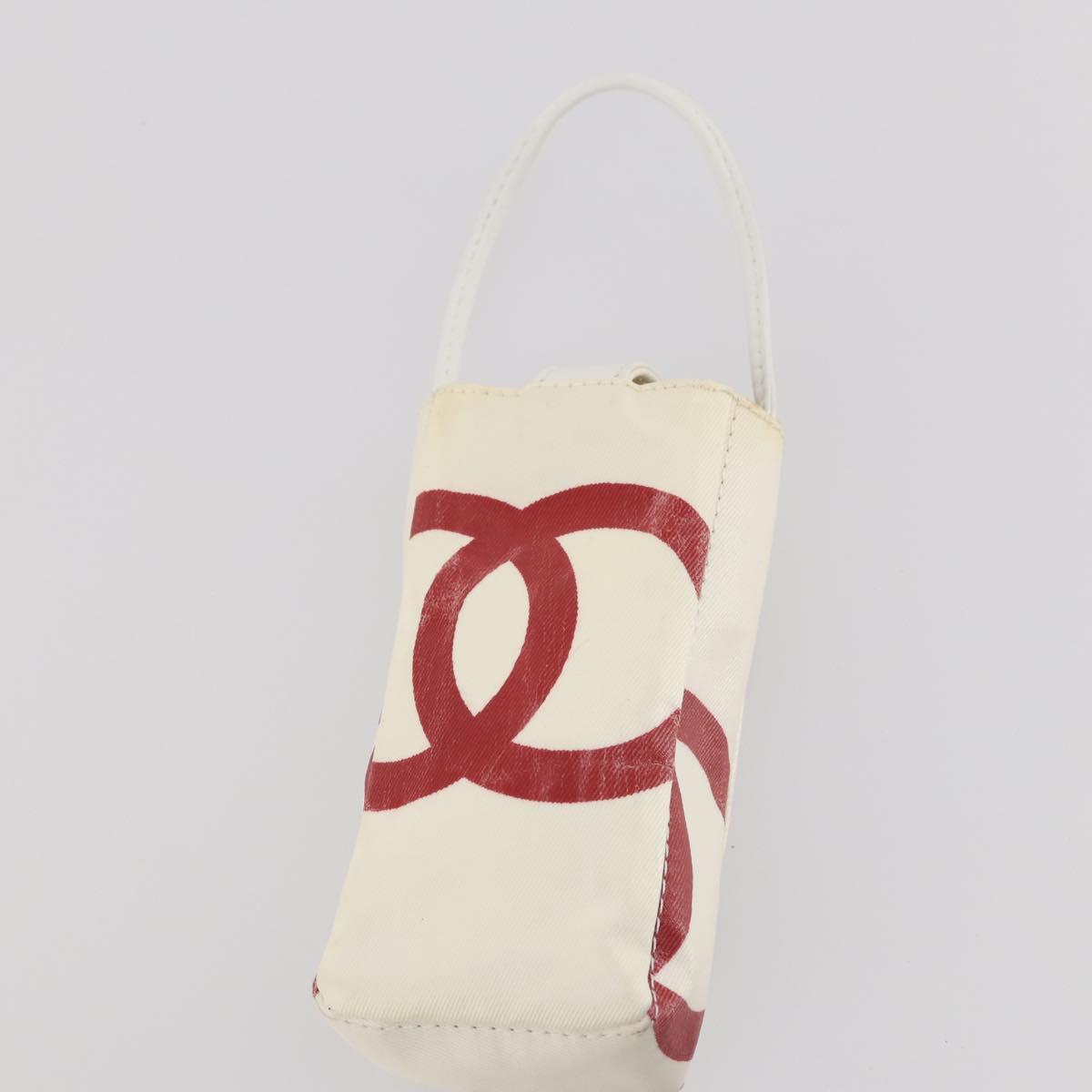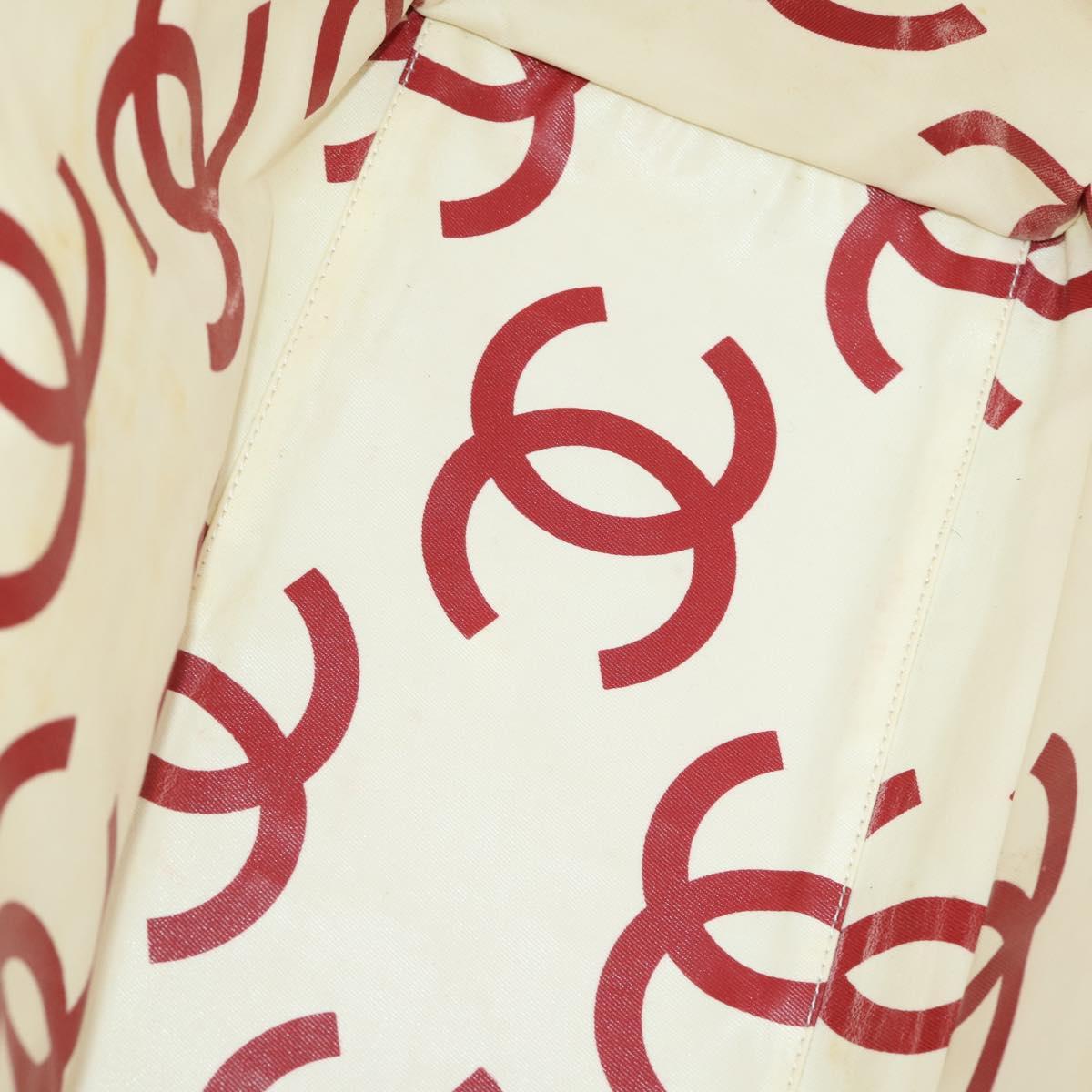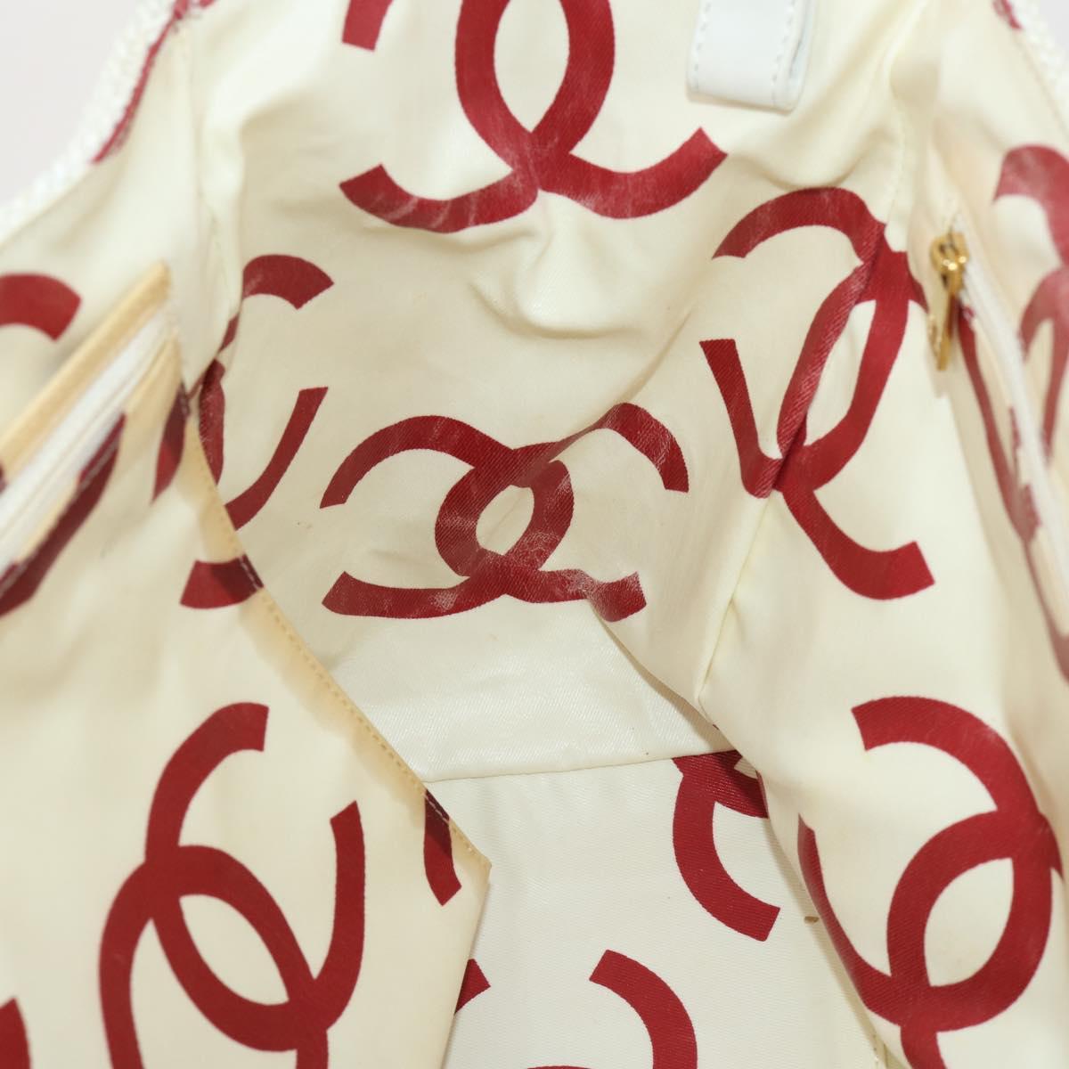CHANEL Plastic Chain Tote Bag Straw White CC Auth 171126
