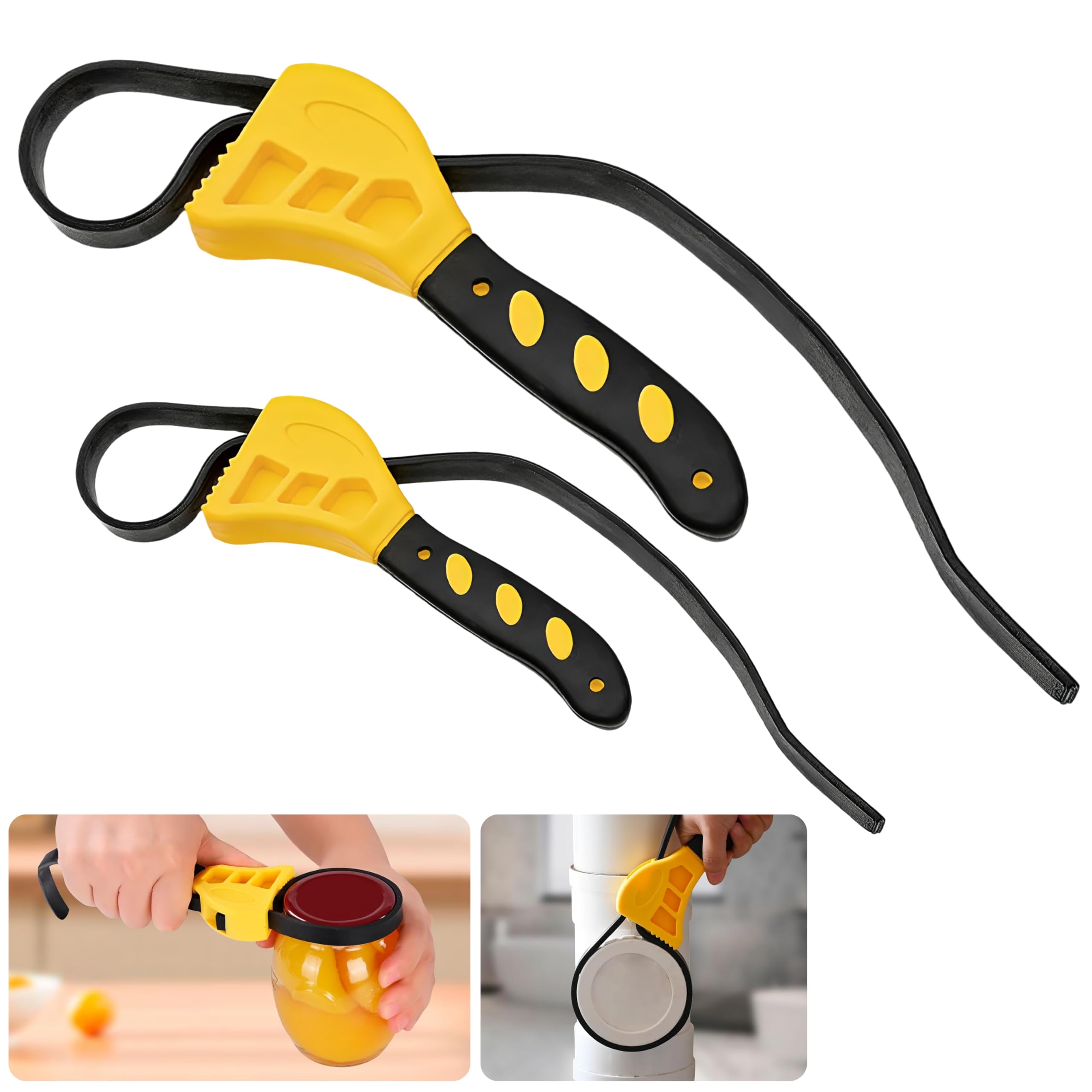 2-Pack Adjustable Rubber Strap Wrench Set, 8" & 6" – Heavy-Duty Non-Slip Oil Filter Wrench & Jar Opener for Plumbing, Water Filter, Shower Head, Sink, Faucet, Pipes & Automotive Use (Yellow)