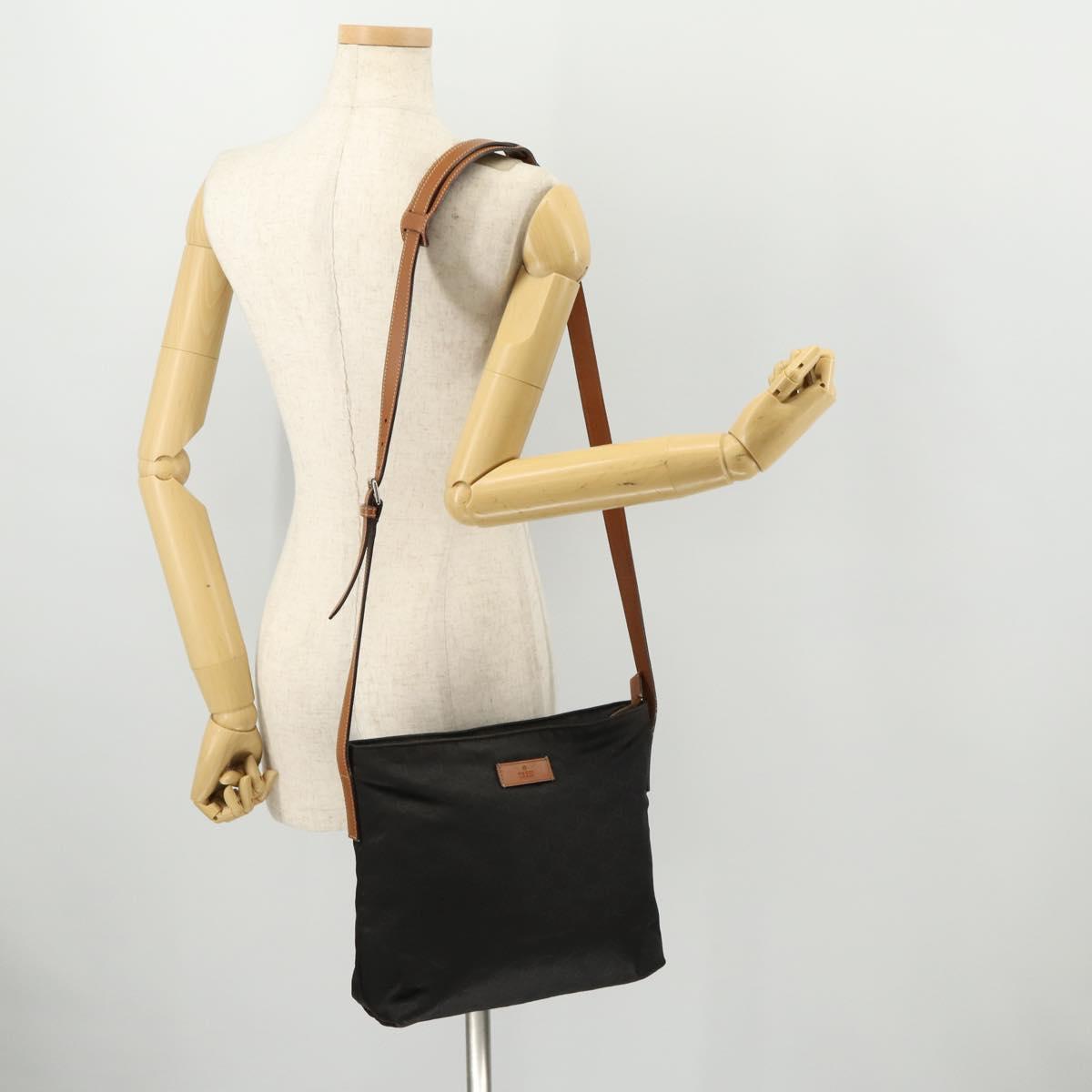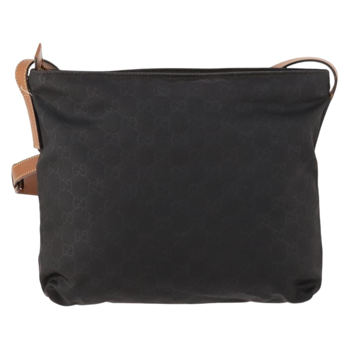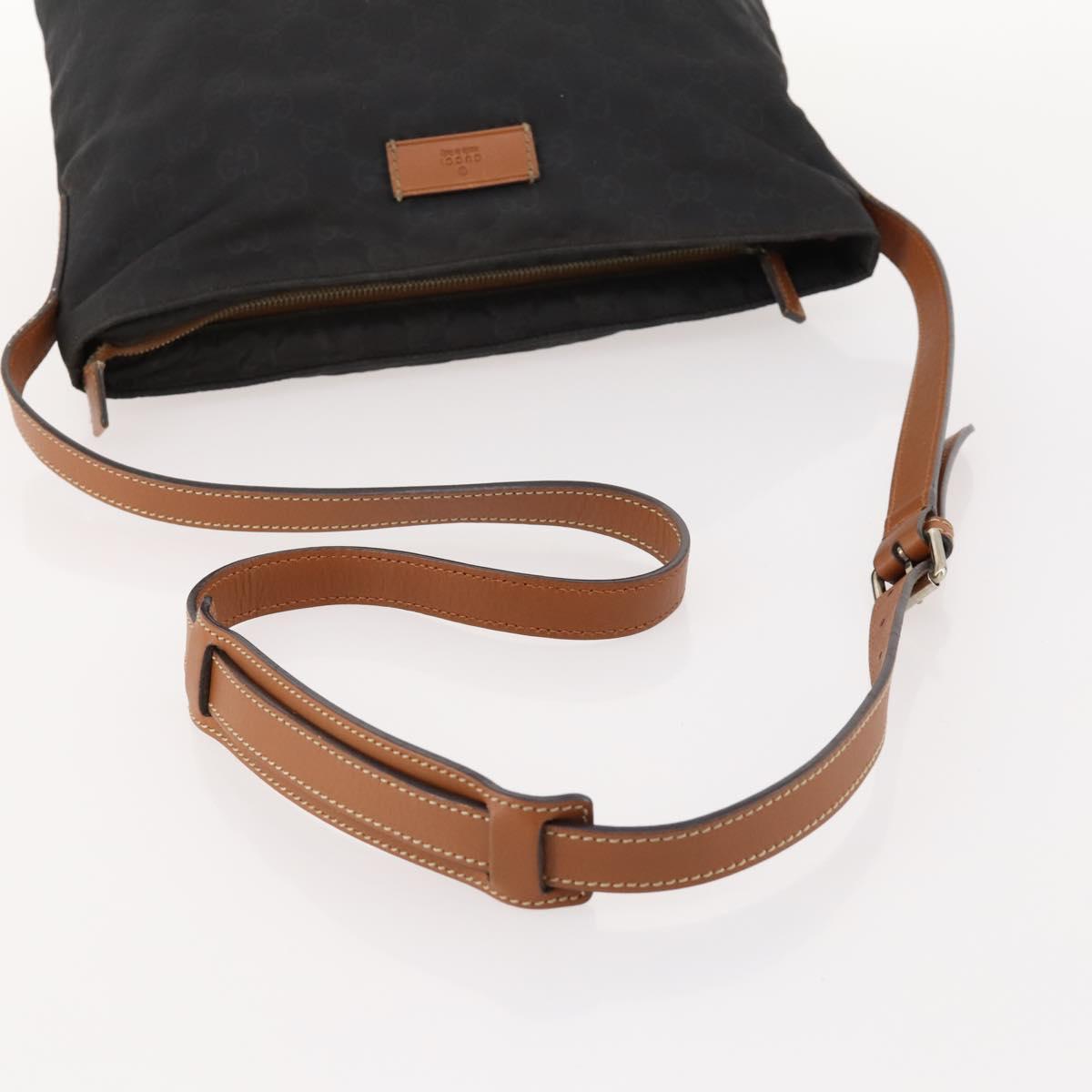 GUCCI GG Canvas Shoulder Bag Nylon Leather Black Silver 314529 Auth 173596