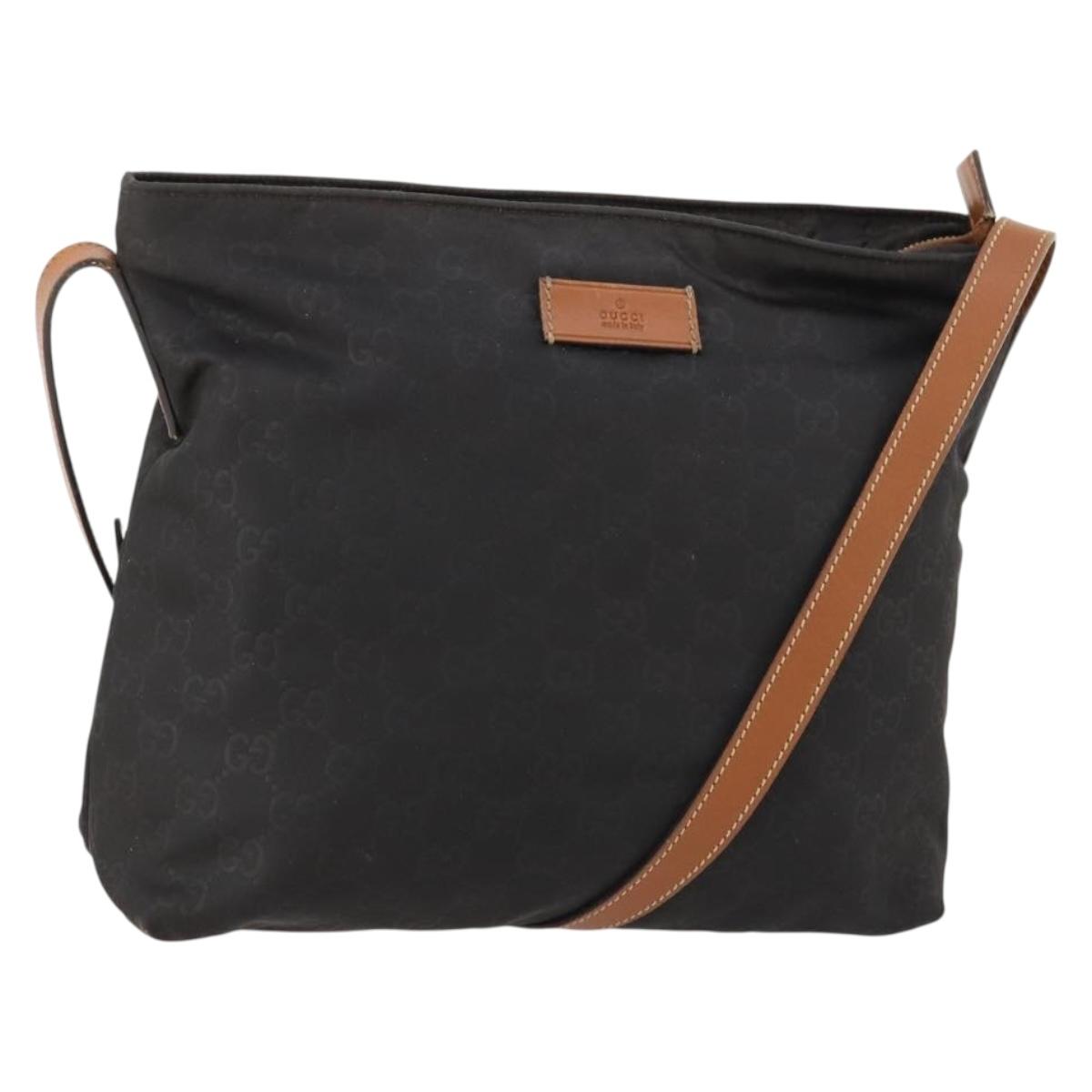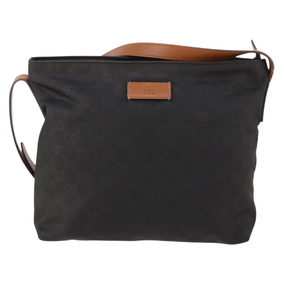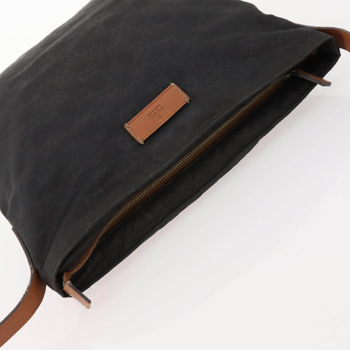 GUCCI GG Canvas Shoulder Bag Nylon Leather Black Silver 314529 Auth 173596