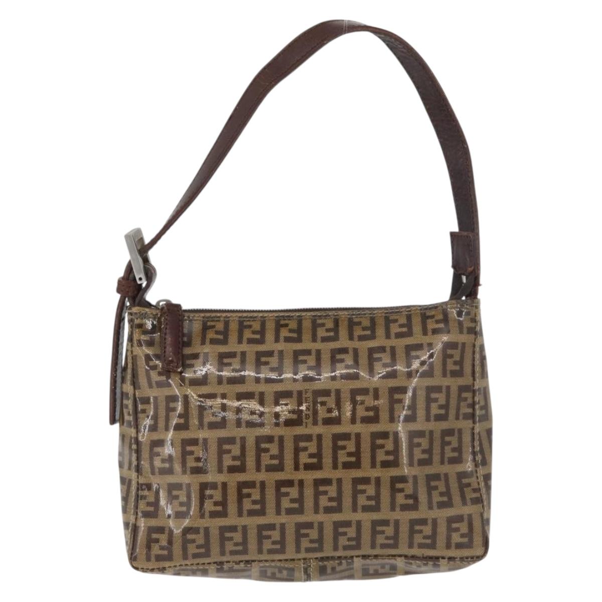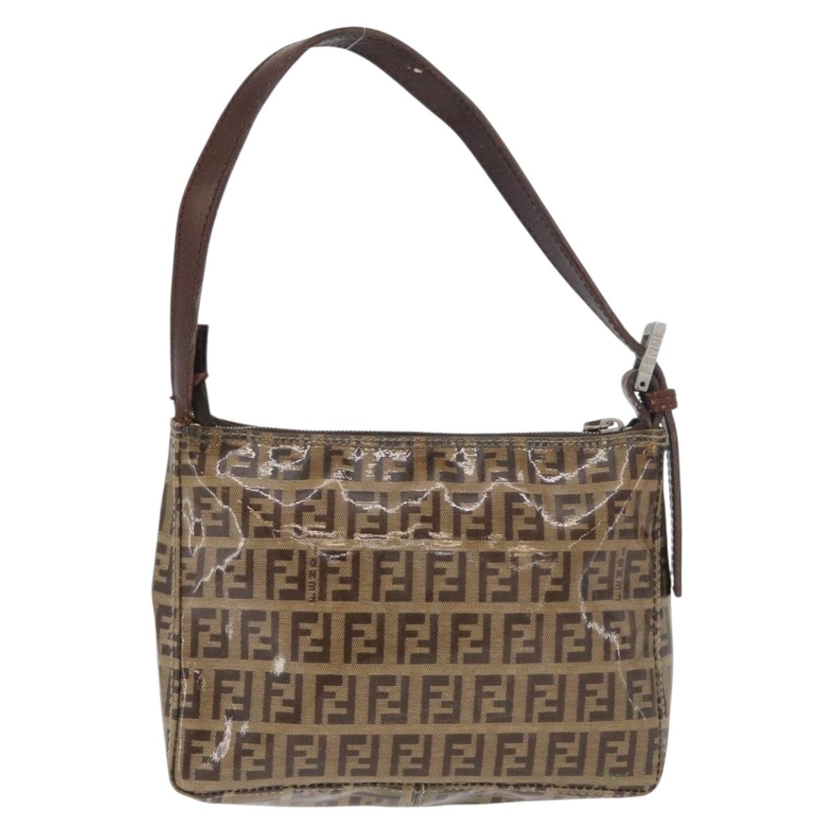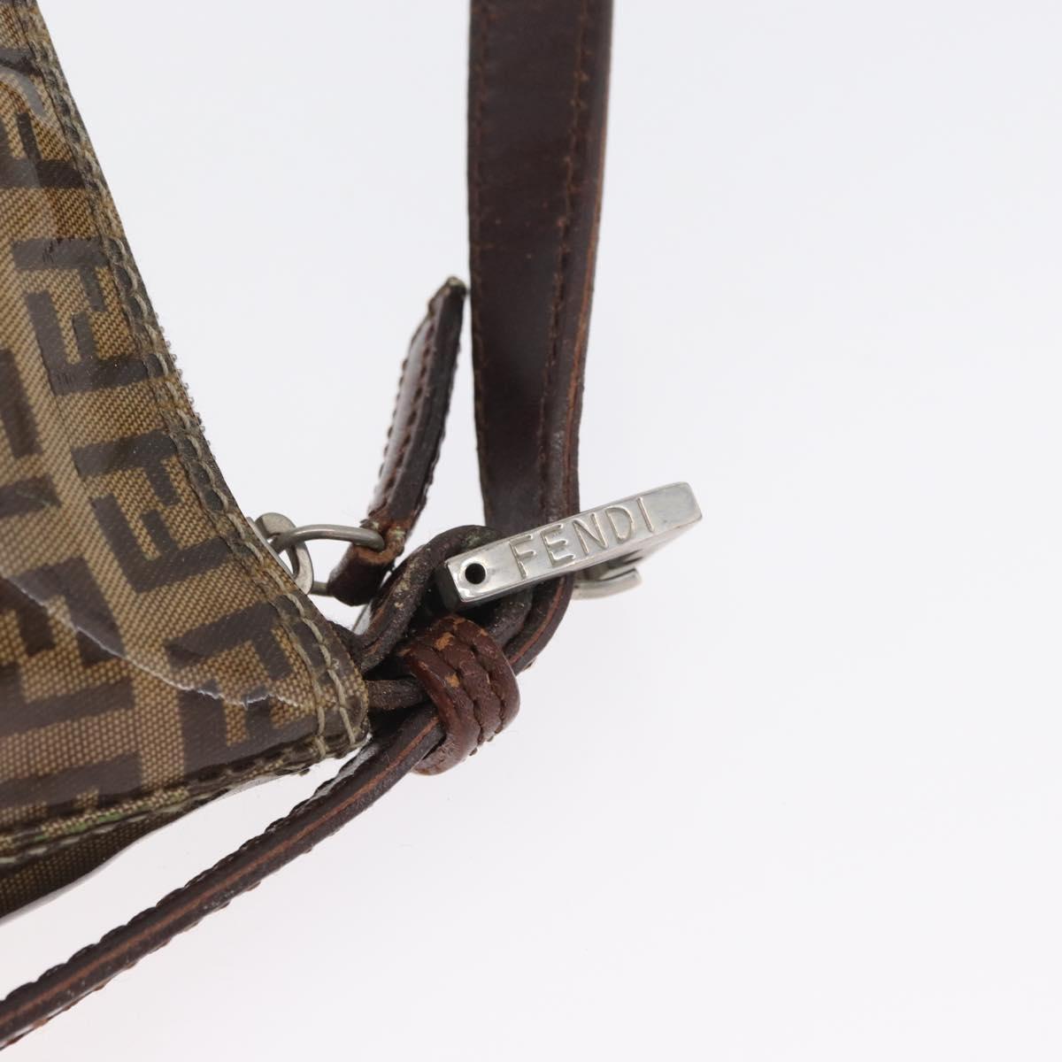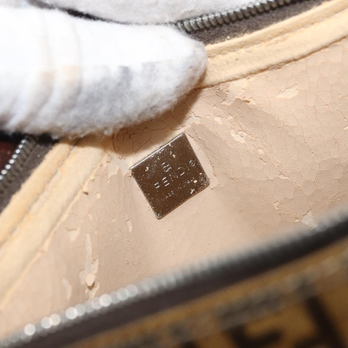 FENDI Zucchino Canvas Hand Pouch Coated Canvas Beige Silver Auth BSZ353