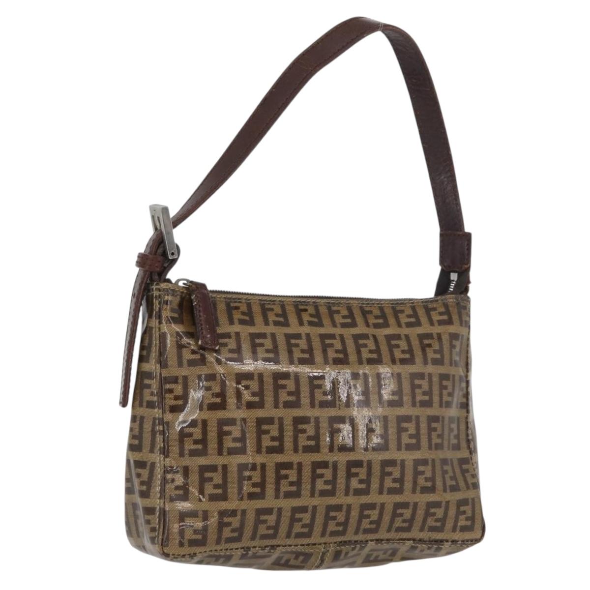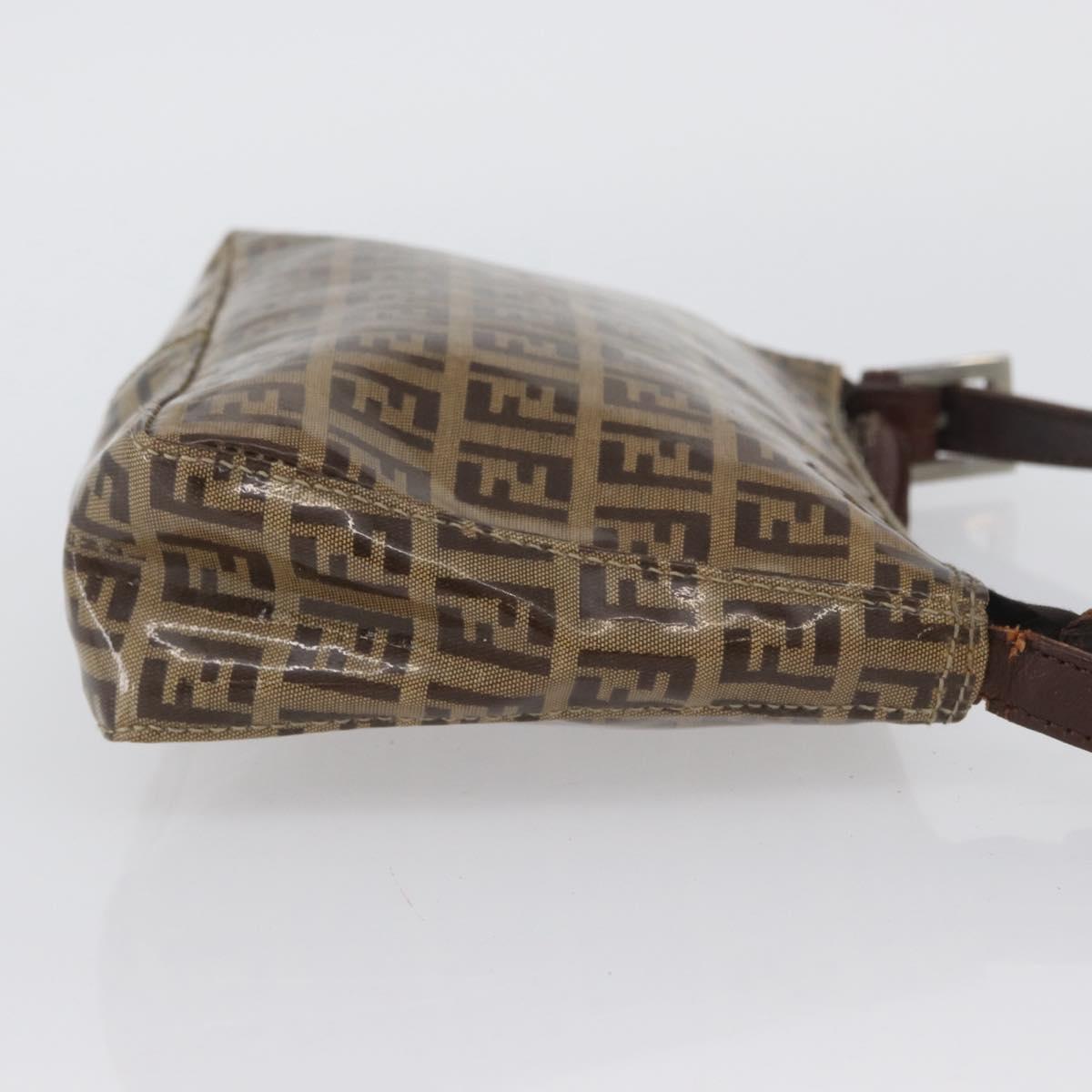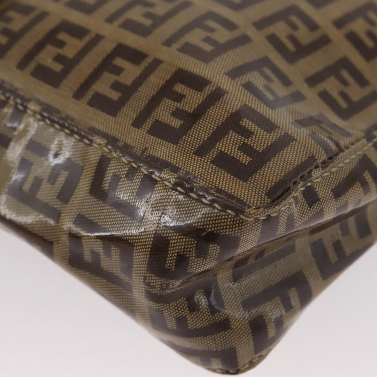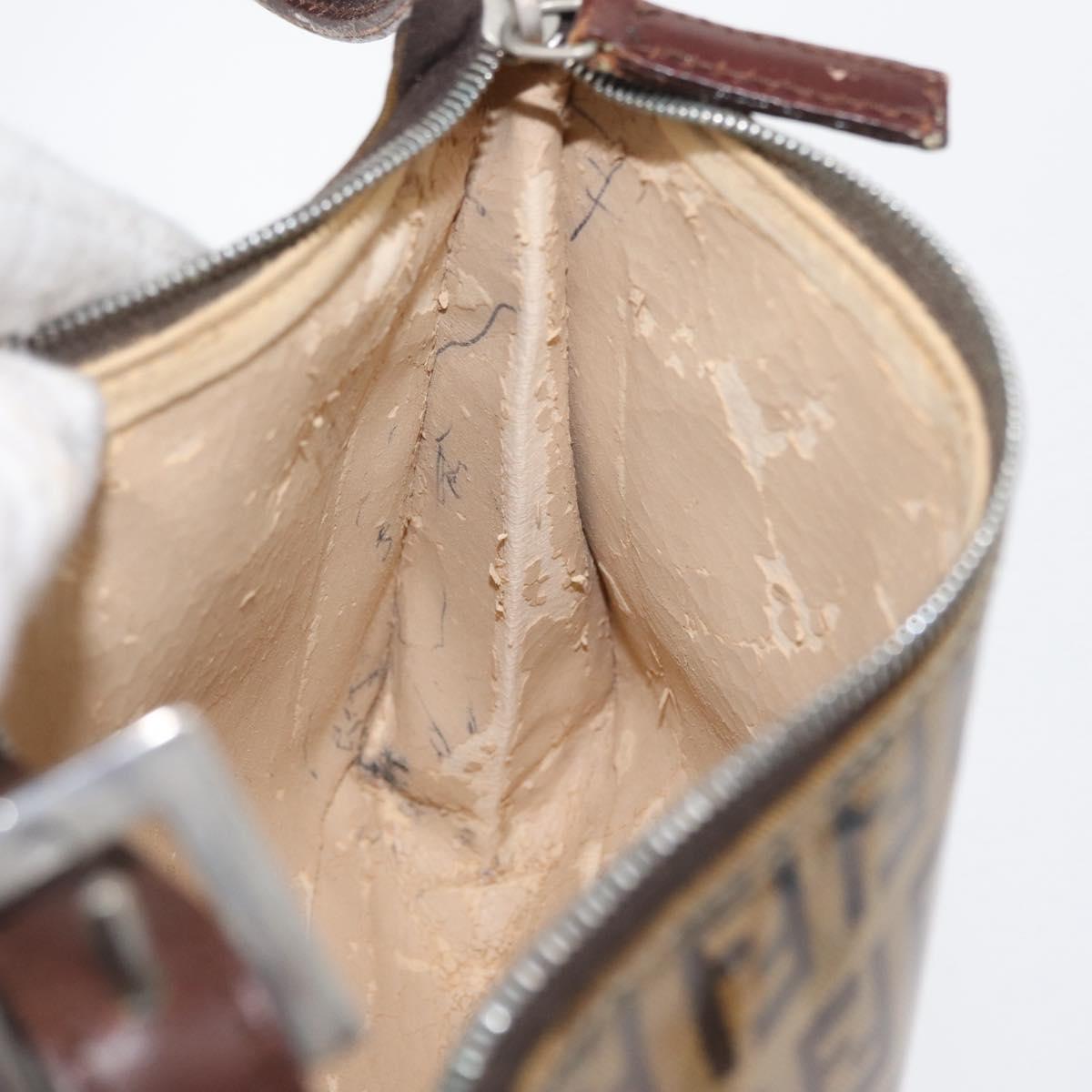 FENDI Zucchino Canvas Hand Pouch Coated Canvas Beige Silver Auth BSZ353