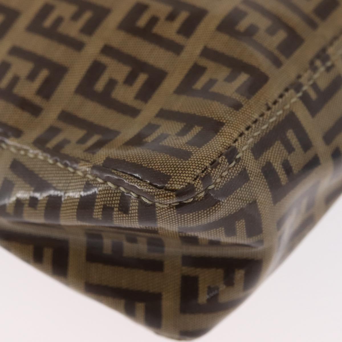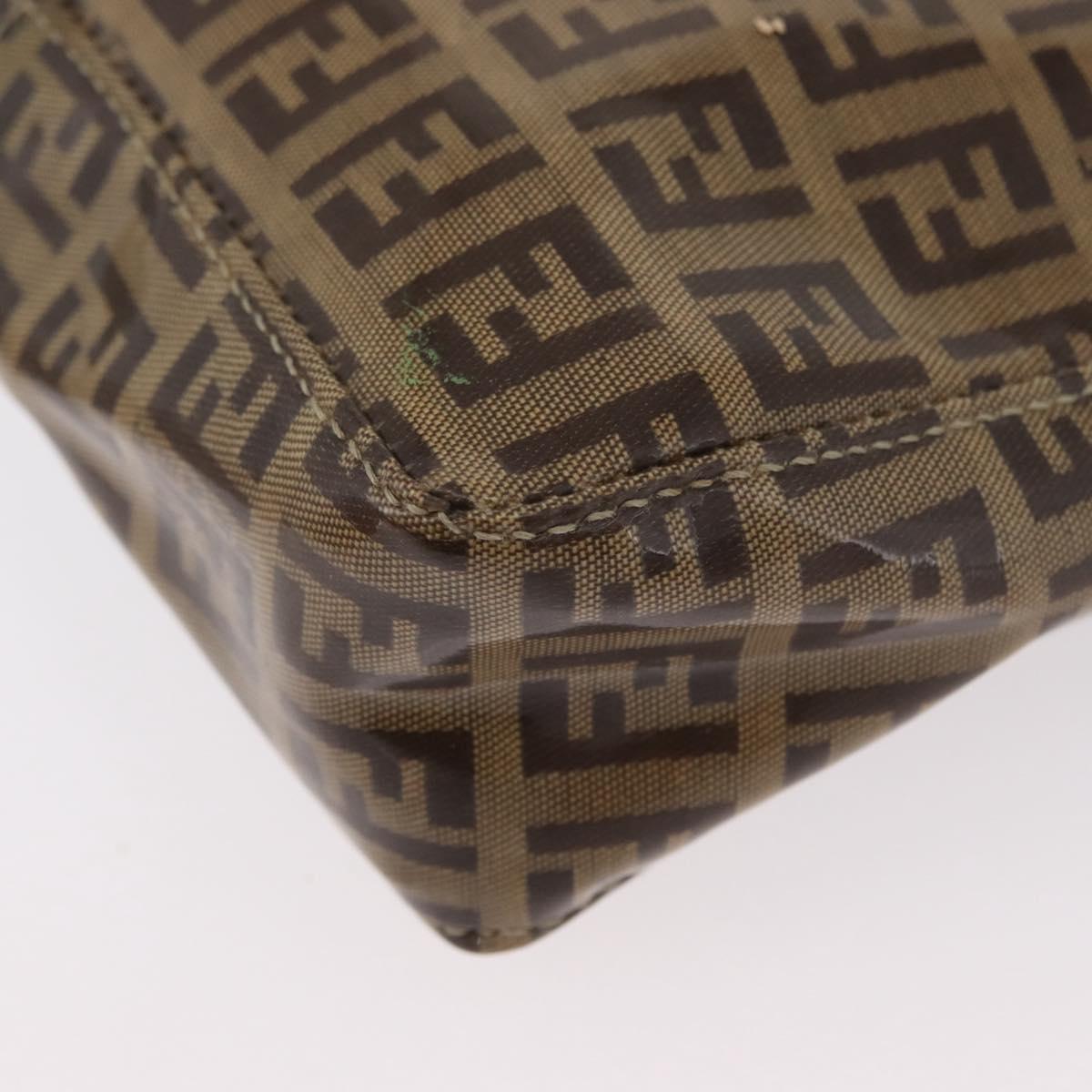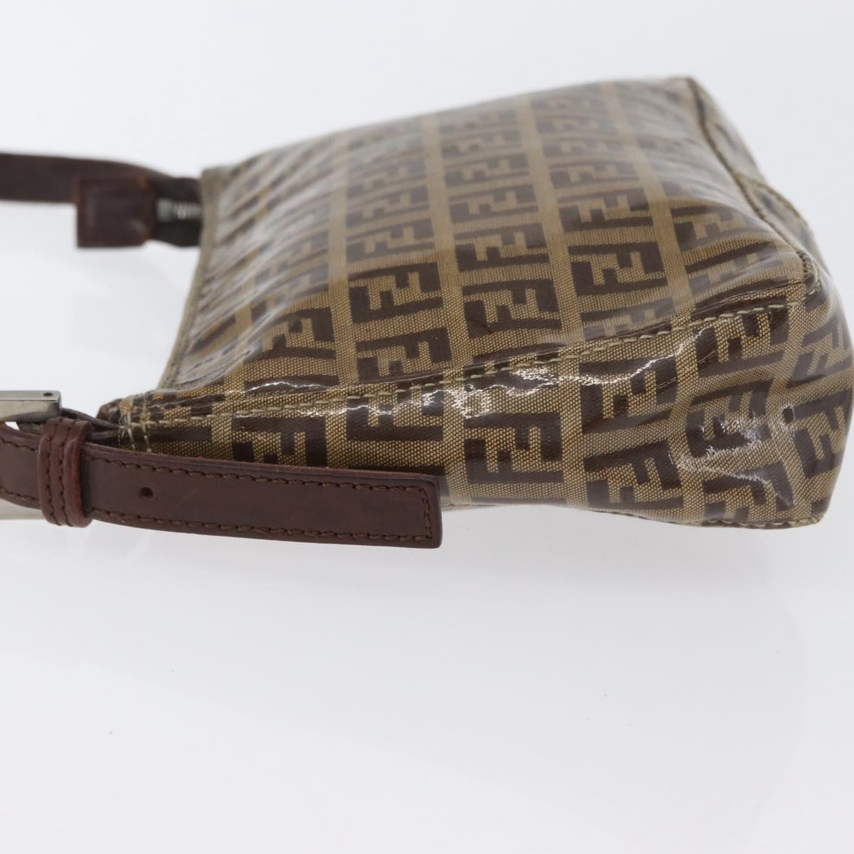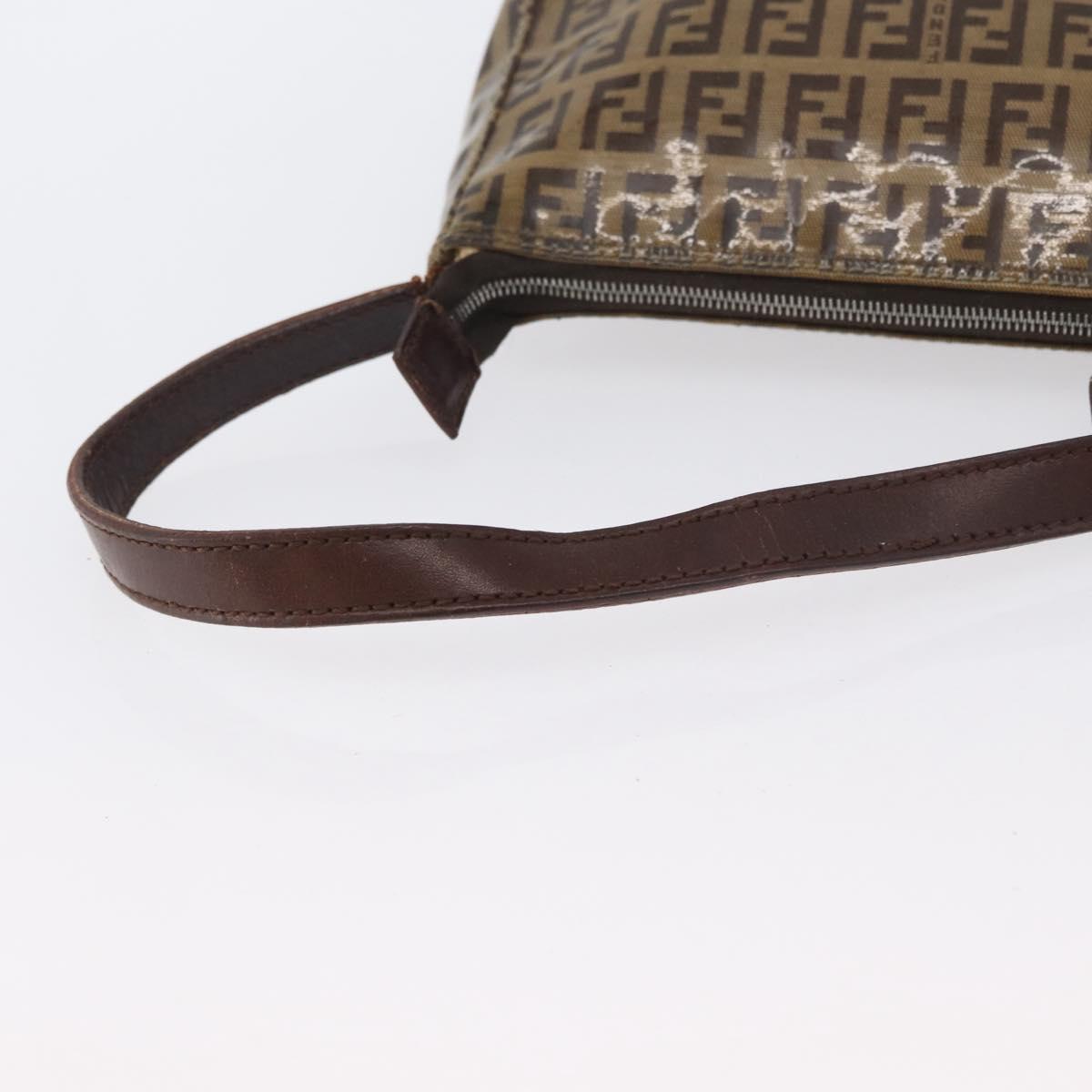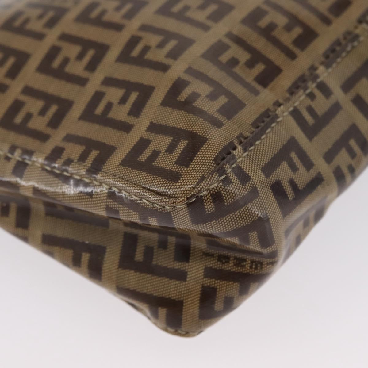 FENDI Zucchino Canvas Hand Pouch Coated Canvas Beige Silver Auth BSZ353