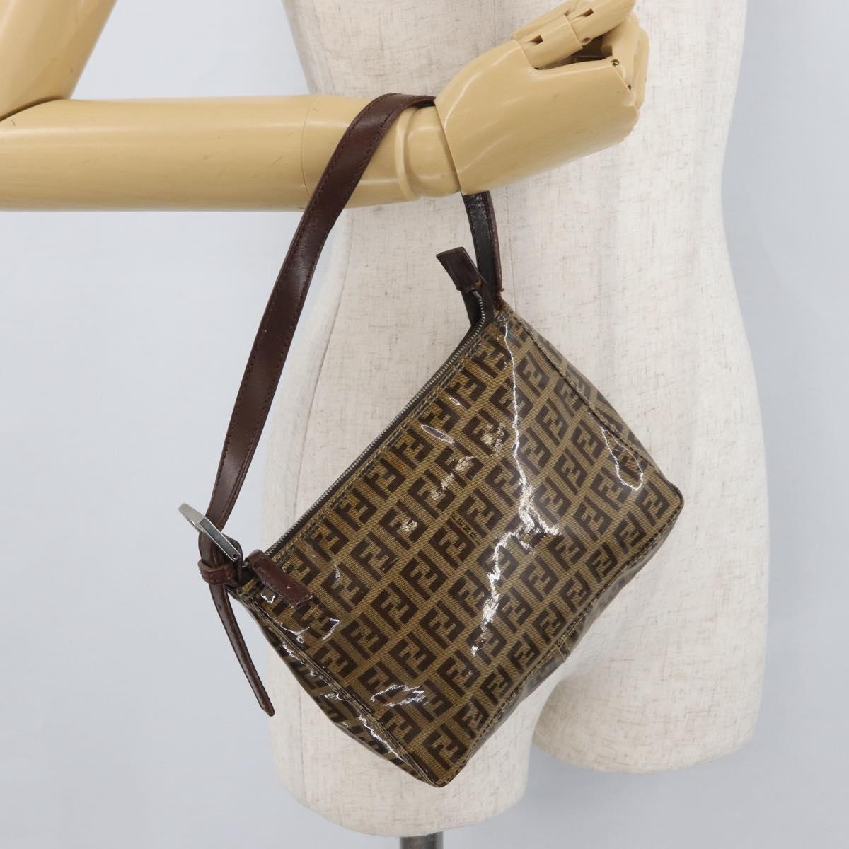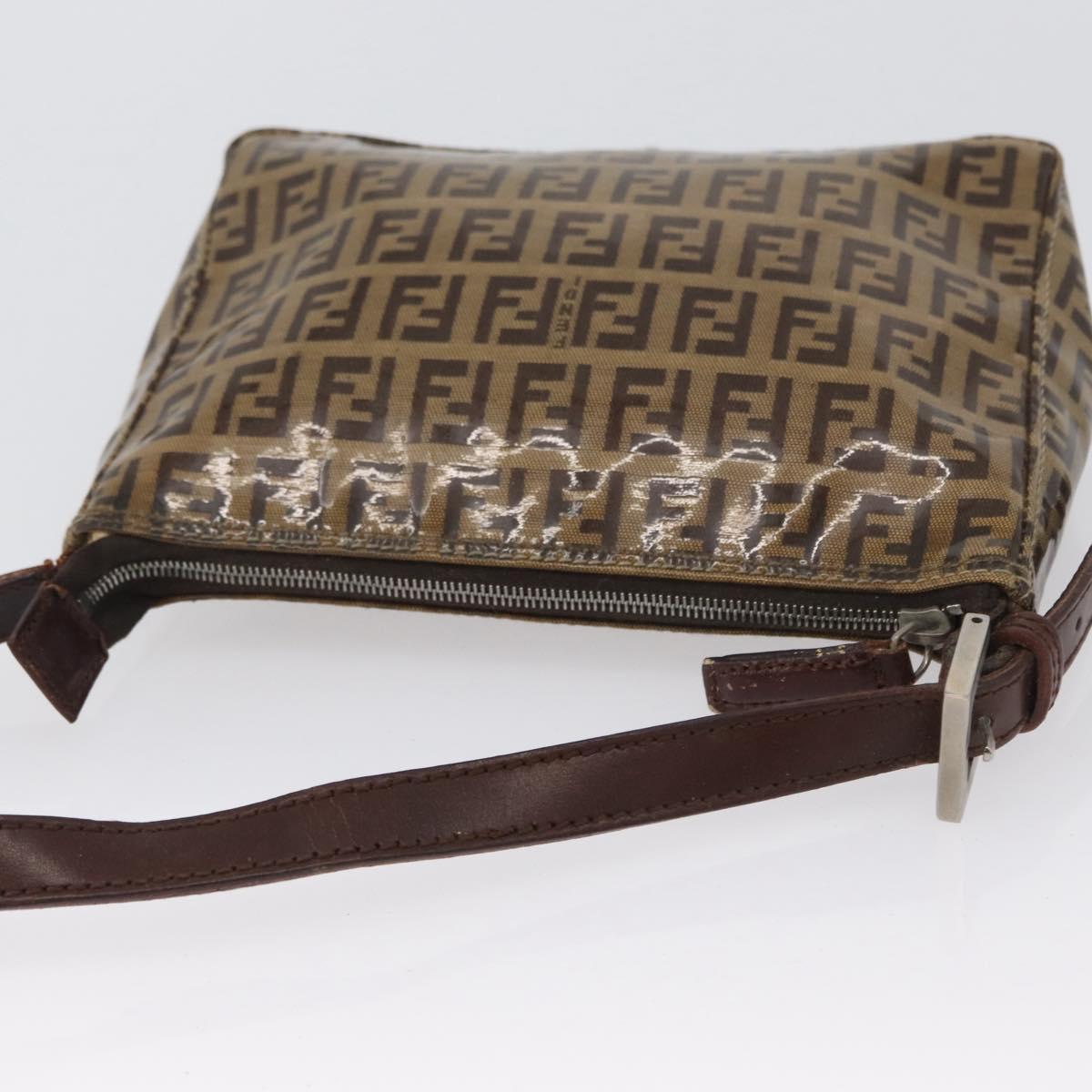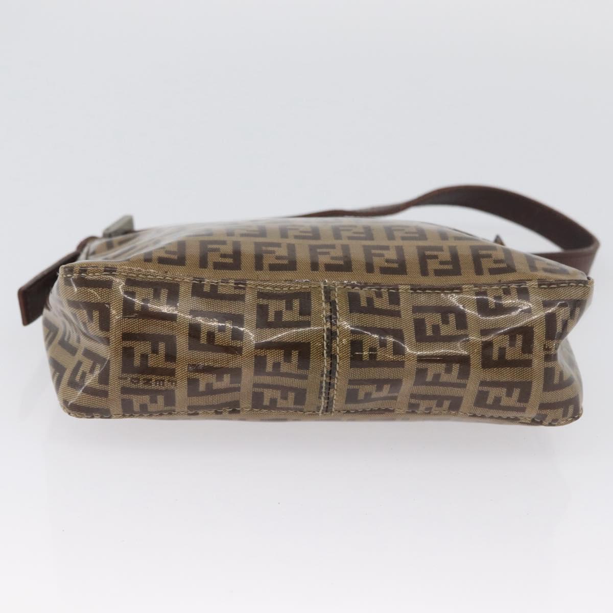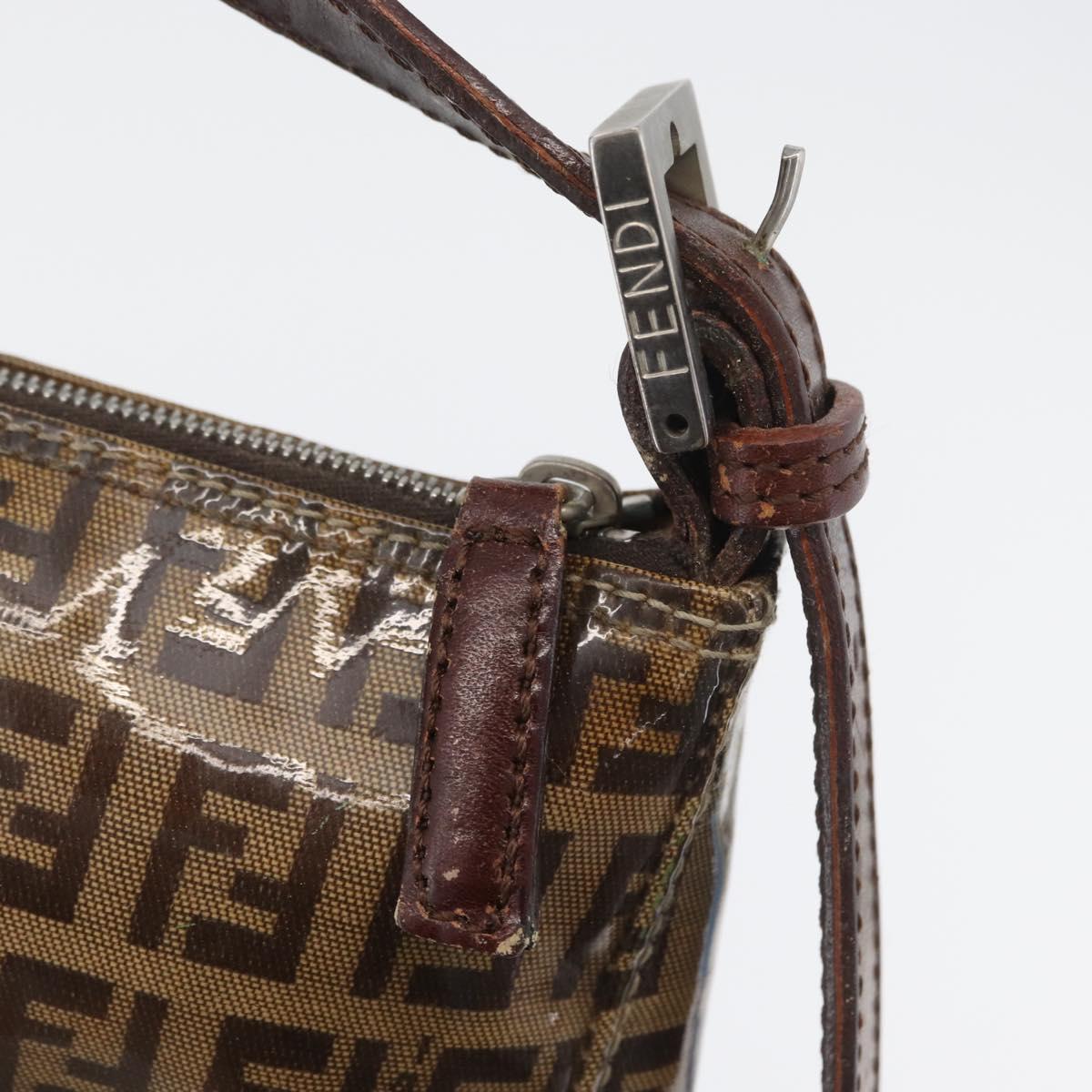 FENDI Zucchino Canvas Hand Pouch Coated Canvas Beige Silver Auth BSZ353