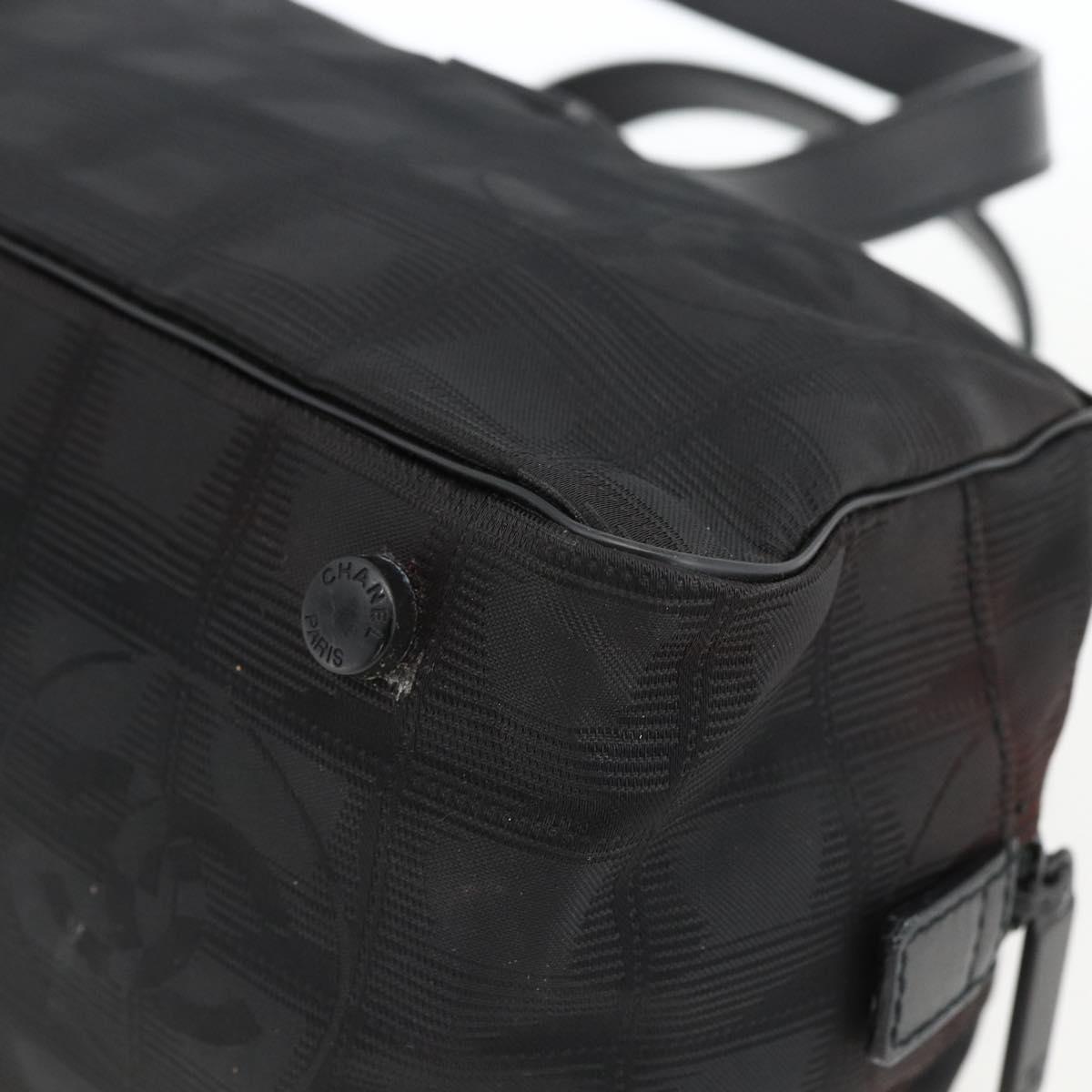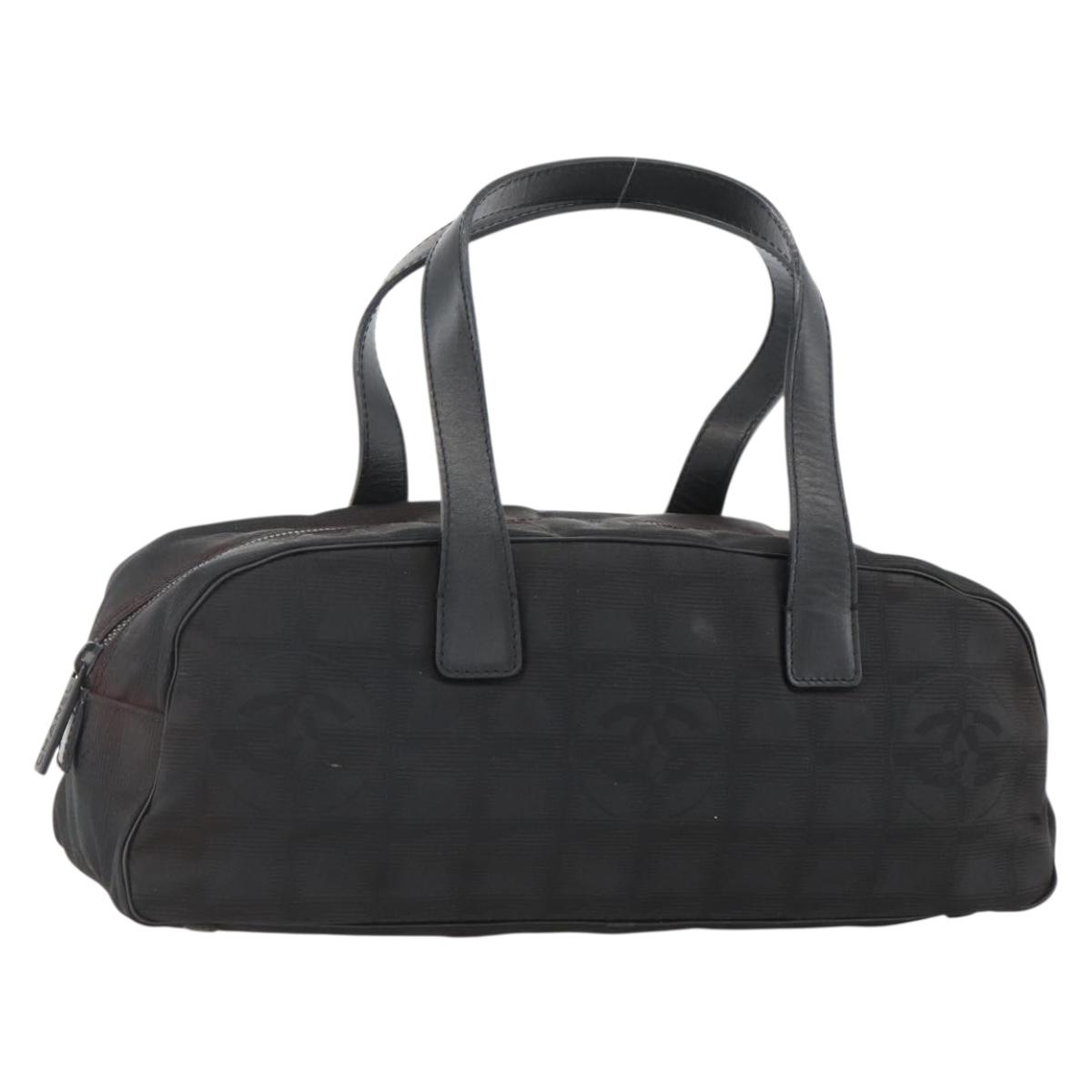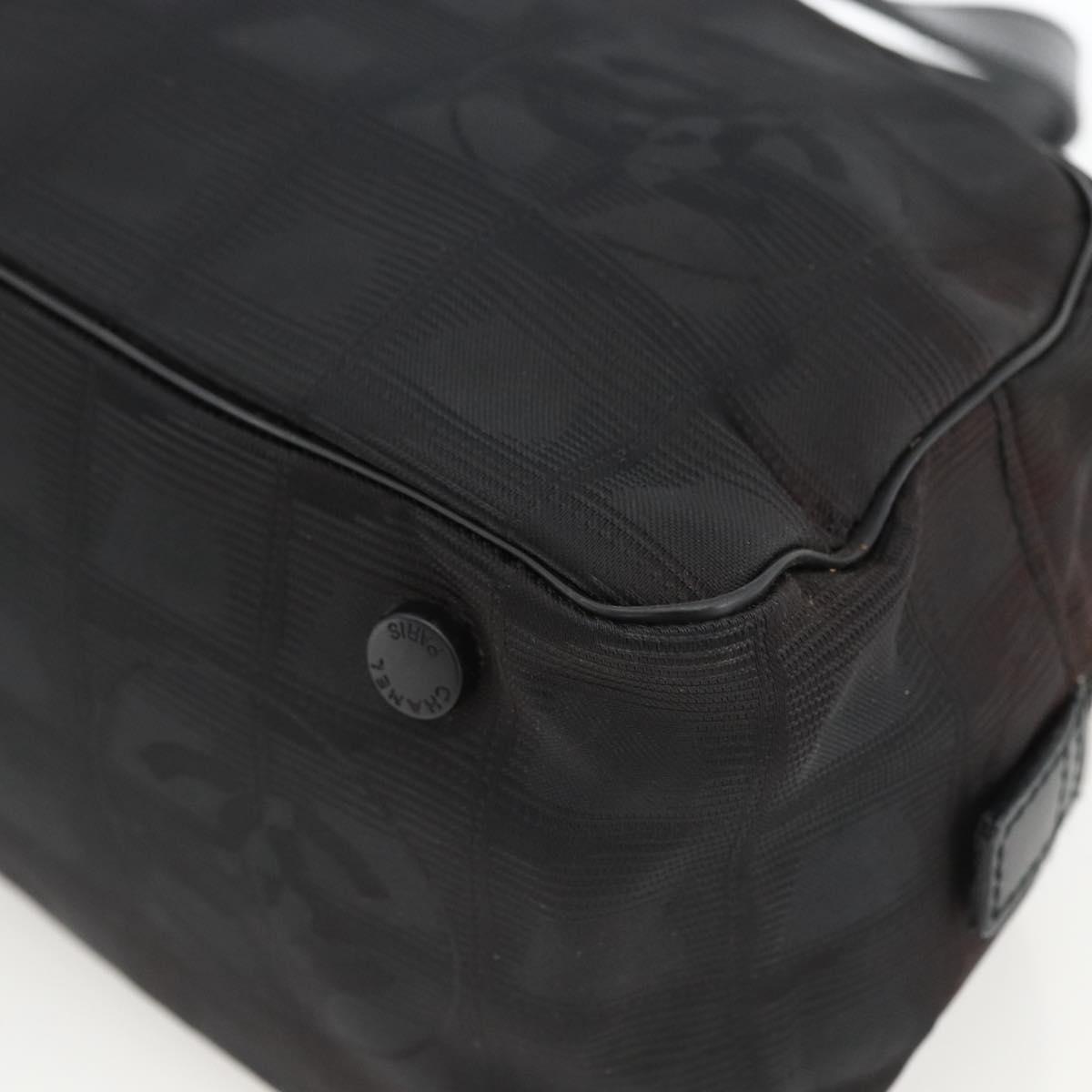 CHANEL New Travel Line Hand Bag Nylon Black Silver CC Auth BSZ188