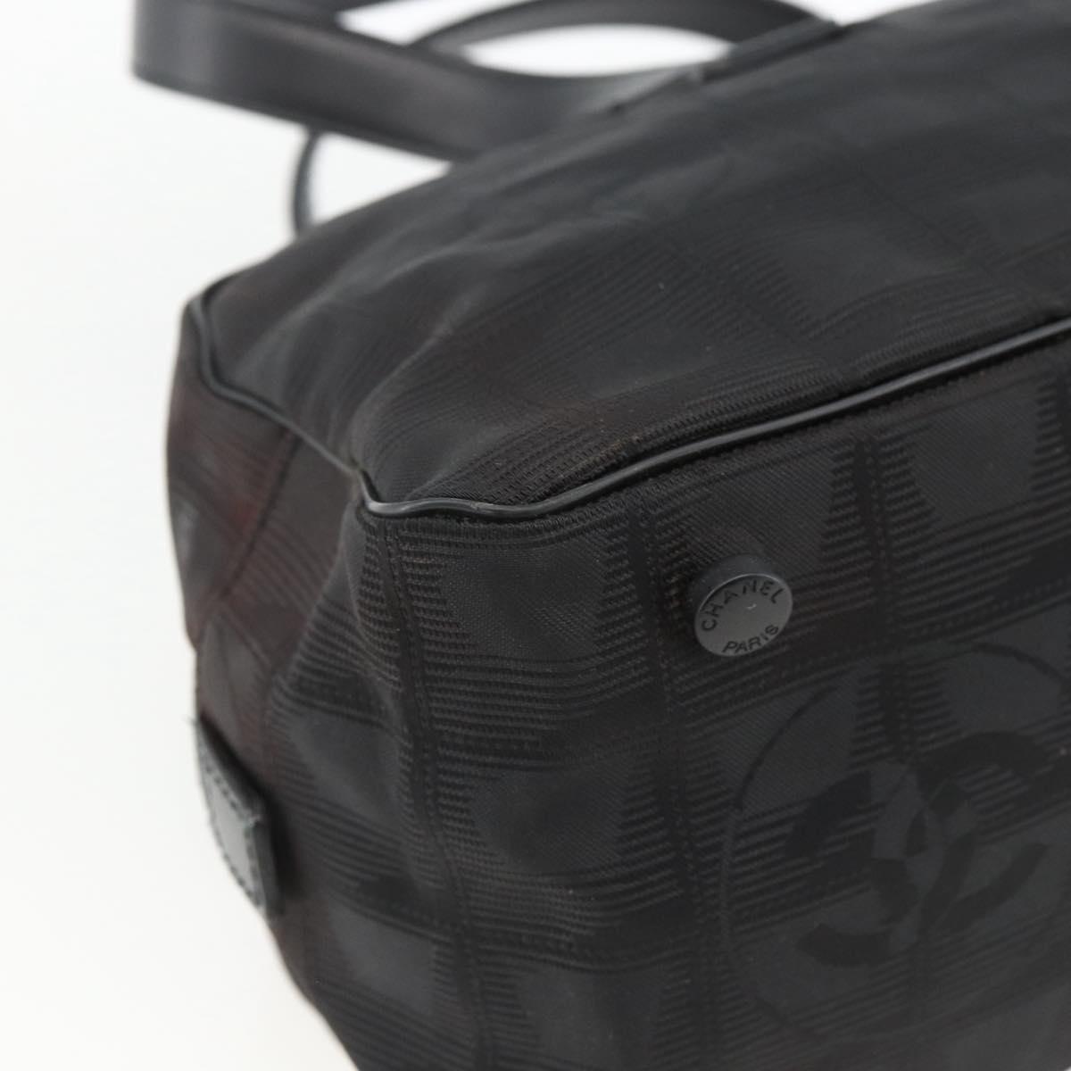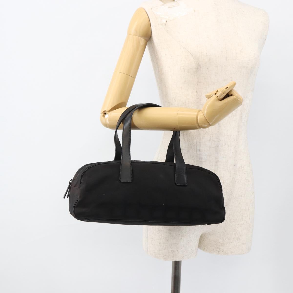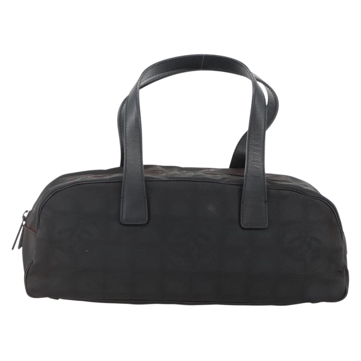 CHANEL New Travel Line Hand Bag Nylon Black Silver CC Auth BSZ188