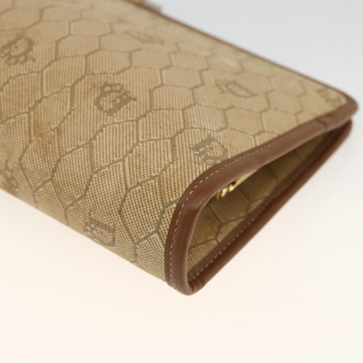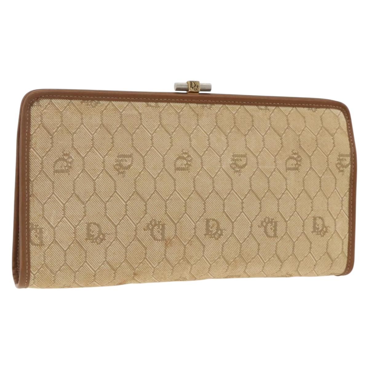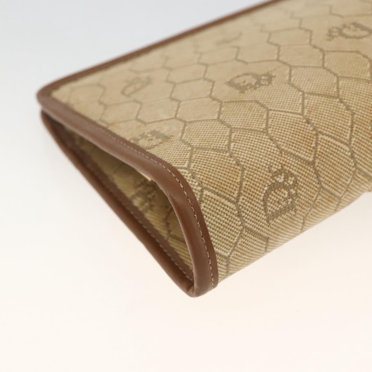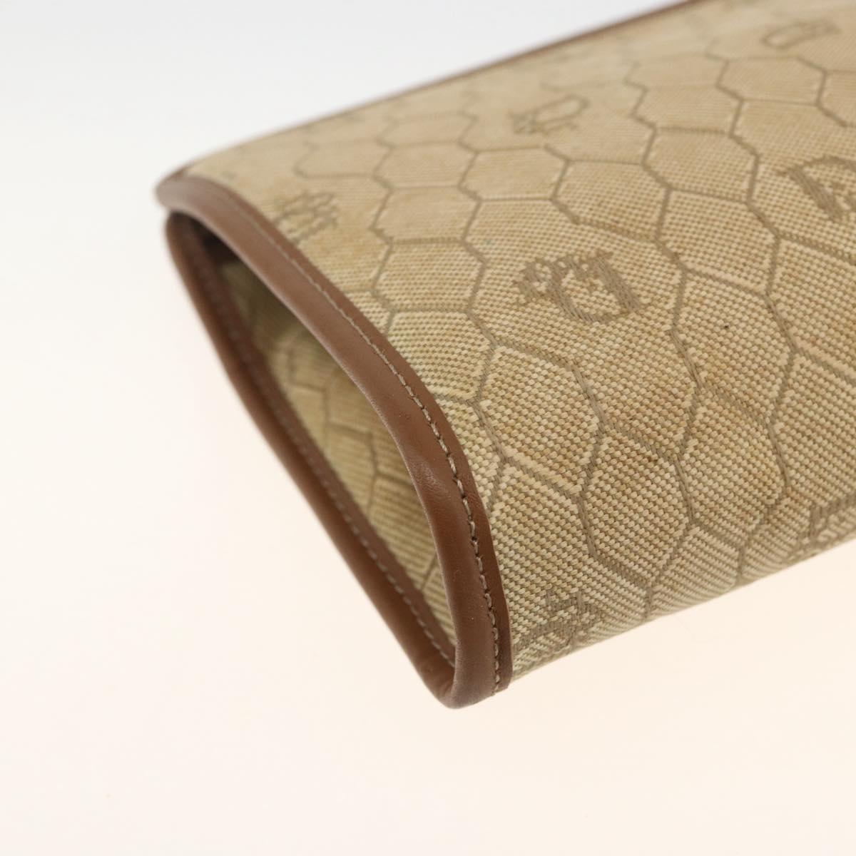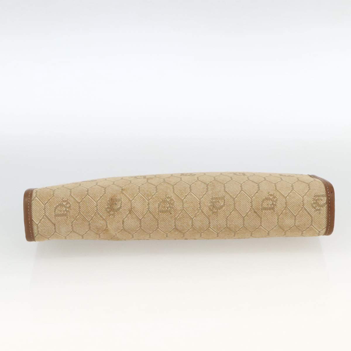 Christian Dior Honeycomb Canvas Clutch Bag Beige Gold Auth 174606