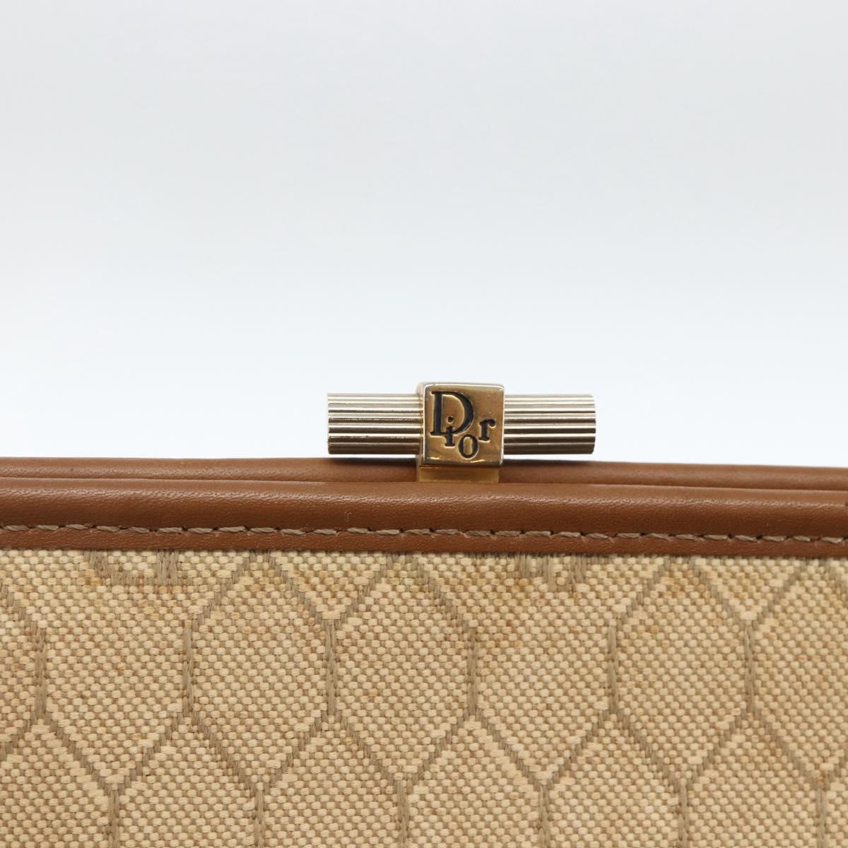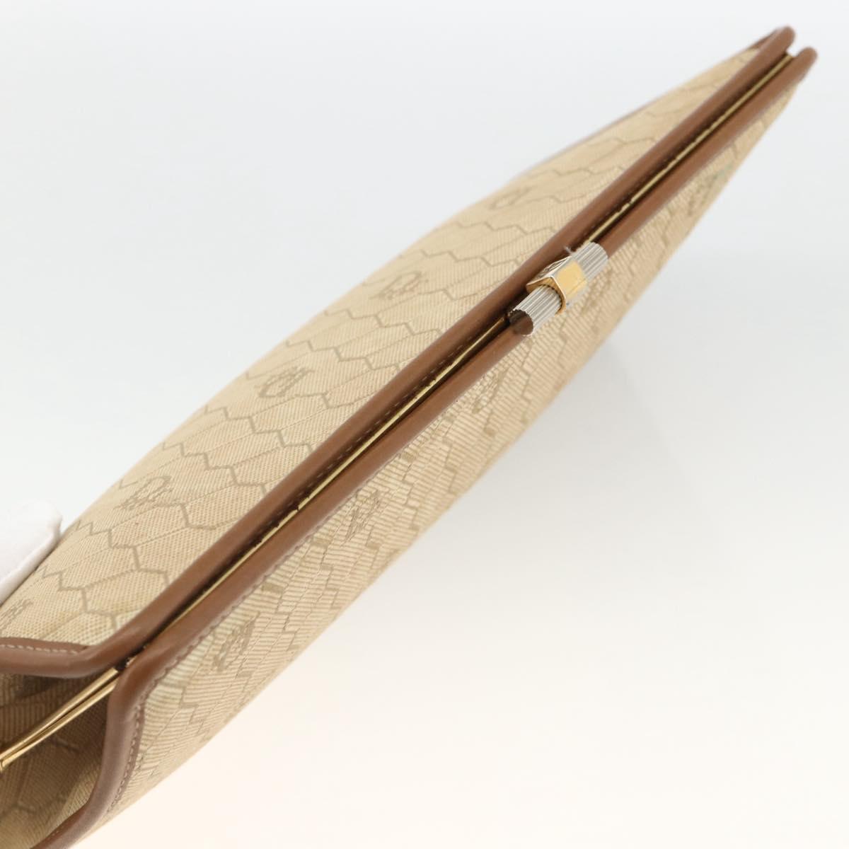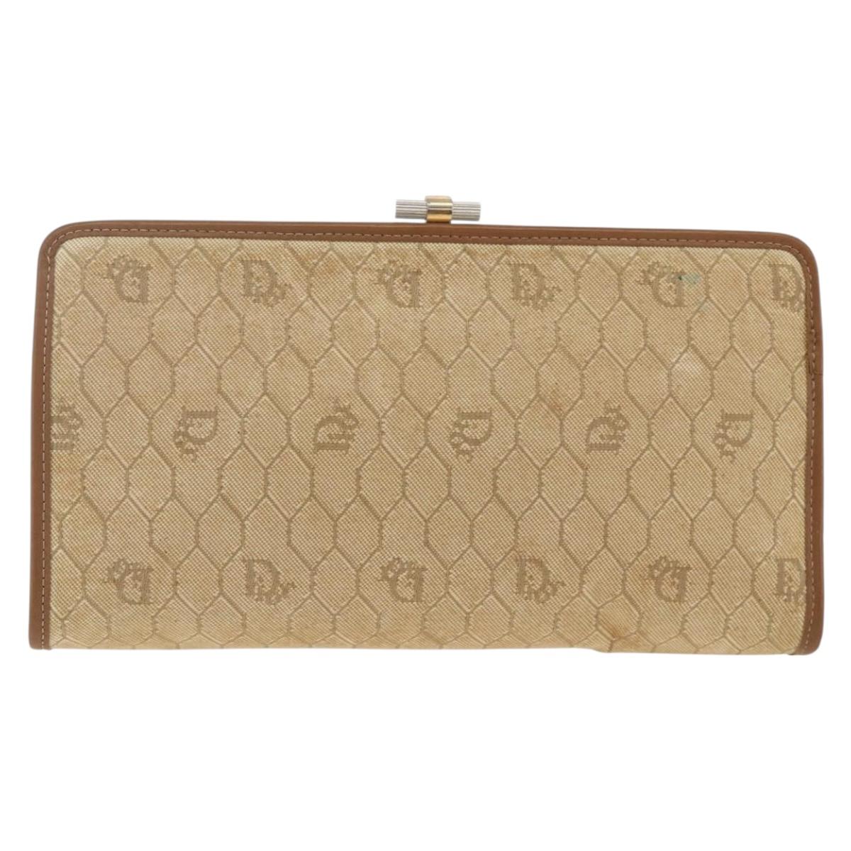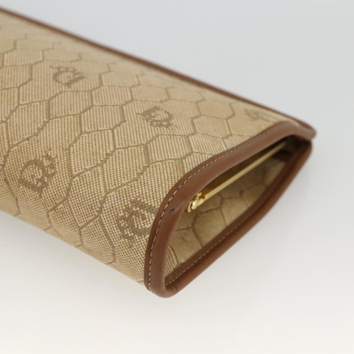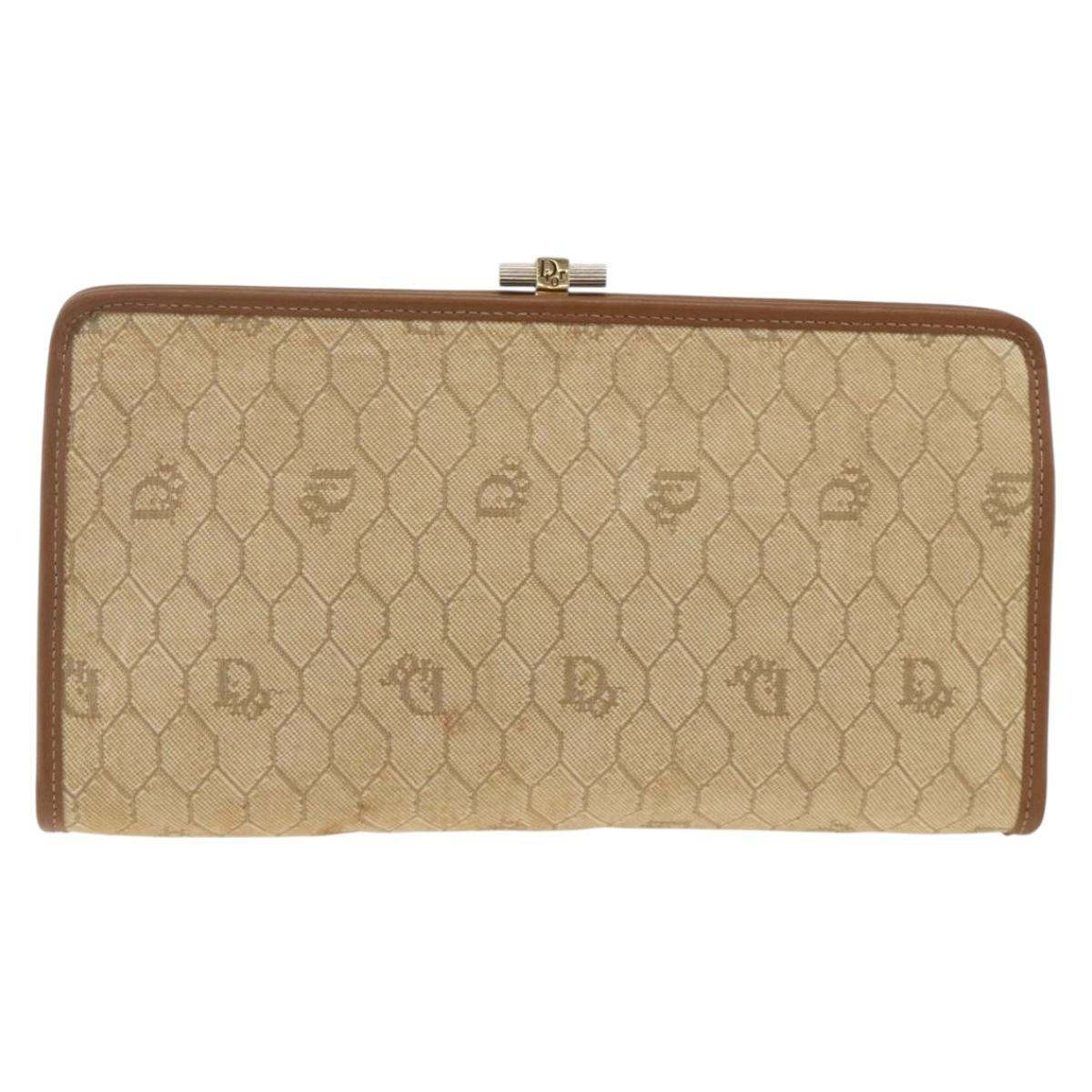 Christian Dior Honeycomb Canvas Clutch Bag Beige Gold Auth 174606