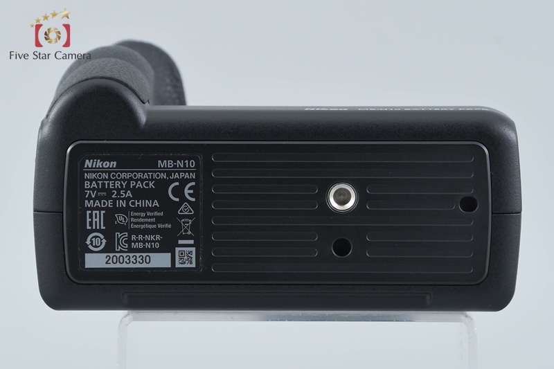 | Includes | Body cap, strap, battery, charger (third-party), MB-N10 battery pack, battery compartment cover. |