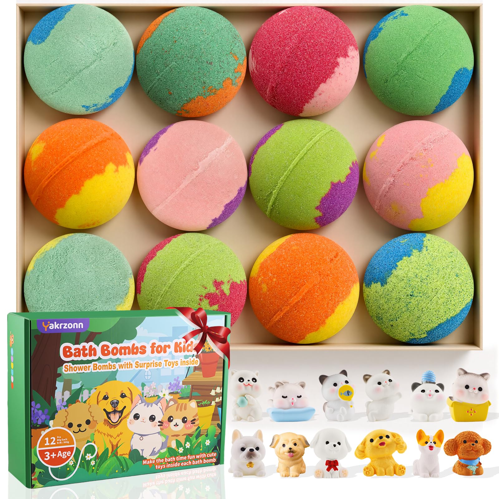 Bath Bombs for Kids with Surprise Toys Inside, 12 Pcs Kids Bath Bombs with Cat Dog Toys, Natural Safe Bathbombs for Moisturizing Sensitive Skin, Fun Bubble Bath Fizzies Gift for Boys Girls Toddlers