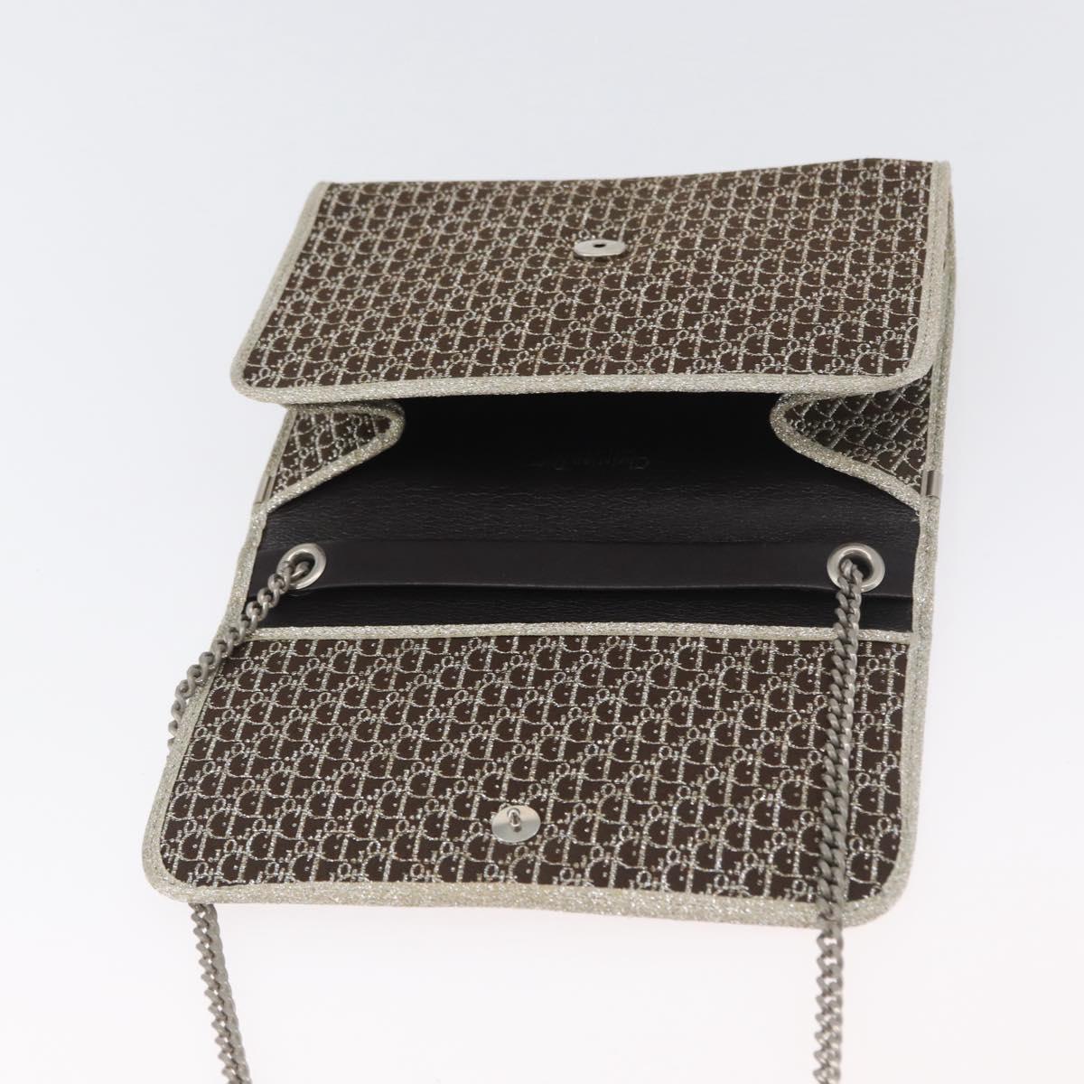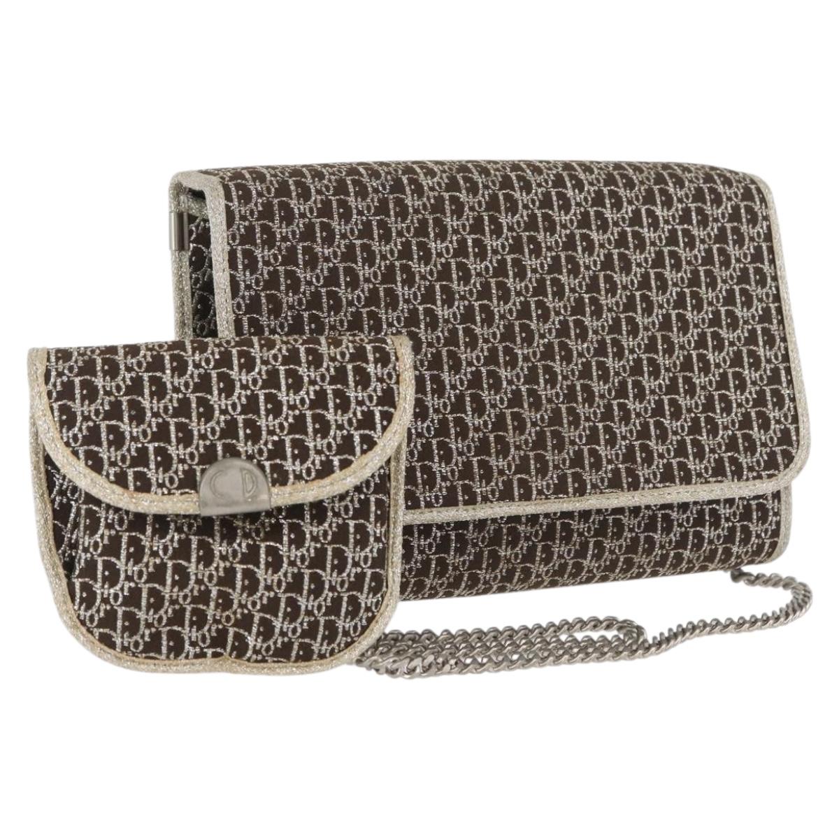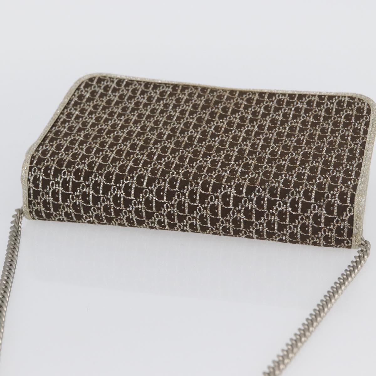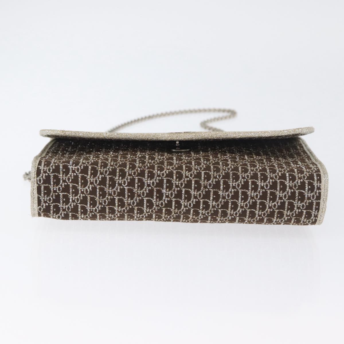 Christian Dior Trotter Canvas Chain Shoulder Bag Gold Auth mr2183