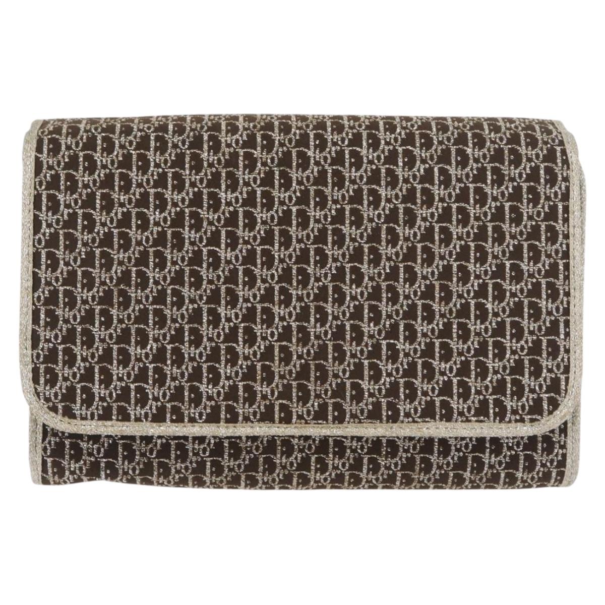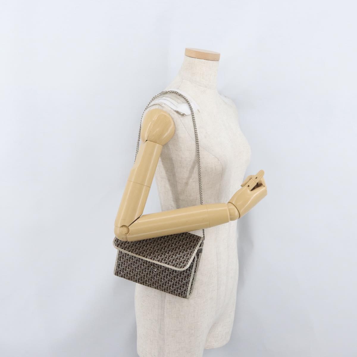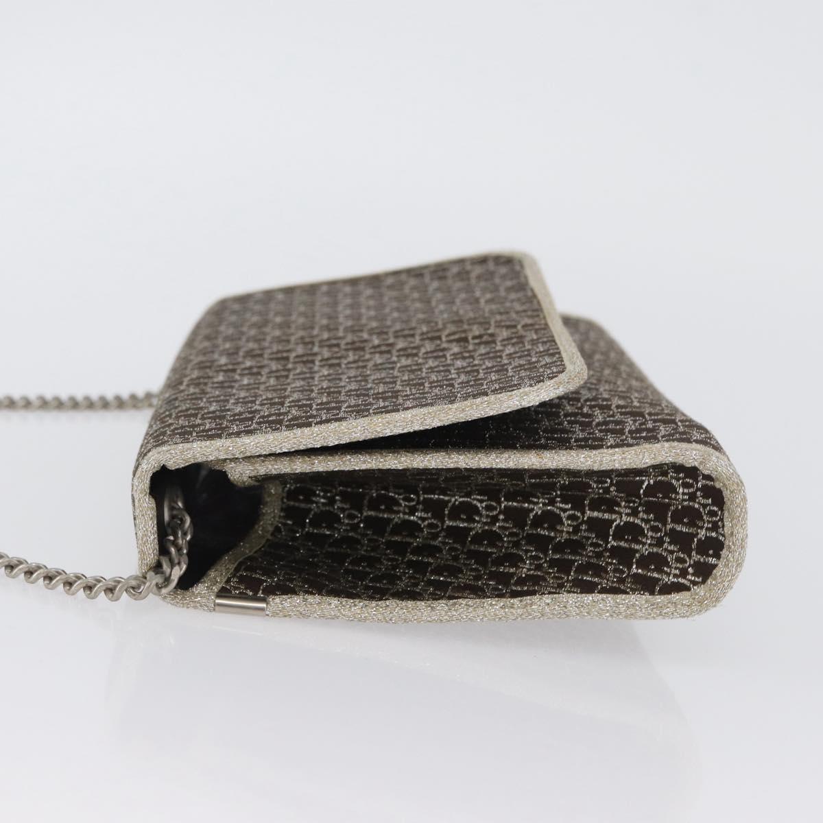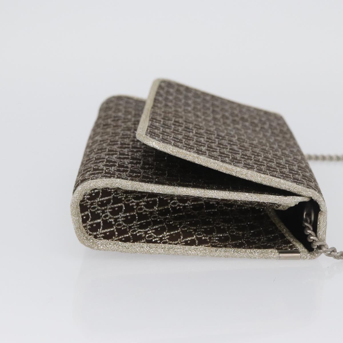 Christian Dior Trotter Canvas Chain Shoulder Bag Gold Auth mr2183