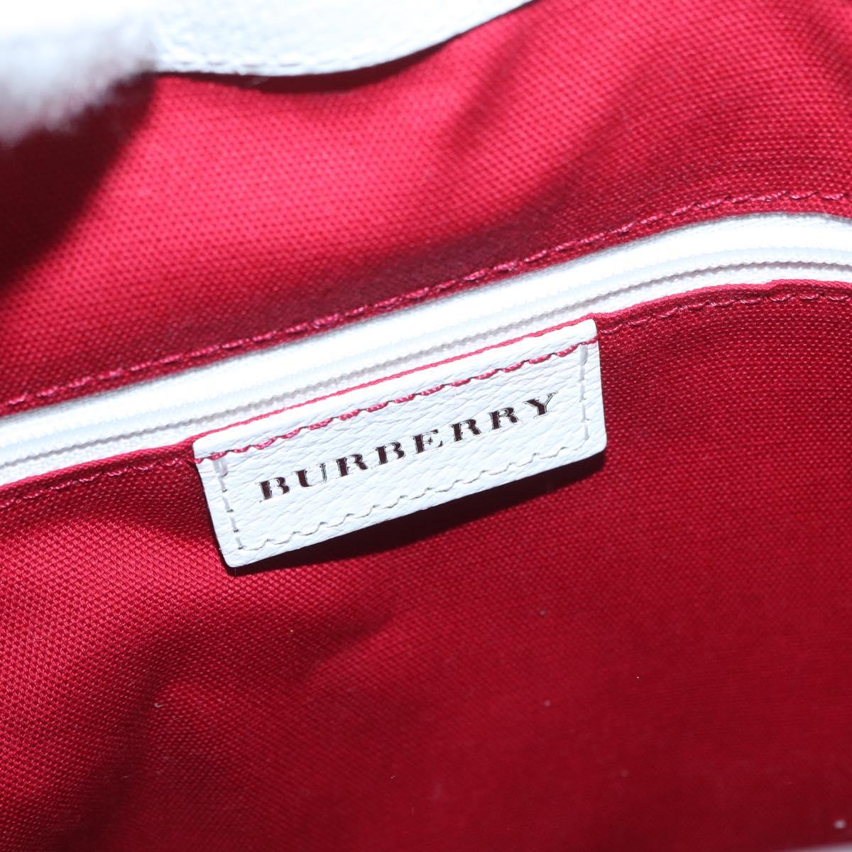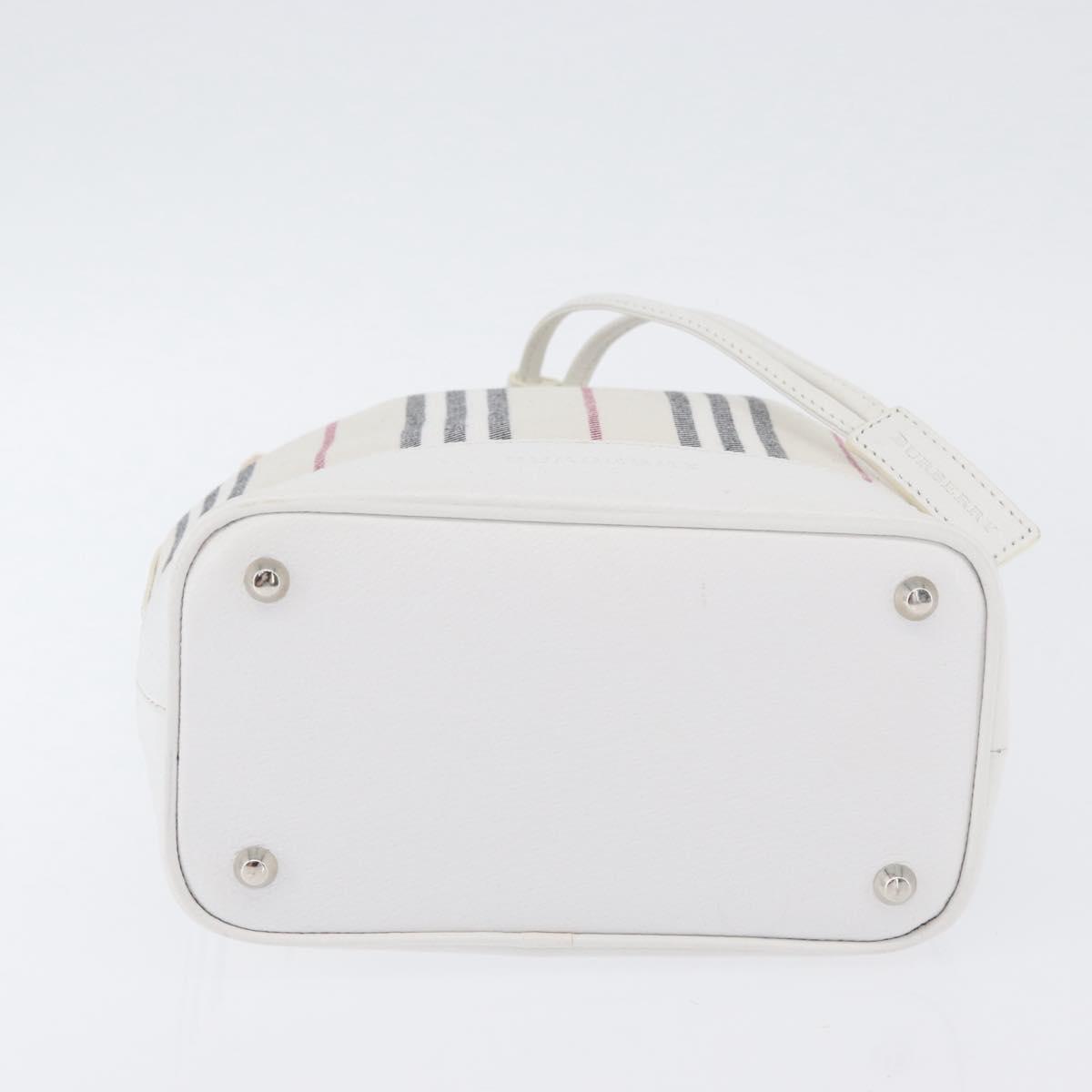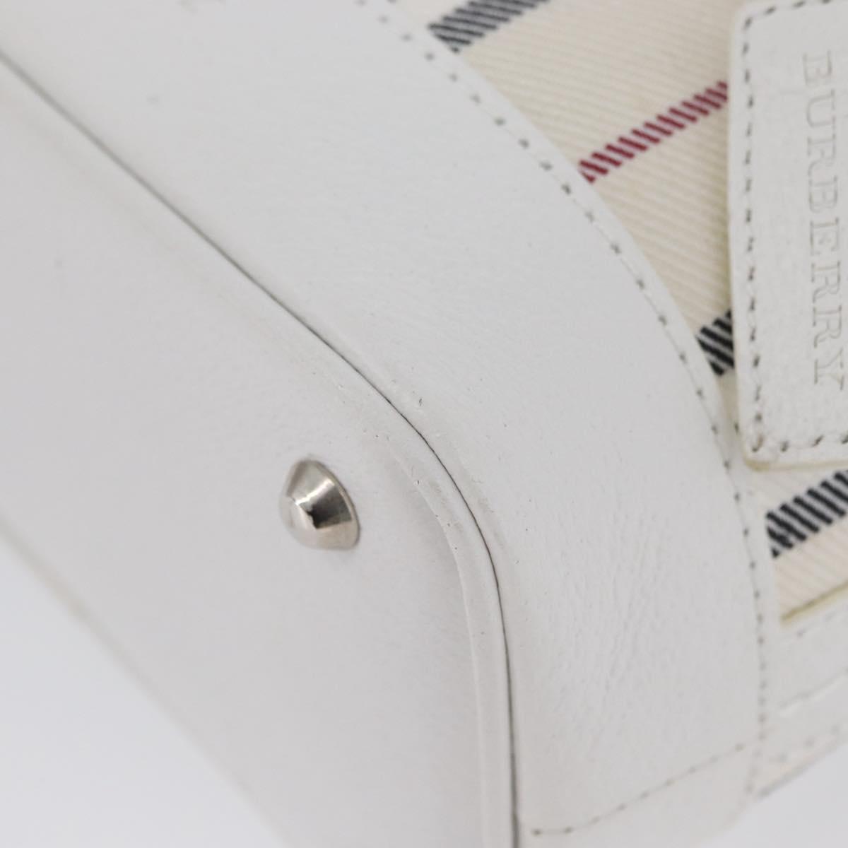 BURBERRY Nova Check Hand Bag Canvas Leather Silver White Auth SW2175