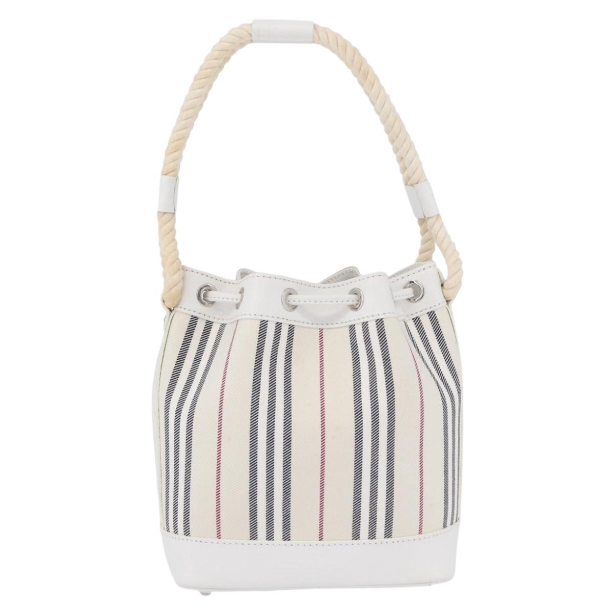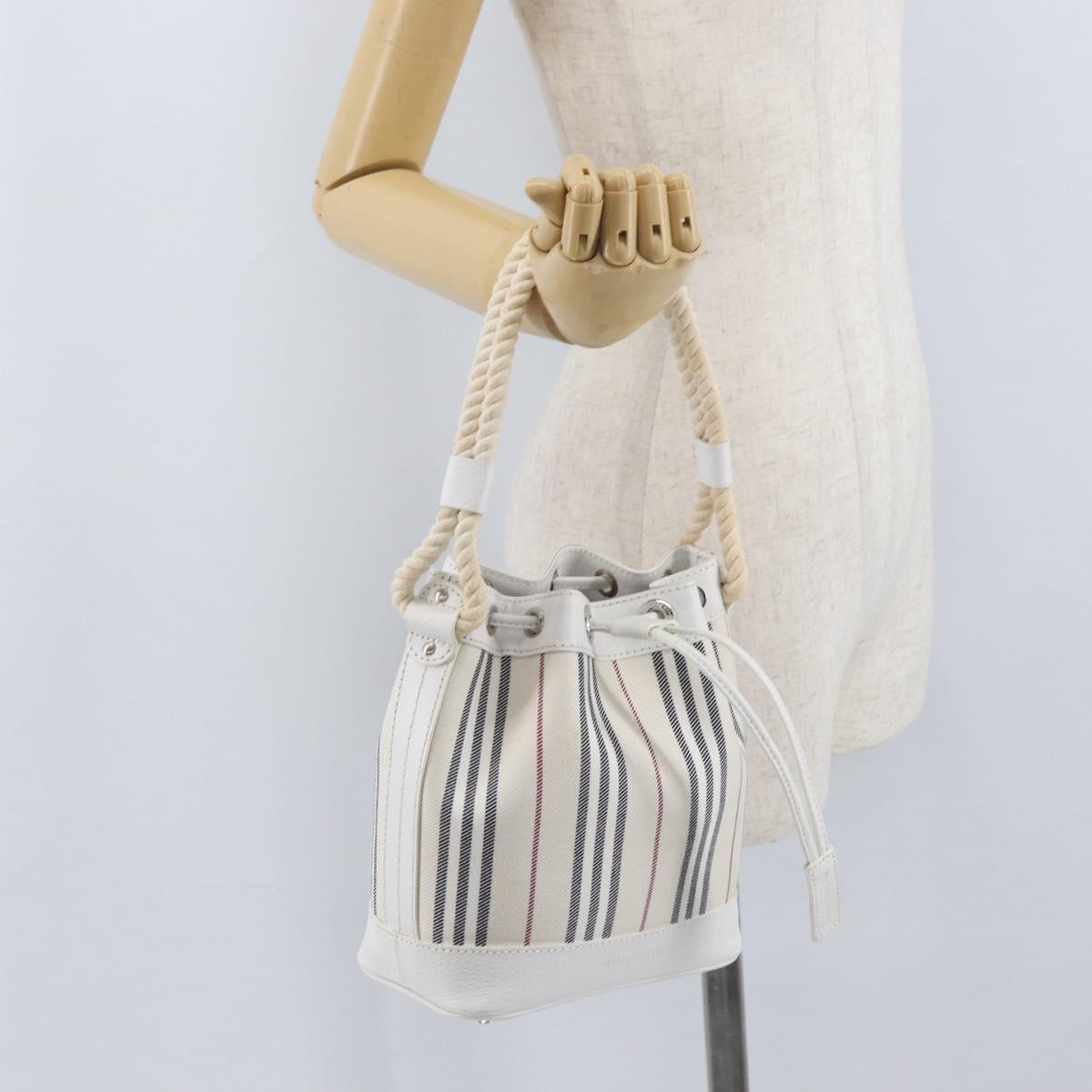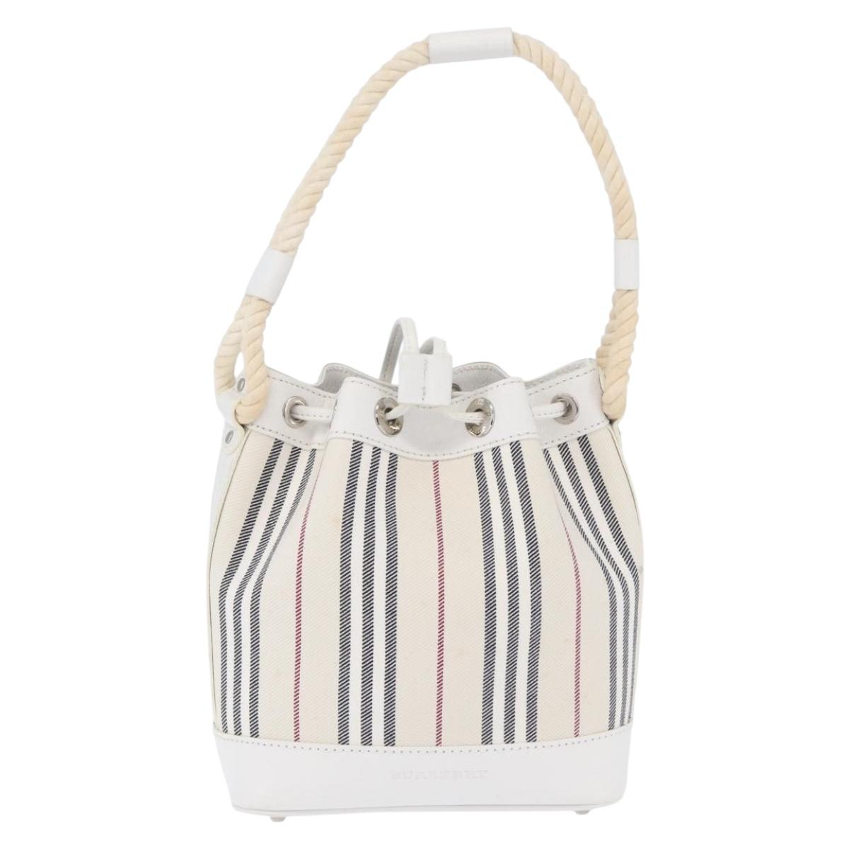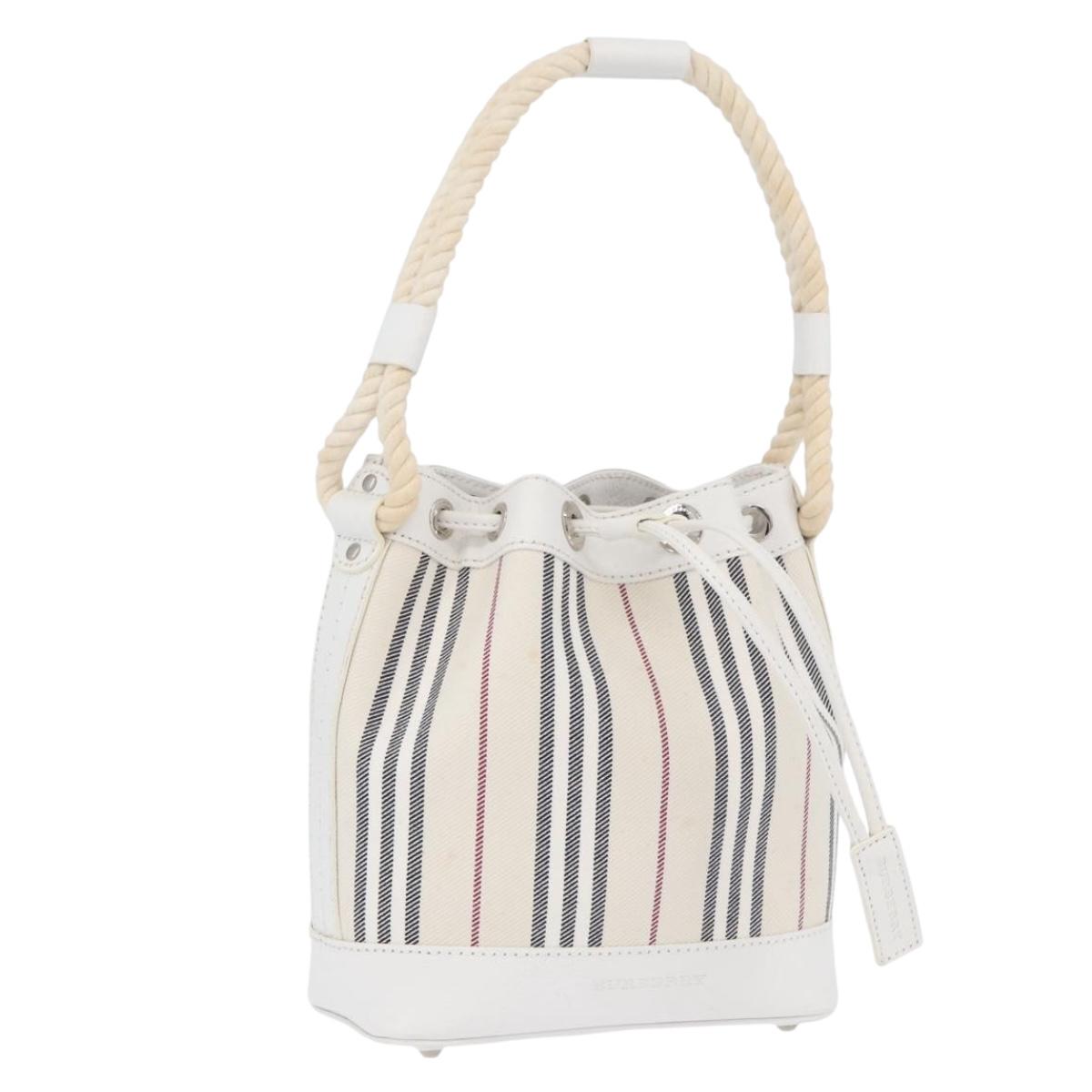 BURBERRY Nova Check Hand Bag Canvas Leather Silver White Auth SW2175
