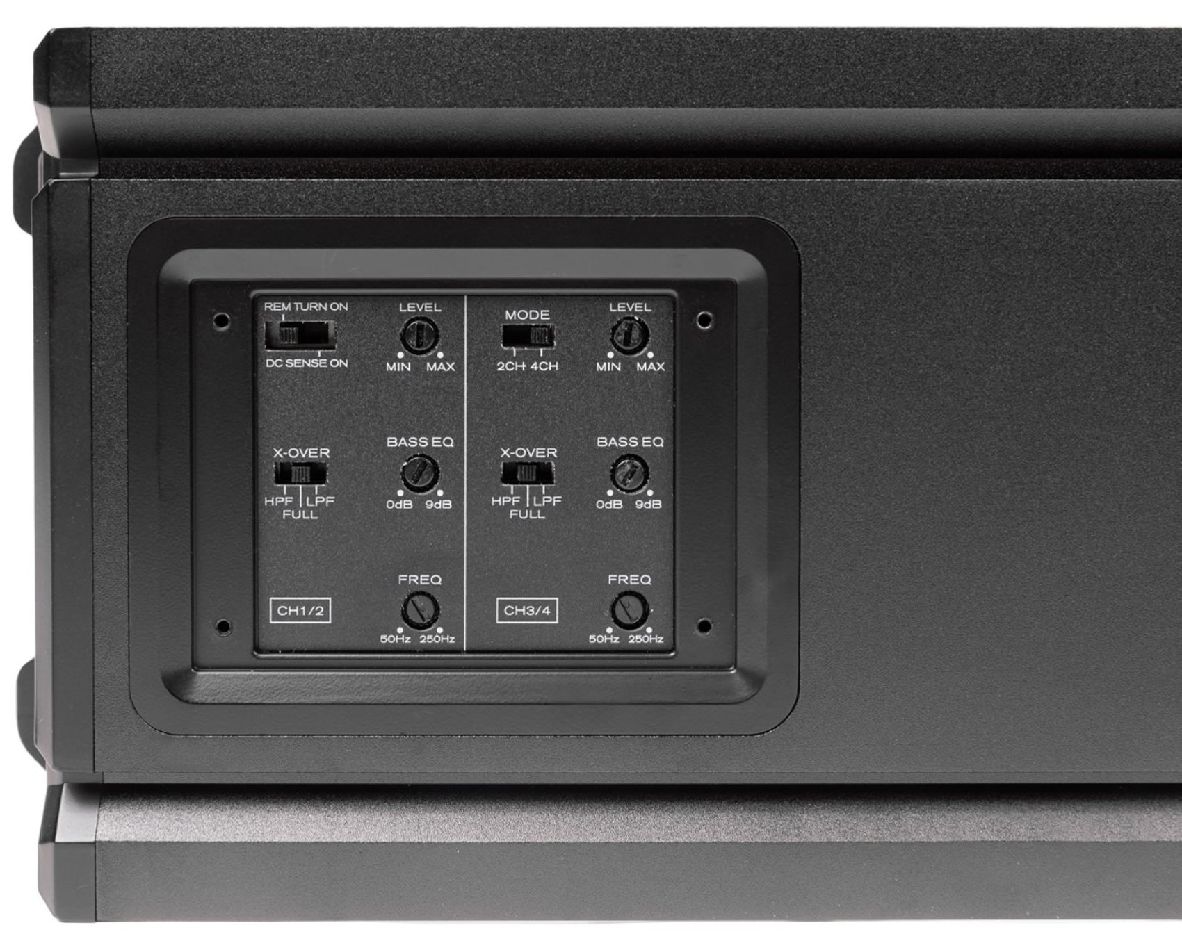 - Amp Variable High Pass Crossover 12dB per Octave: CH1 & CH2: Switched Full/HPF/LPF 50Hz-250Hz, CH3 & CH4: Switched Full/HPF/LPF 50Hz-250Hz