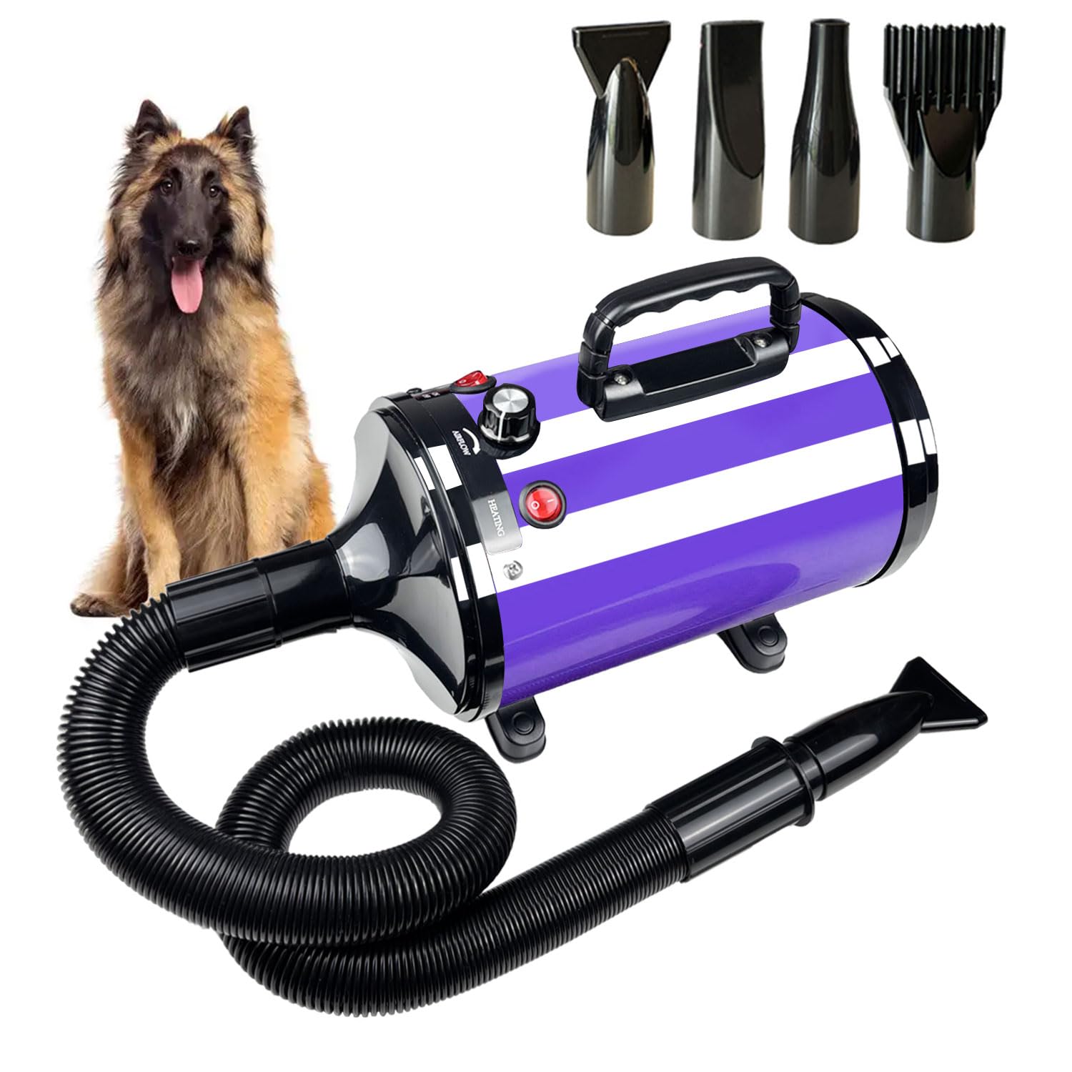 Invest in the best for your furry friend with our high-velocity blow dryer for dogs. Say goodbye to wet and messy fur, and hello to a beautifully groomed pet.This powerful dog dryer is designed to effectively and efficiently dry your pet's hair after a bath or grooming session.With its high velocity airflow, it quickly dries even the thickest coats, saving you time and effort.Equipped with a deshedding blower, this dog hair dryer helps to reduce shedding, keeping your home cleaner and your pup more comfortable.The force of the airflow helps to remove loose hair and debris, leaving your dog's coat smooth and sleek.Our dog dryer is specifically designed for pet grooming, ensuring the safety and comfort of your beloved pet.The compact and ergonomic design of our dog blower grooming dryer makes it easy to handle and store.Its lightweight construction ensures that grooming sessions are a breeze, both for you and your pet.Whether you are a professional groomer or a pet owner, this versatile and reliable pet hair dryer is a game-changer.Choose our Dog Grooming Dryer and enjoy a hassle-free grooming routine, leaving your dog looking and feeling their best.Order now and give your pet the pampering they deserve!