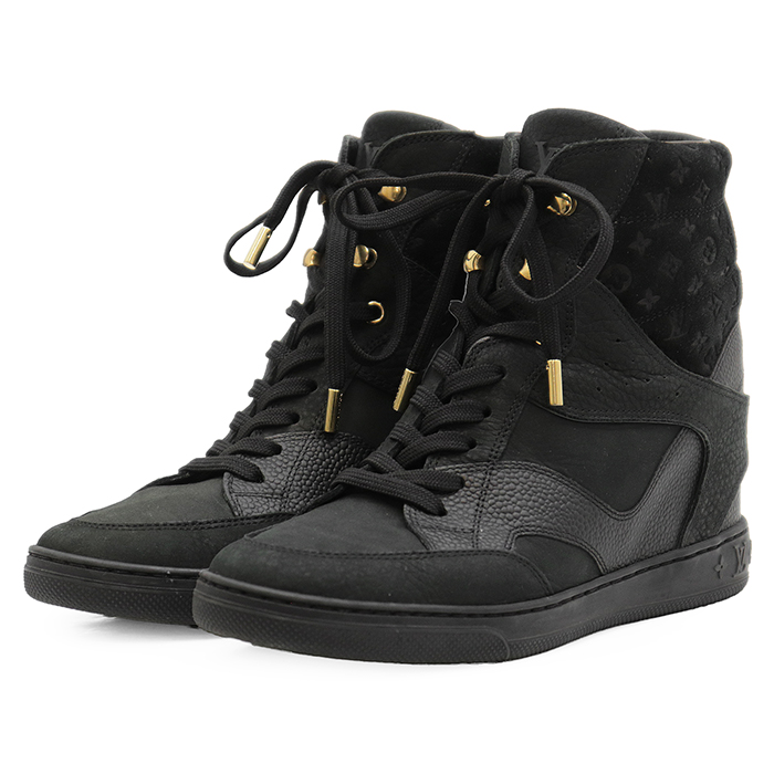 | Series | LOUIS VUITTON High-Top Sneakers, Size 36.5, Women's, LV Logo, Monogram, Leather x Suede, Black, Made in Italy |