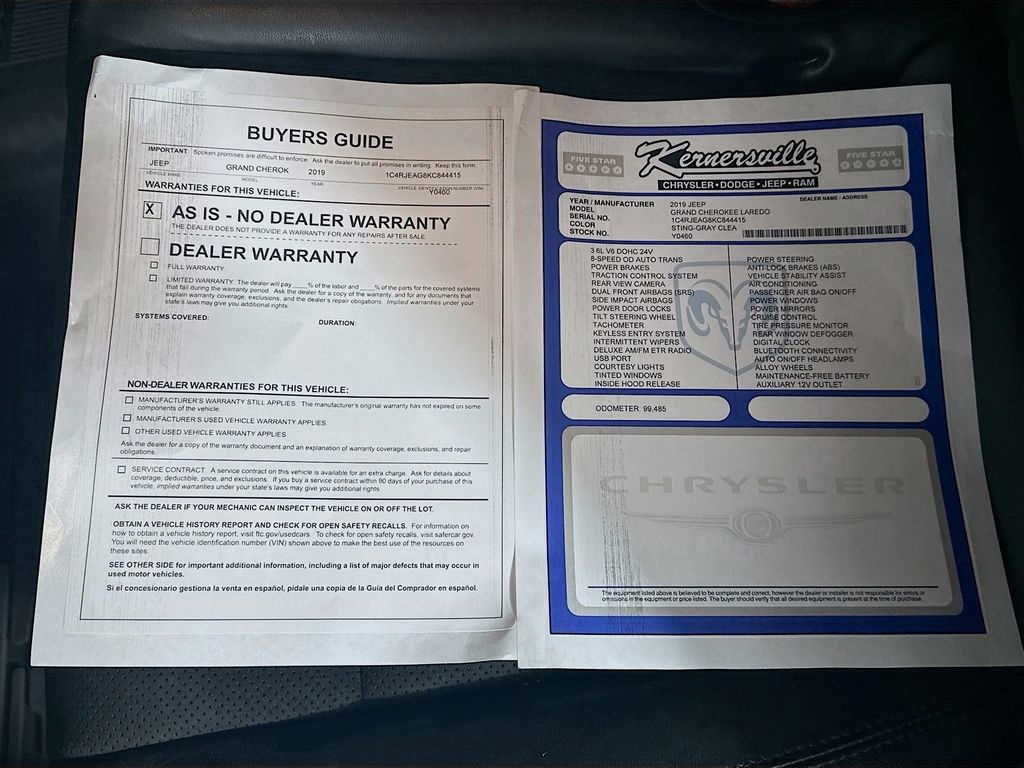 When calling or emailing, please reference stock number Y0460.MORE ABOUT THIS 2019 Jeep Grand Cherokee Altitude SUV Altitude 4X2! 3.6L V6 24 Valve VVT Engine! 8 Speed Automatic Transmission! Customer Preferred Package 2BZ! Uconnect 4C NAV With 8.4 Inch Touchscreen Display! Apple CarPlay! Google Android Auto! 20 Inch Gloss Black Aluminum Wheels! Power Sunroof! 9 Amplified Speakers With Subwoofer! Heated Front Seats! Heated Steering Wheel! Power Liftgate! Remote Start System! Blind Spot And Cross Path Detection! ParkSense Rear Park Assist With Stop! This 2019 Jeep Grand Cherokee Altitude 4X2 in Sting Gray Clear Coat delivers bold styling, smooth V6 performance, and modern SUV technology in a refined two wheel drive package. Powered by the proven 3.6L V6 24 valve VVT engine paired with an 8 speed automatic transmission, this Grand Cherokee offers confident highway driving and everyday comfort. Equipped with the Customer Preferred Package 2BZ, it adds gloss black exterior accents, upgraded 20 inch wheels, Uconnect 4C NAV with an 8.4 inch display, SiriusXM capability, heated front seats, heated steering wheel, power liftgate, remote start, security alarm, and convenience upgrades throughout the cabin. Safety features include blind spot and cross path detection, ParkView rear back up camera, ParkSense rear park assist with stop, advanced multistage front airbags, electronic stability control, ready alert braking, hill start assist, and four wheel anti lock disc brakes for added confidence. Inside, enjoy black leather seats with suede insert, dual zone automatic temperature control, leather wrapped steering wheel and shift knob, 7 inch LCD instrument cluster, integrated voice command with Bluetooth, and flexible 60 40 split rear folding seating. With its aggressive Altitude appearance, premium interior touches, and trusted Jeep engineering, this Grand Cherokee is an excellent choice for drivers seeking style, comfort, and everyday SUV capability. Kernersville Chrysler Dodge Jeep Ram is the LARGEST truck dealer in the Southeast for two years in a row. We have the largest selection of trucks and over 1900 vehicles in stock at all times. We aim to truly be the lowest priced in the market and we do so by price checking our inventory every day and dropping our price to remain in the TOP 3 LOWEST PRICED. Shop at the most convenient dealer in the USA, available online! Shop at Kernersville Chrysler Dodge Jeep Ram! Hablamos Espanol - llame hoy.