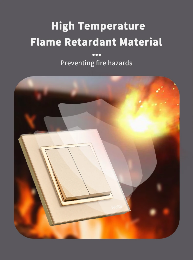 Golden EU Standard Flame Retardant Button Light Switch 16A AC Crystal Tempered Glass Panel 1 Gang 1 Way On/Off 250V Switch Panel