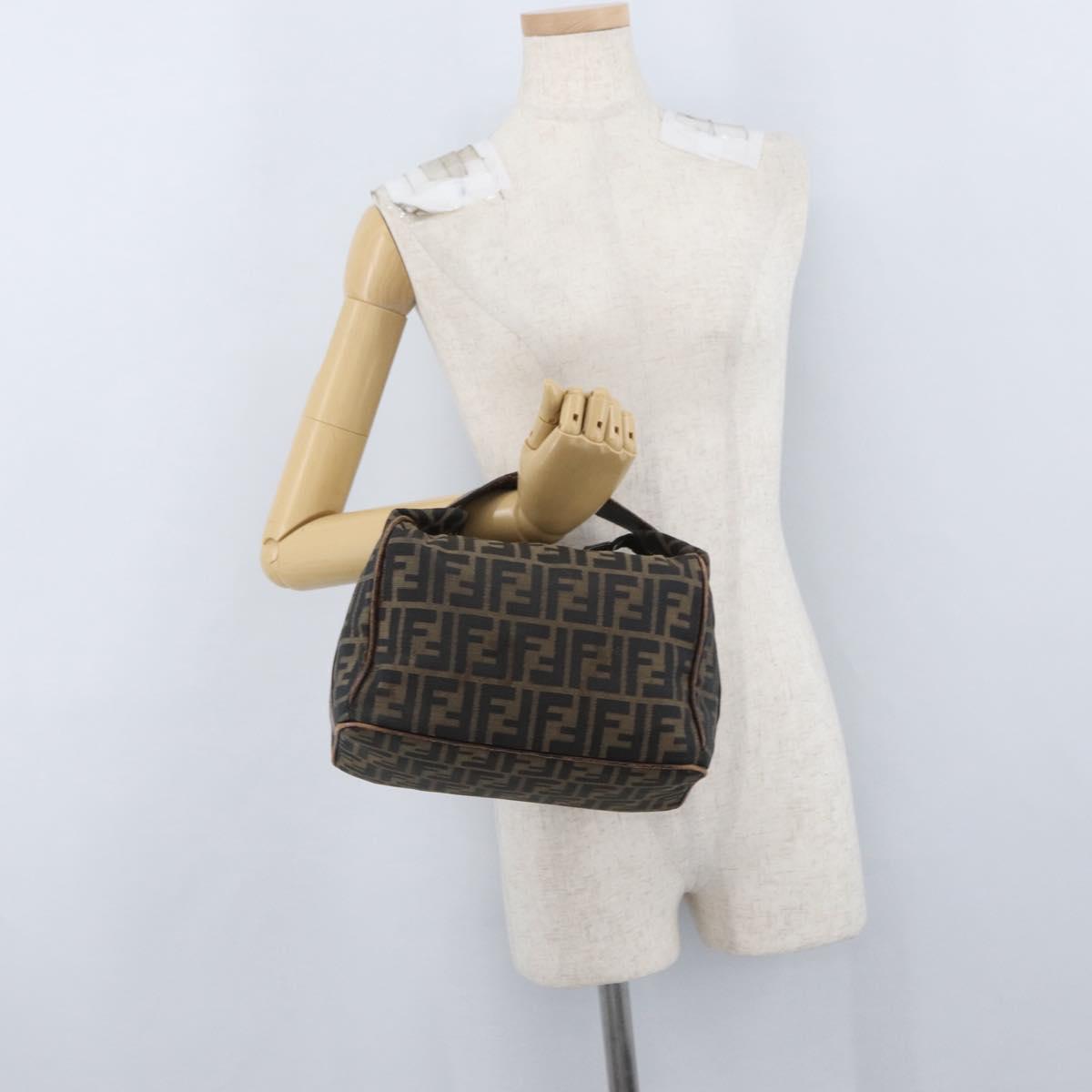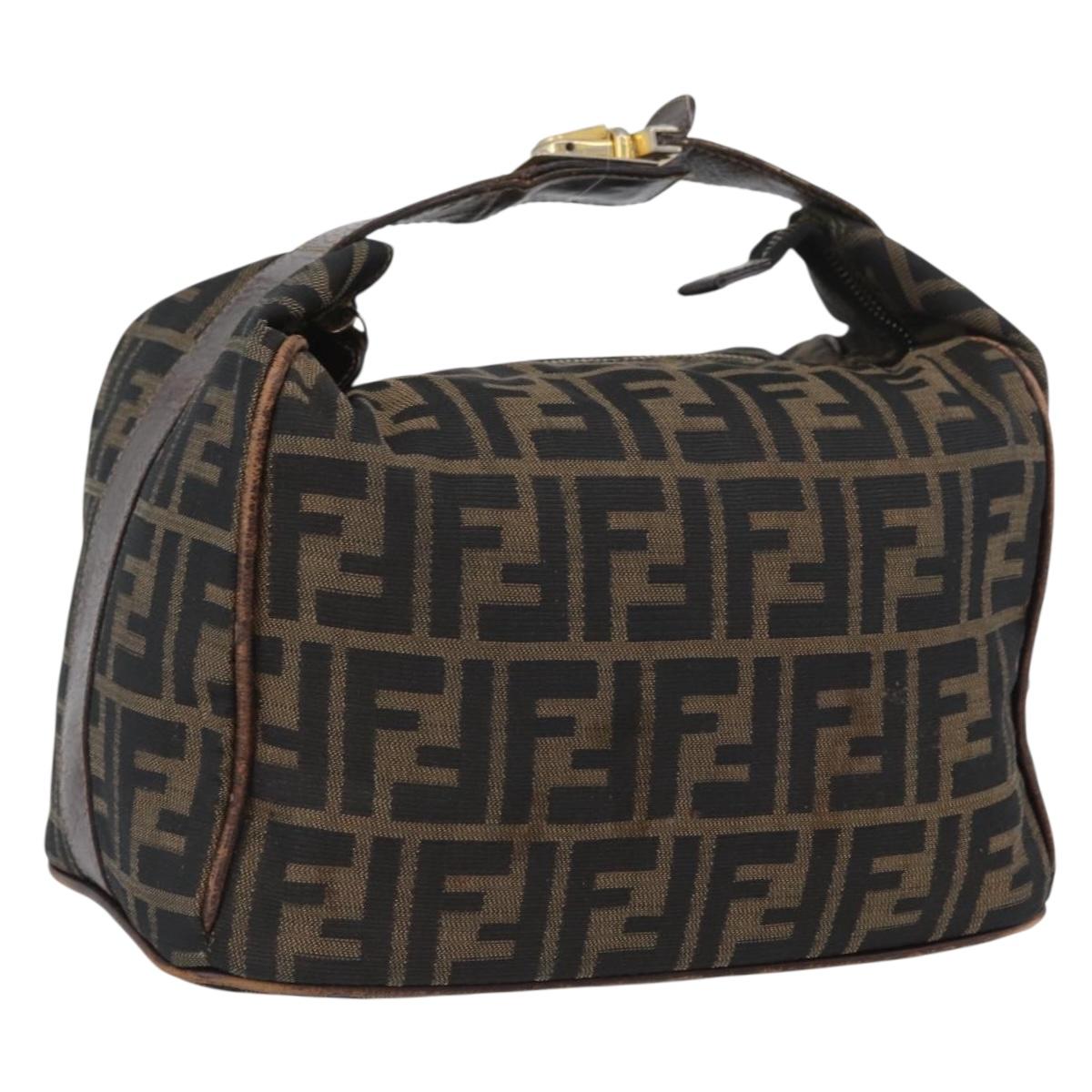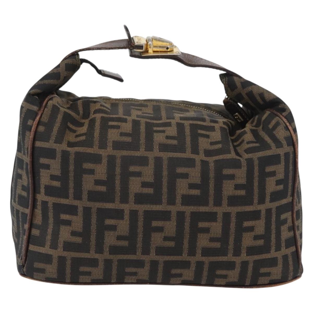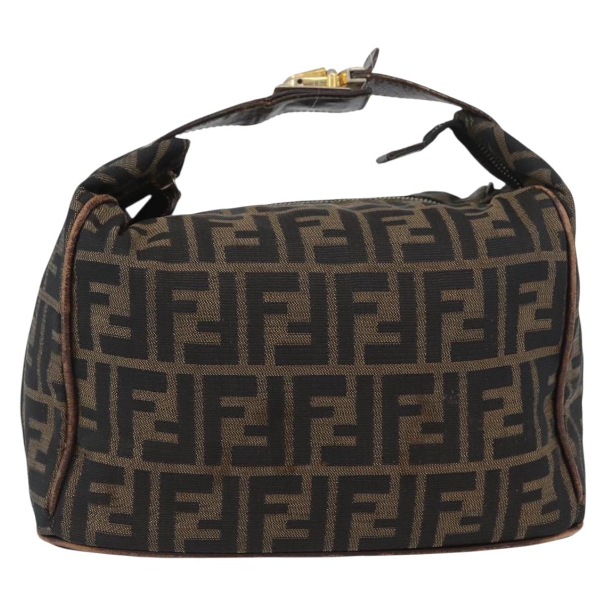 FENDI Zucca Canvas Vanity Hand Bag Black Brown Auth ep13903
