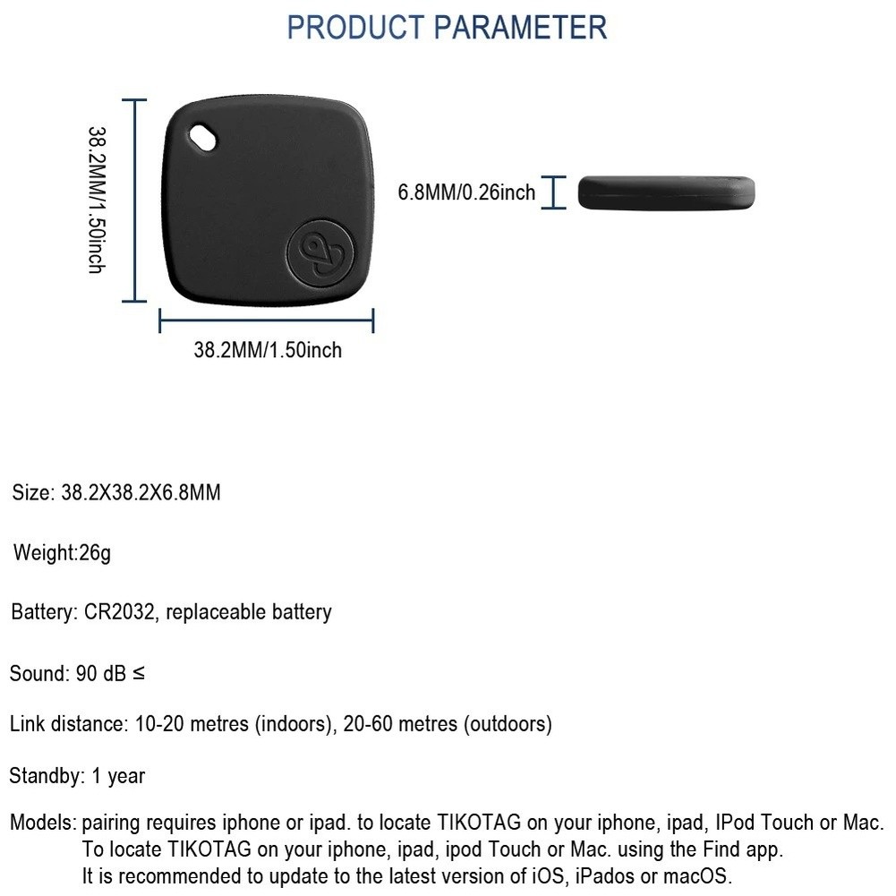 *Wireless Tracking: Compatible with Compatible Find My network for real-time location tracking of pets and valuables.