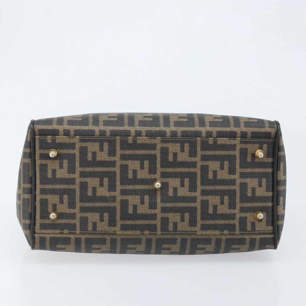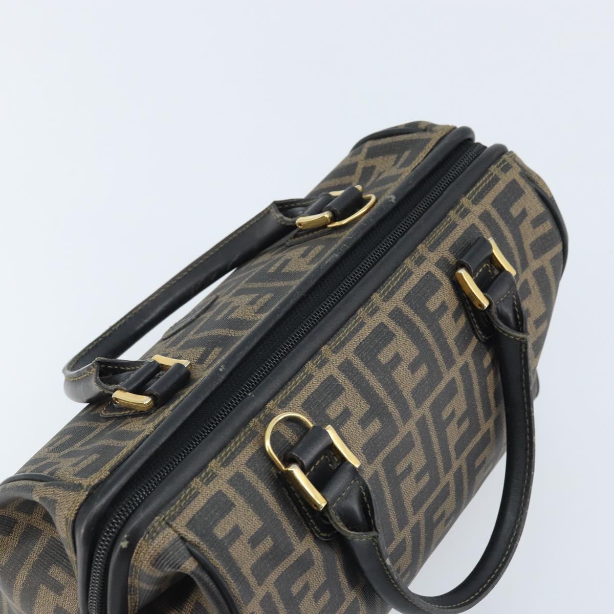 FENDI Zucca Canvas Boston Bag PVC Brown Black Auth AMZ106A