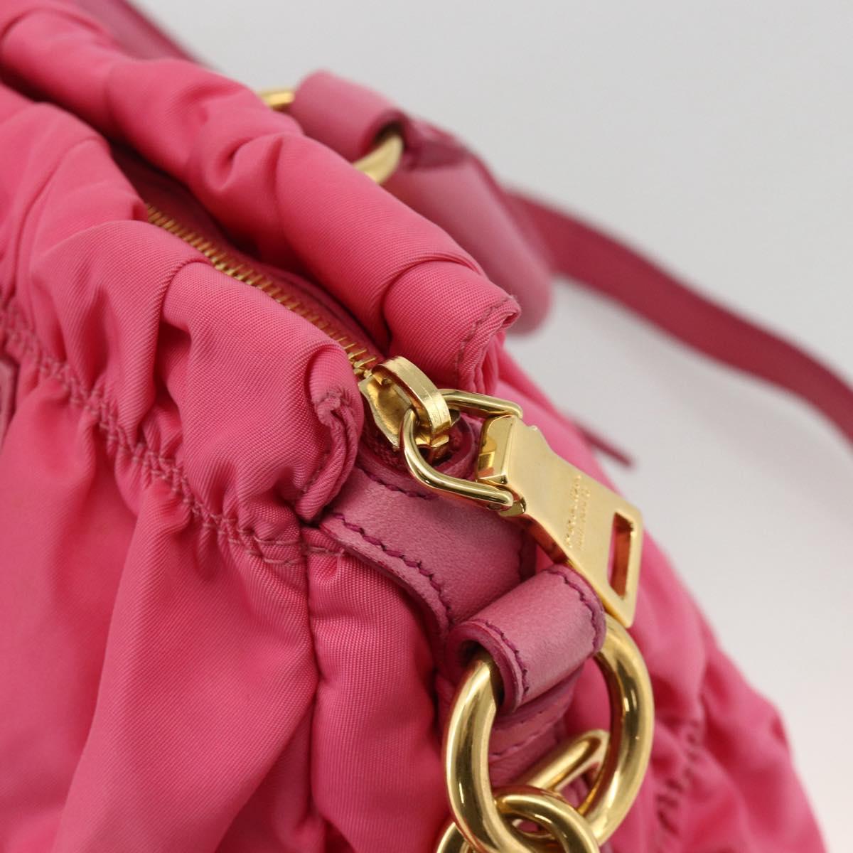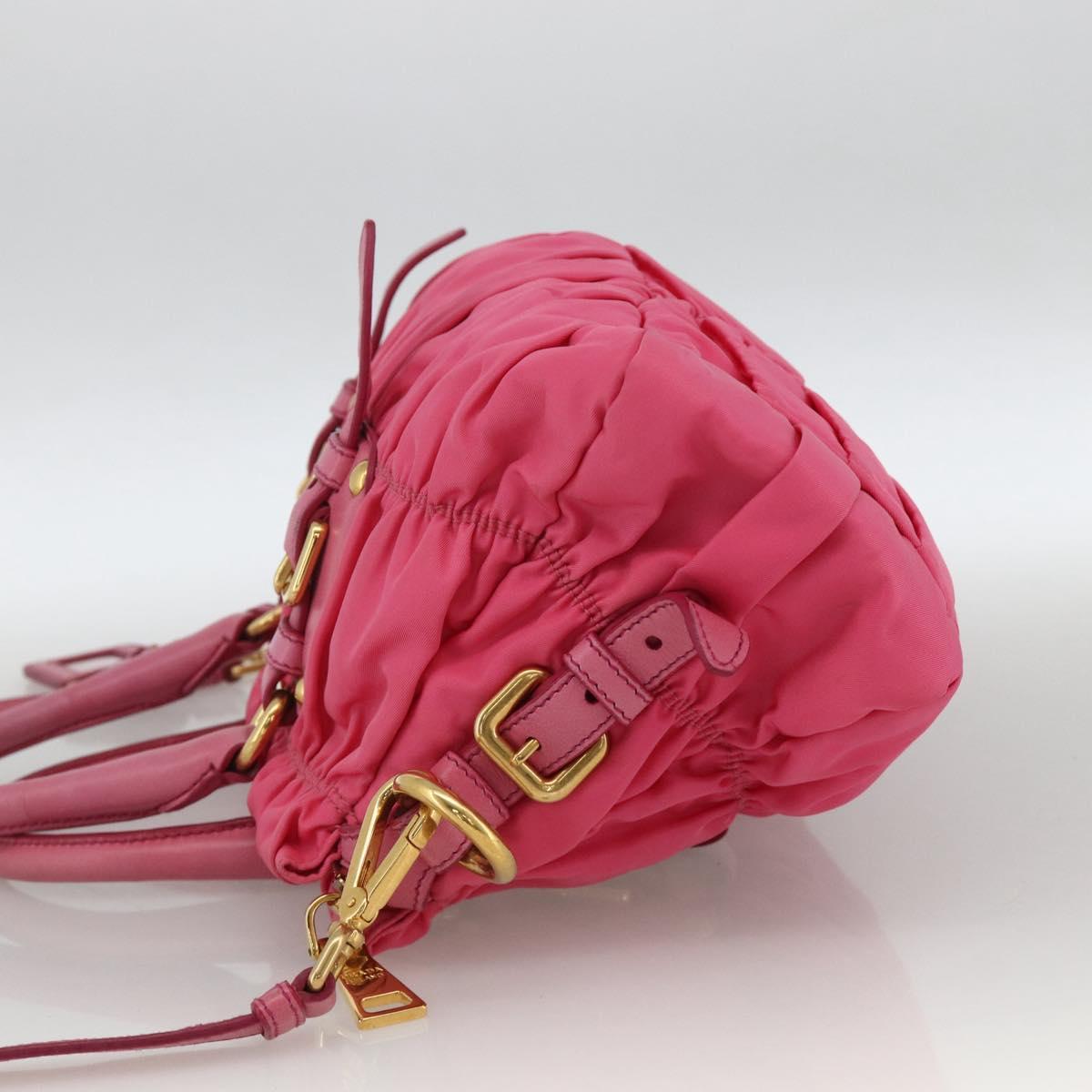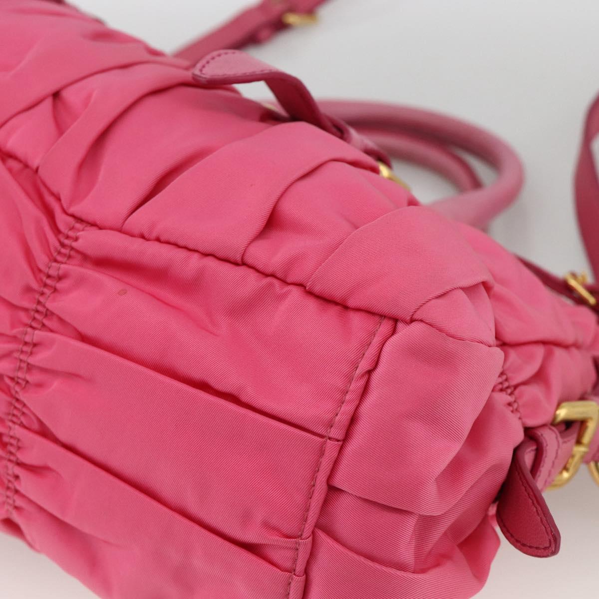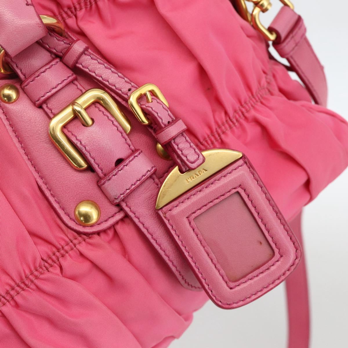 PRADA Gathered Hand Bag Nylon 2way Pink Gold Auth AMZ059A