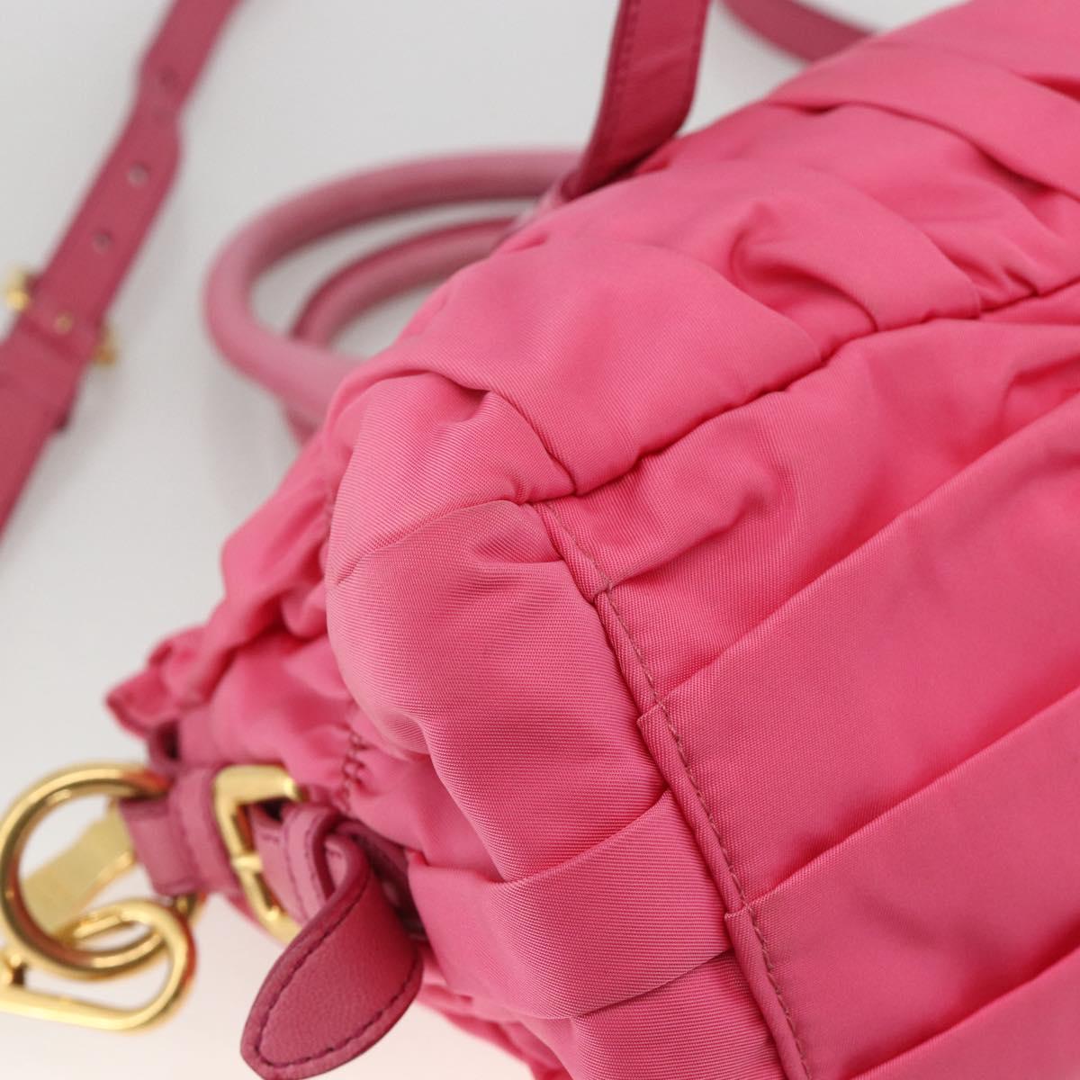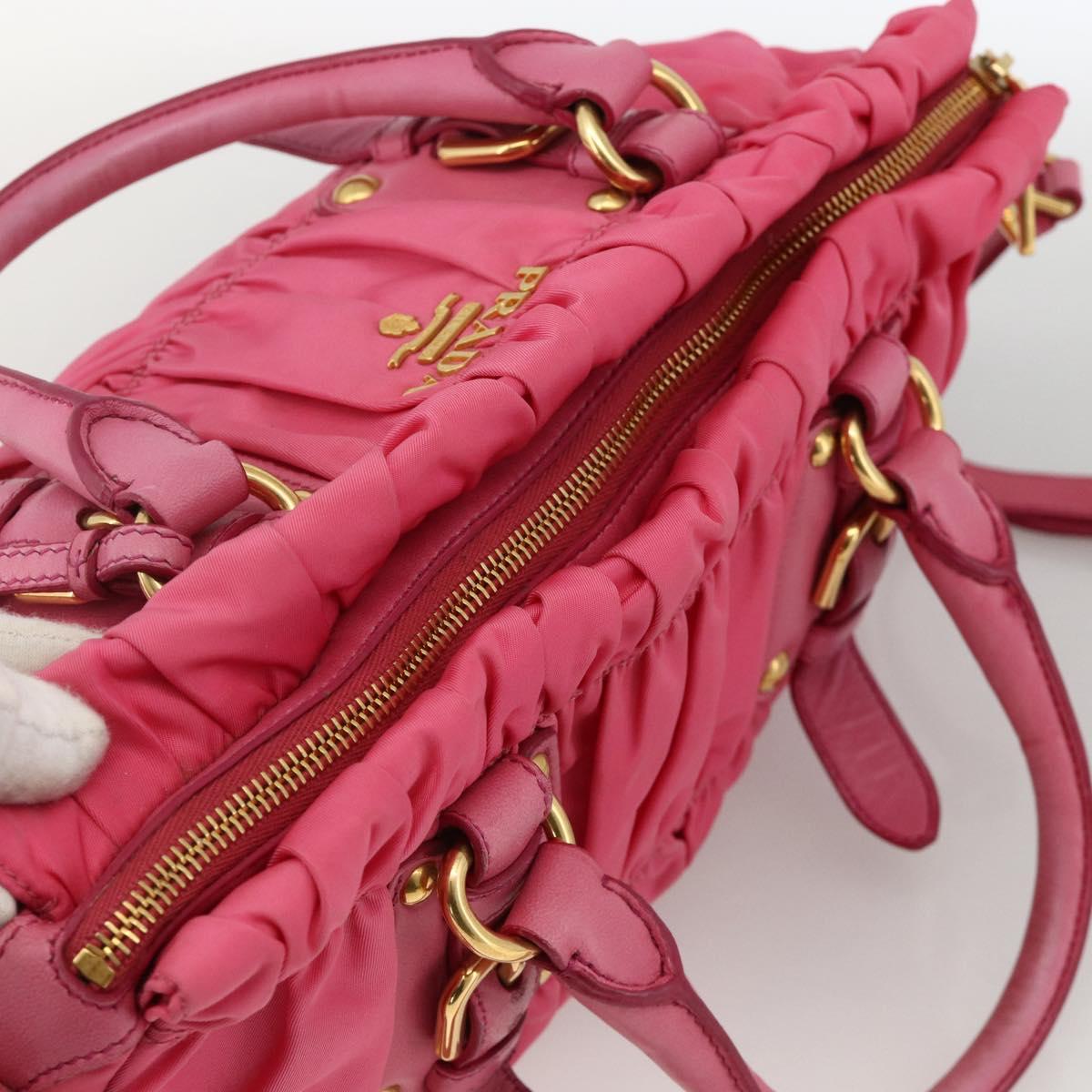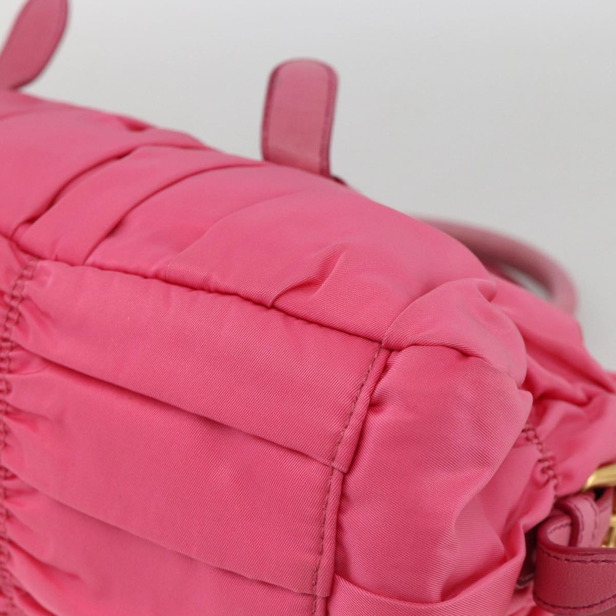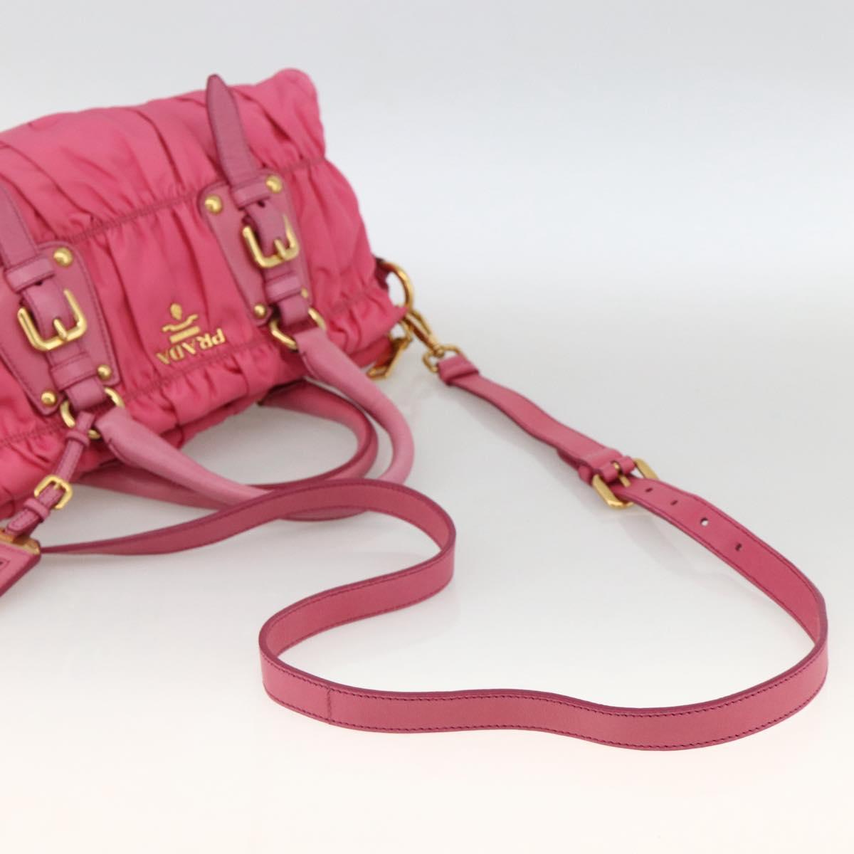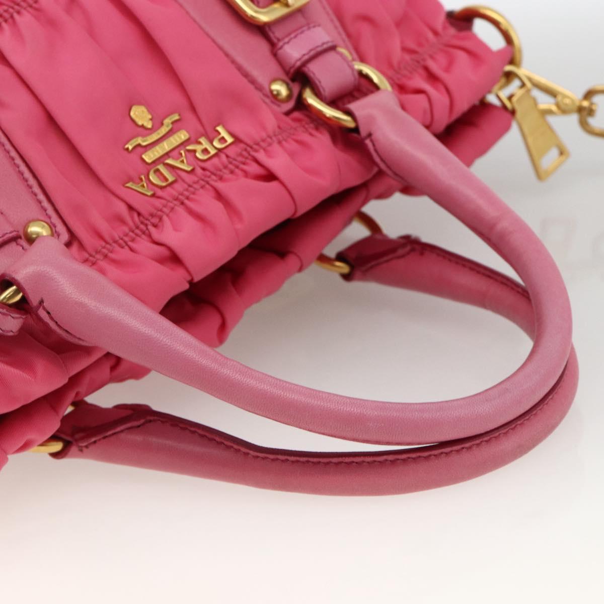 PRADA Gathered Hand Bag Nylon 2way Pink Gold Auth AMZ059A