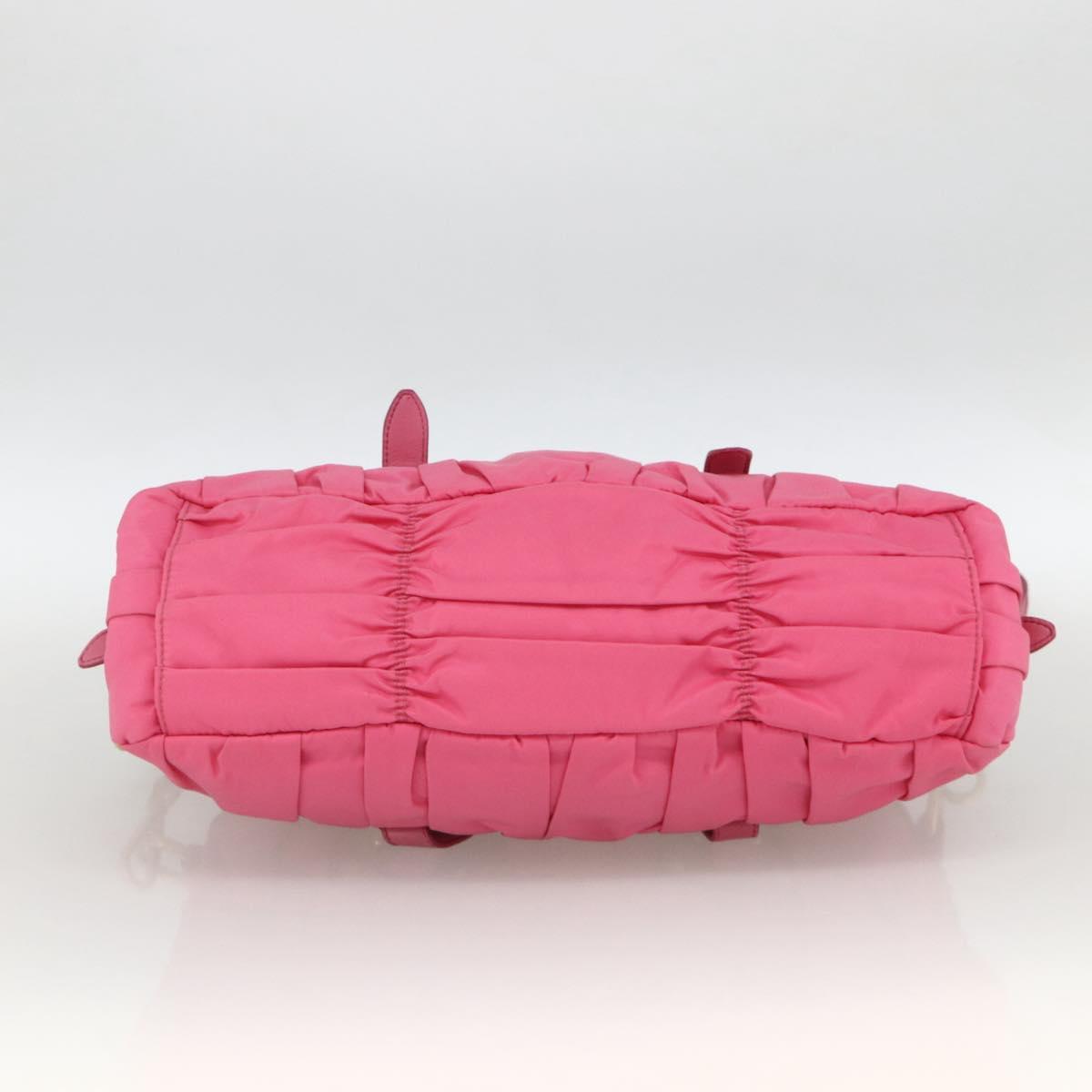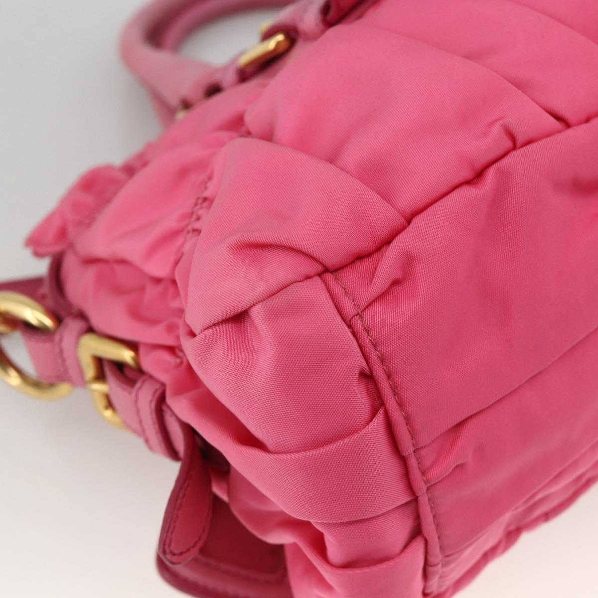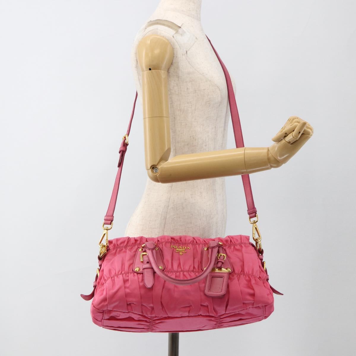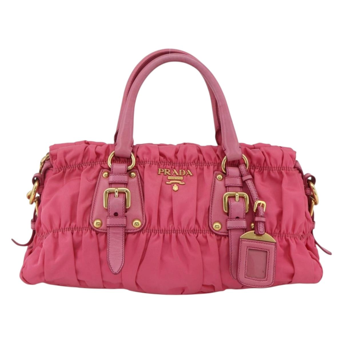 PRADA Gathered Hand Bag Nylon 2way Pink Gold Auth AMZ059A
