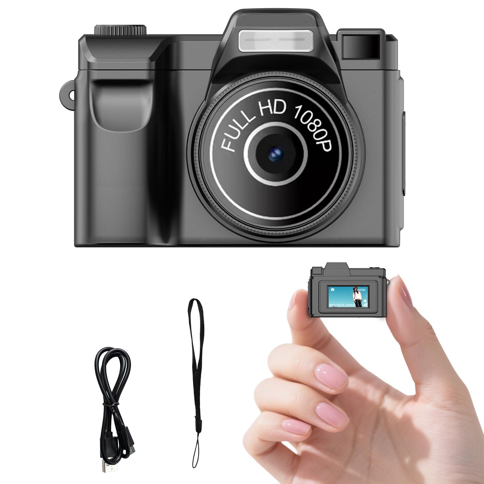 Package List :The package includes: 1 * mini digital camera, 1 * Type-C data cable, 1 * lanyard, and 1 * user manual.