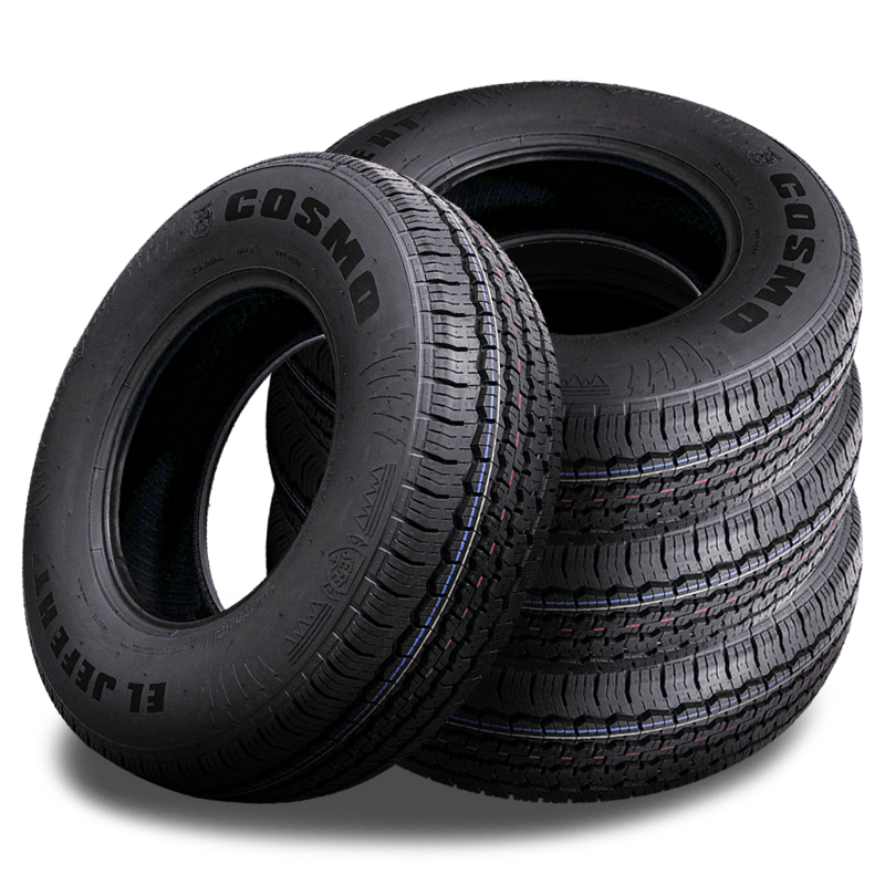 Our El Jefe HT 2 tires feature our innovative tread void design for better performance in dry and wet conditions, all year round. El Jefe’s design keeps the road noise down, while the deep tread depth and reinforced shoulder ribs ensure that drivers stay on the road longer. EL Jefe HT 2 has a quiet drive technology and 4 main grooves that enables extra drainage. It’s advance rubber compound and extra plies helps to resist cuts and punctures. It has M+S (Mud+Snow) symbol, which means it can perform on mud and light snow surface. Cosmo offers a 55,000-mile treadwear warranty with this model.