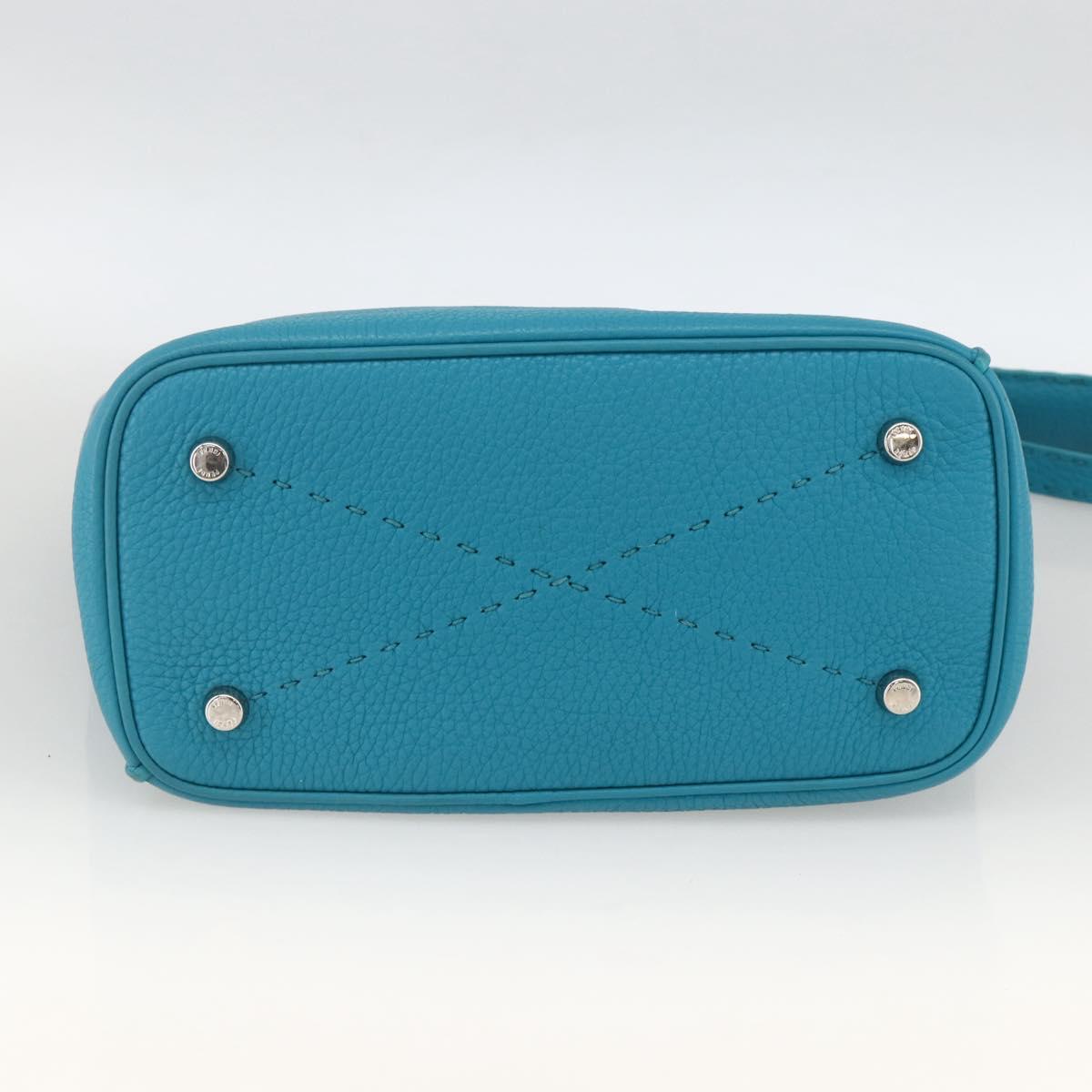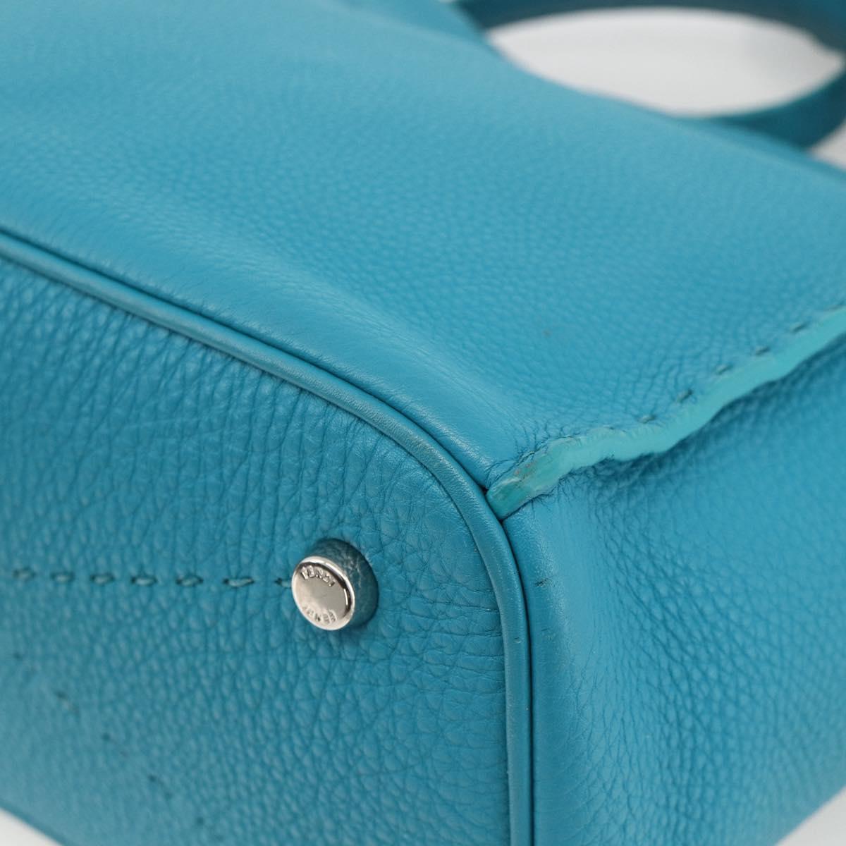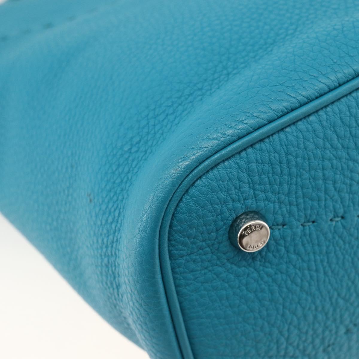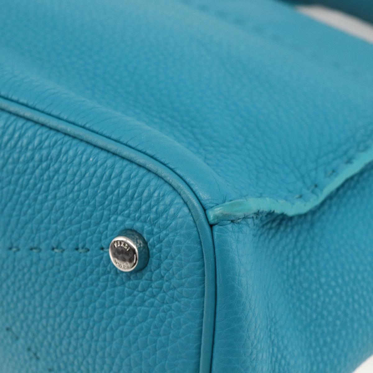 FENDI Celeria Shoulder Bag Leather 2way Blue Silver Auth ep13870A