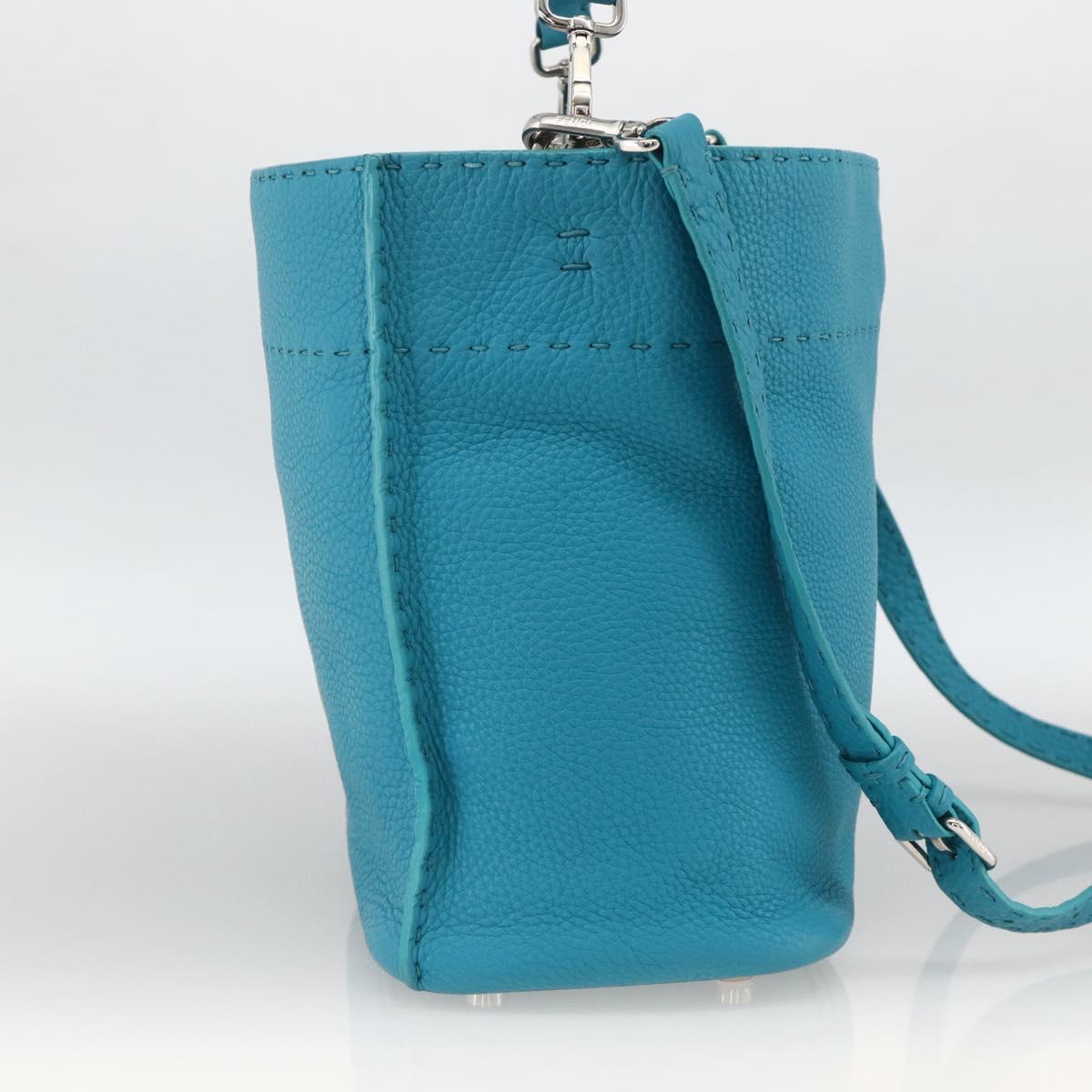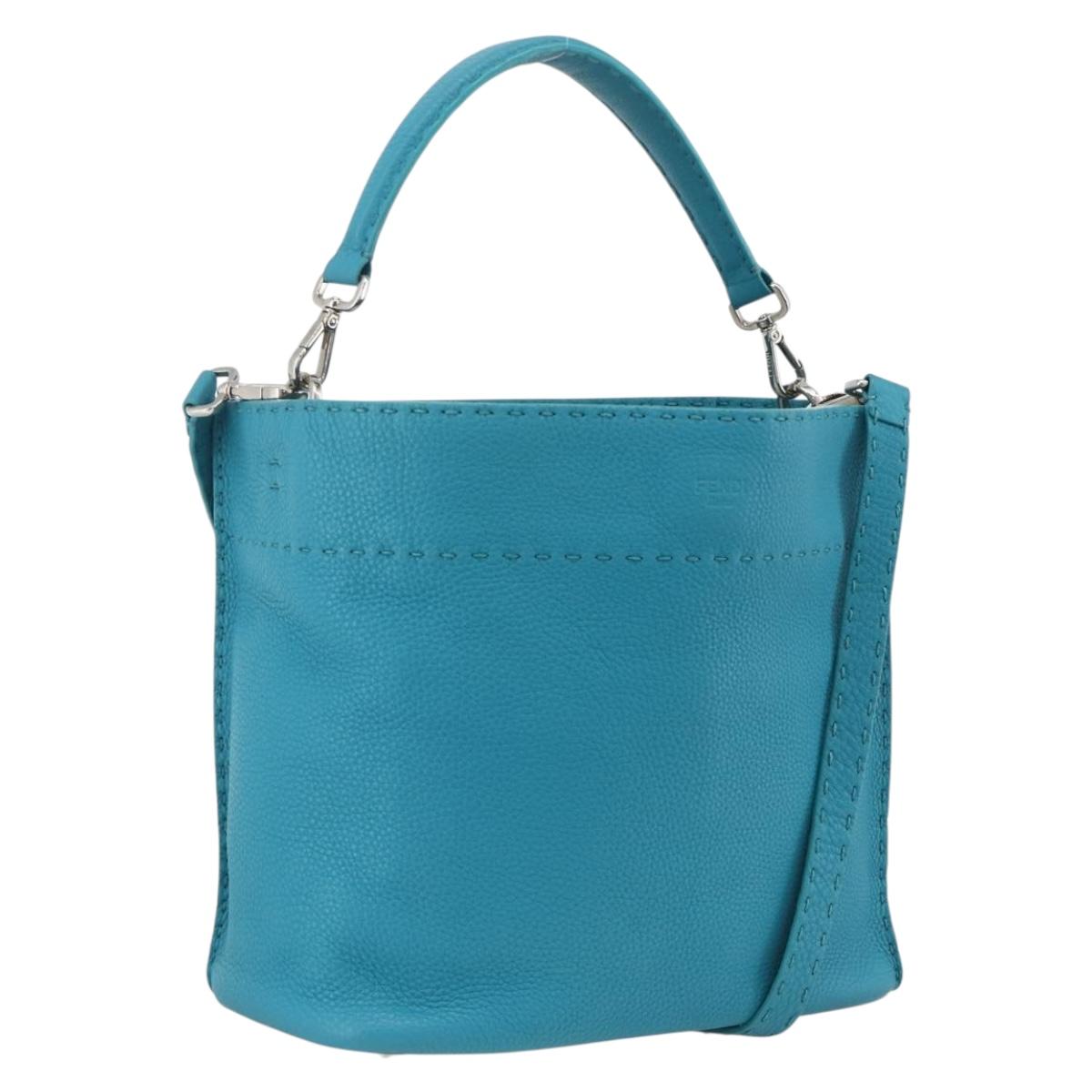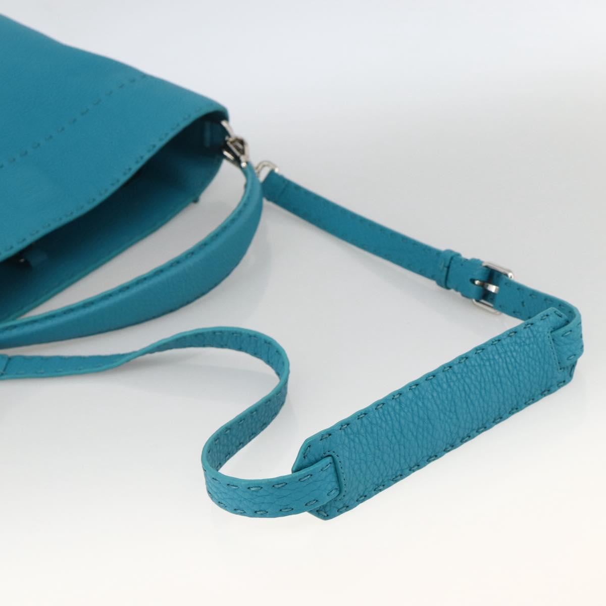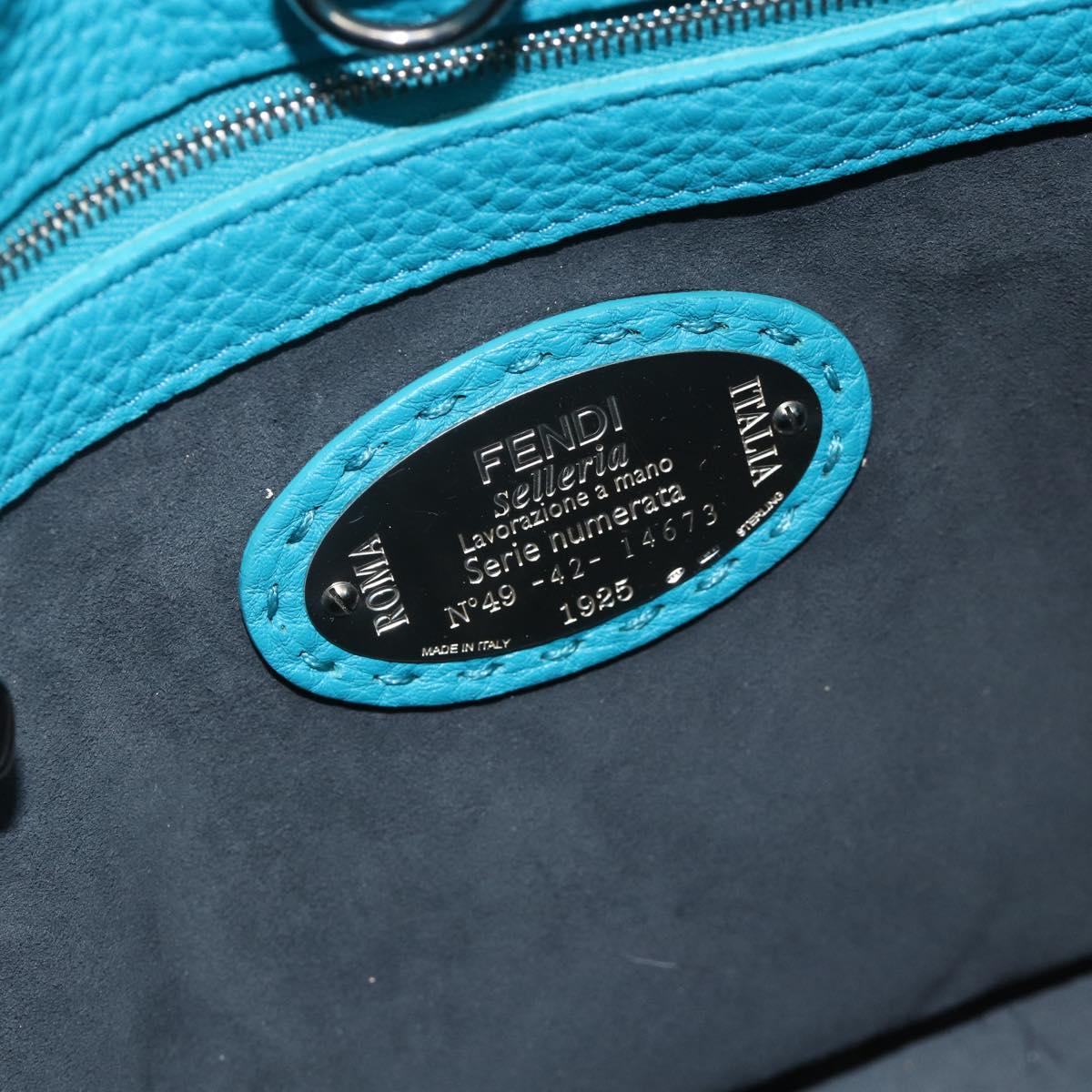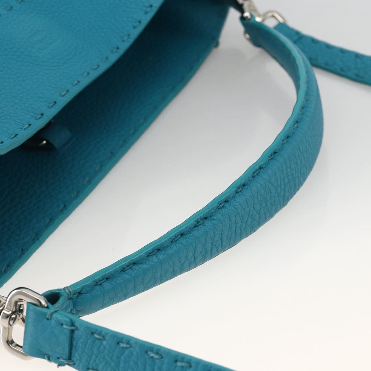 FENDI Celeria Shoulder Bag Leather 2way Blue Silver Auth ep13870A