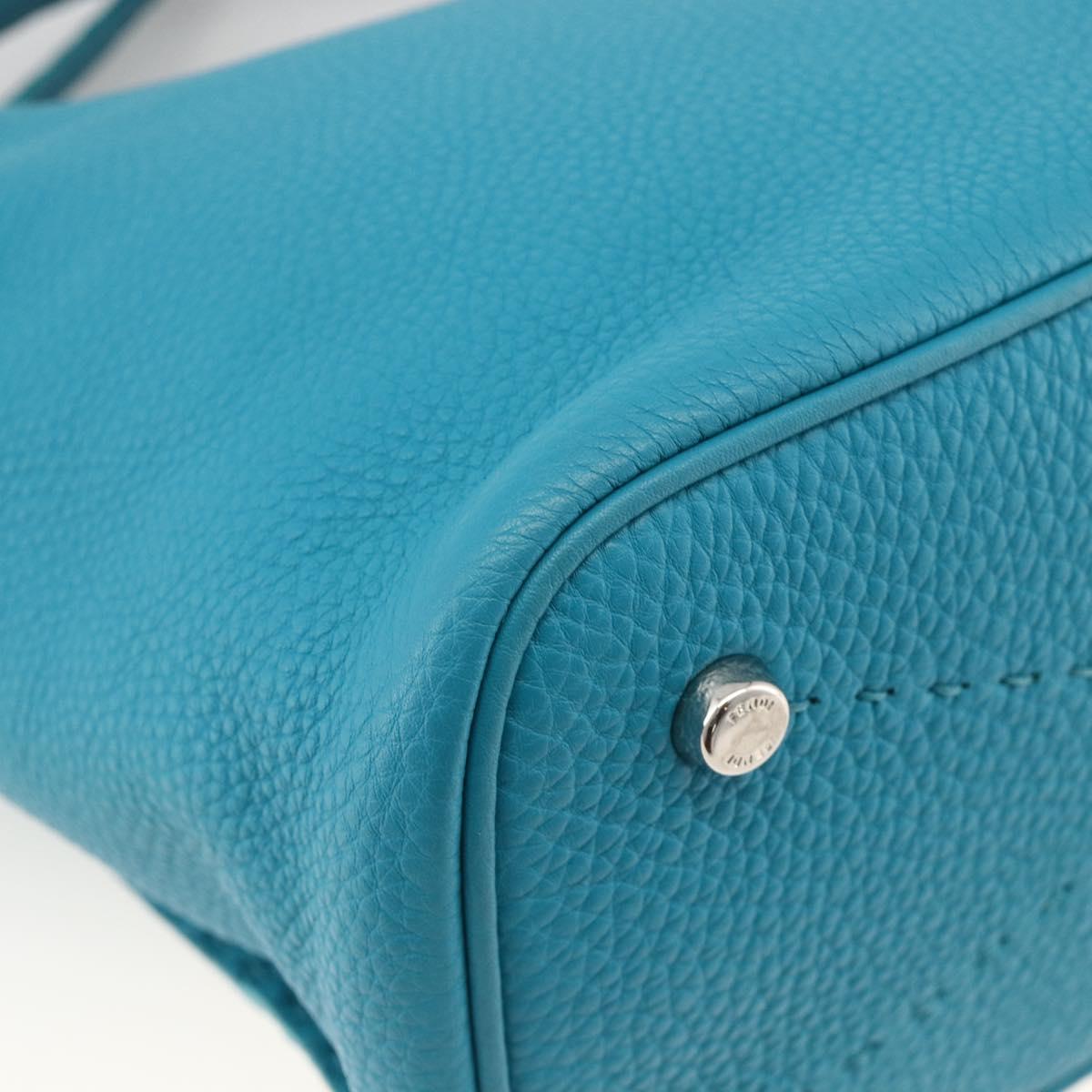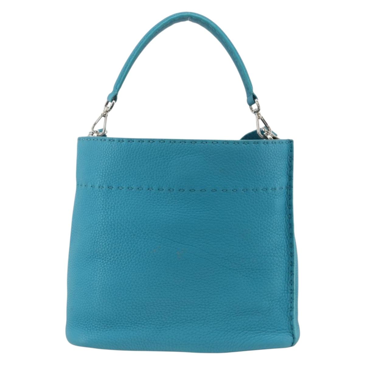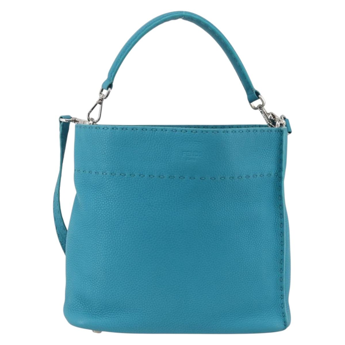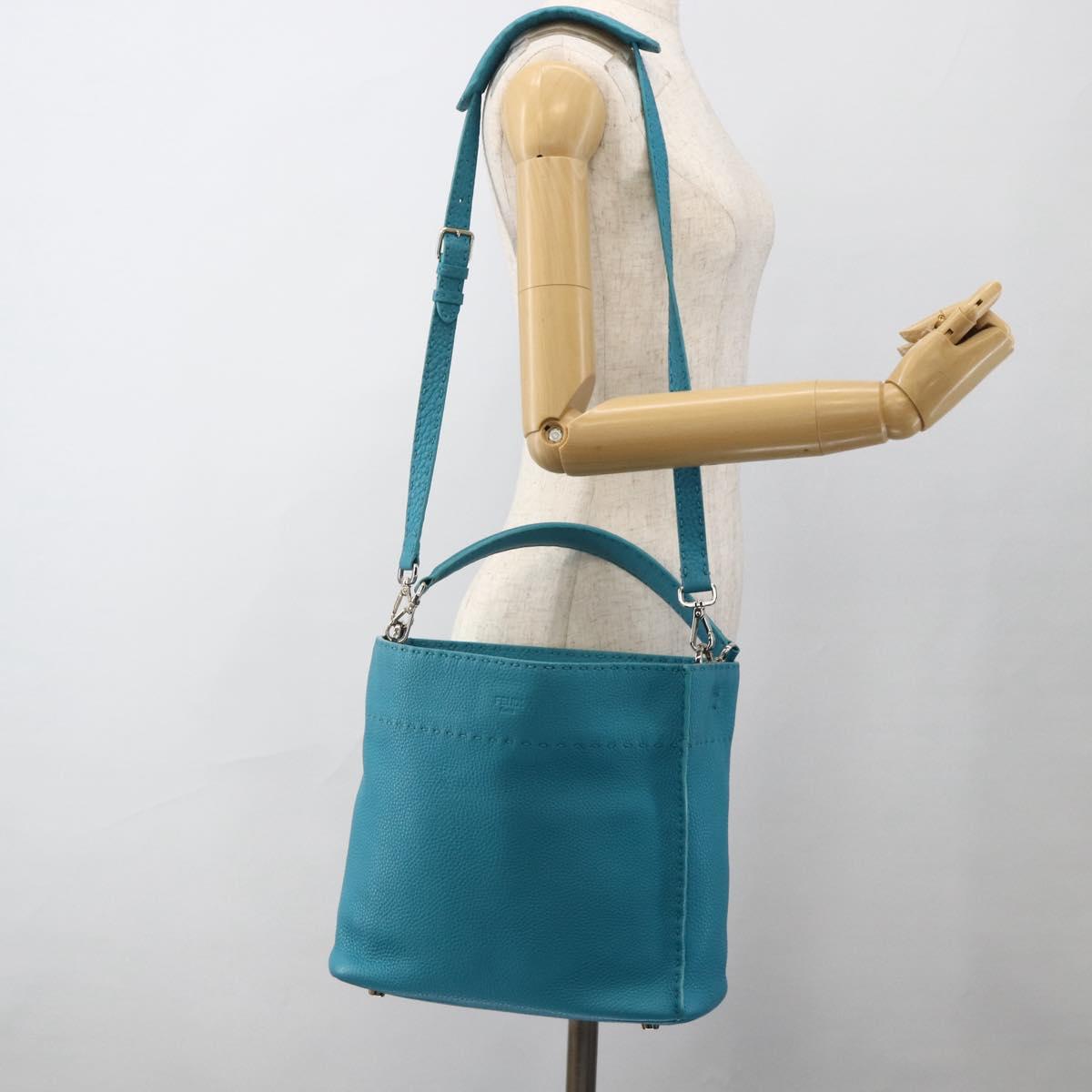 FENDI Celeria Shoulder Bag Leather 2way Blue Silver Auth ep13870A
